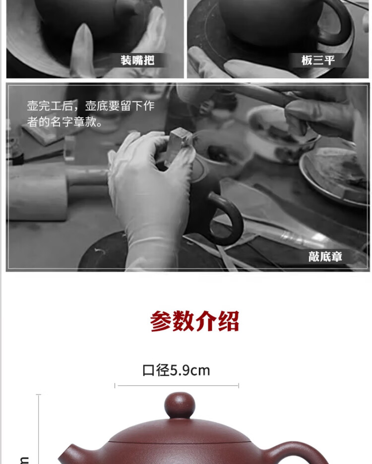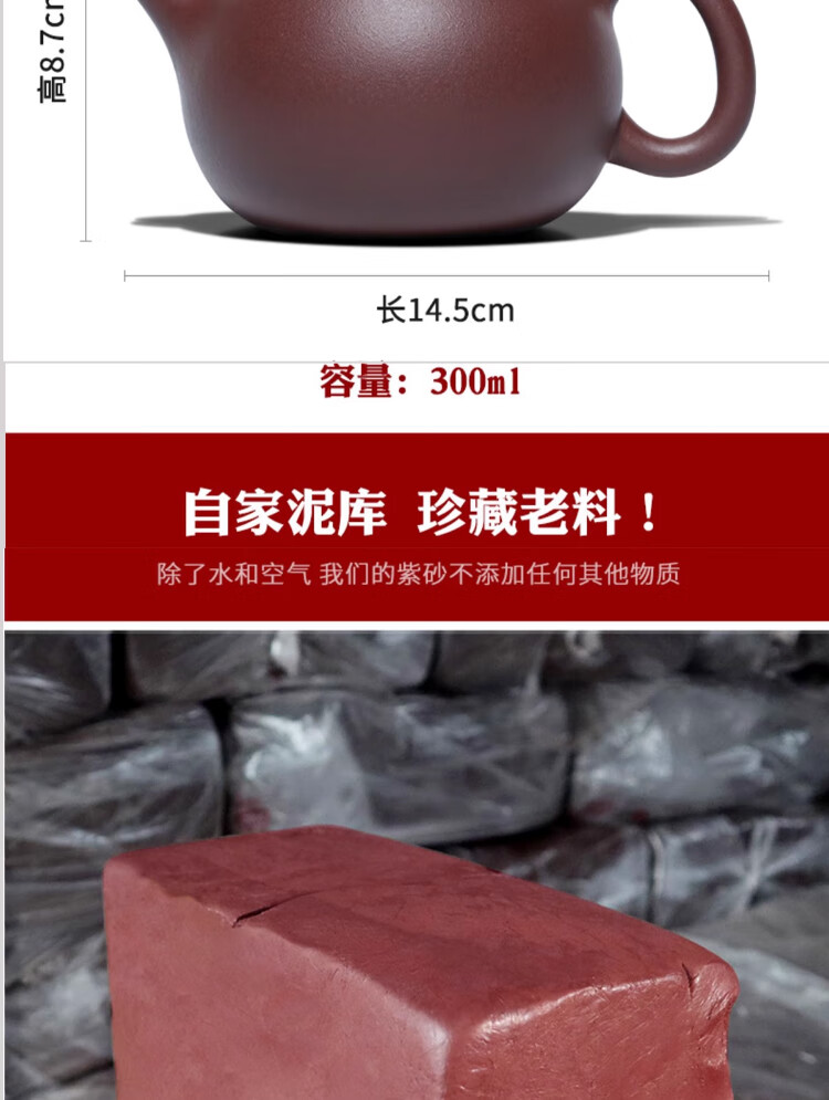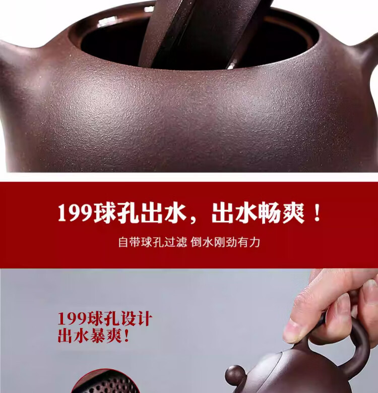 Yixing Famous Genuine Purple Clay Pot Purely Handmade Teapot Kung Fu Tea Set Household Large and Small Capacity Xishi Pot Collection Dahongpao 335ml Yixing Straight Hair + Rope Pad + Certificate + Shockproof Packaging