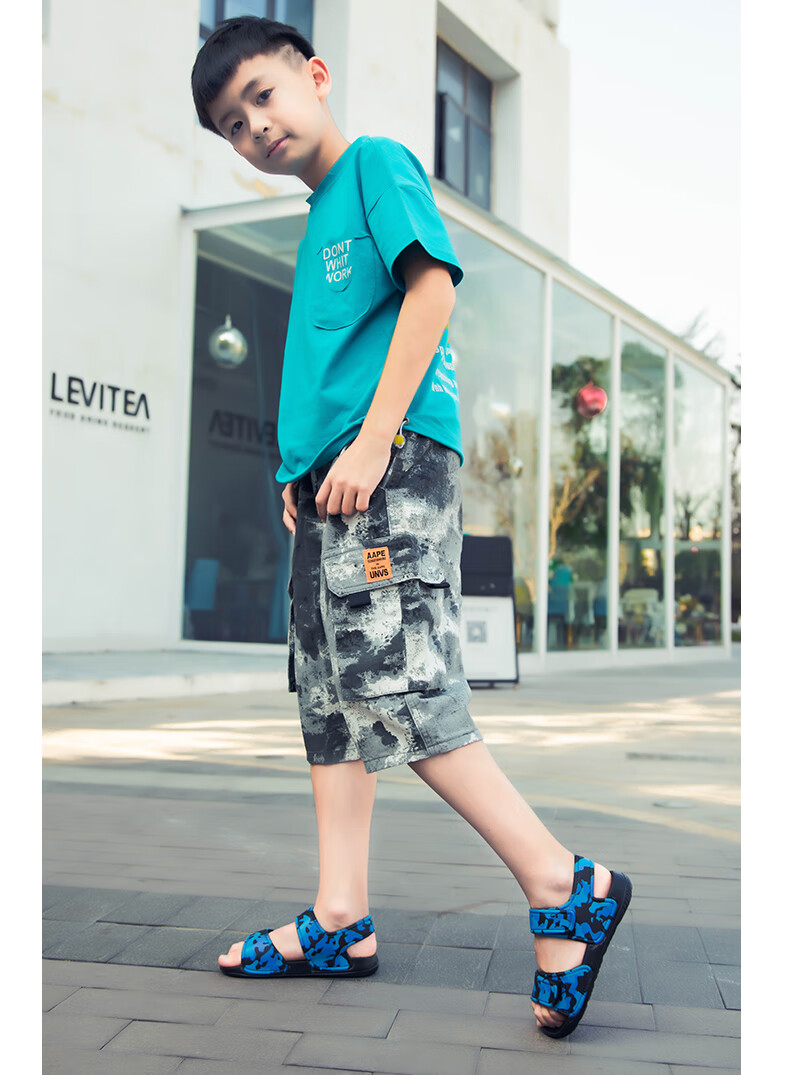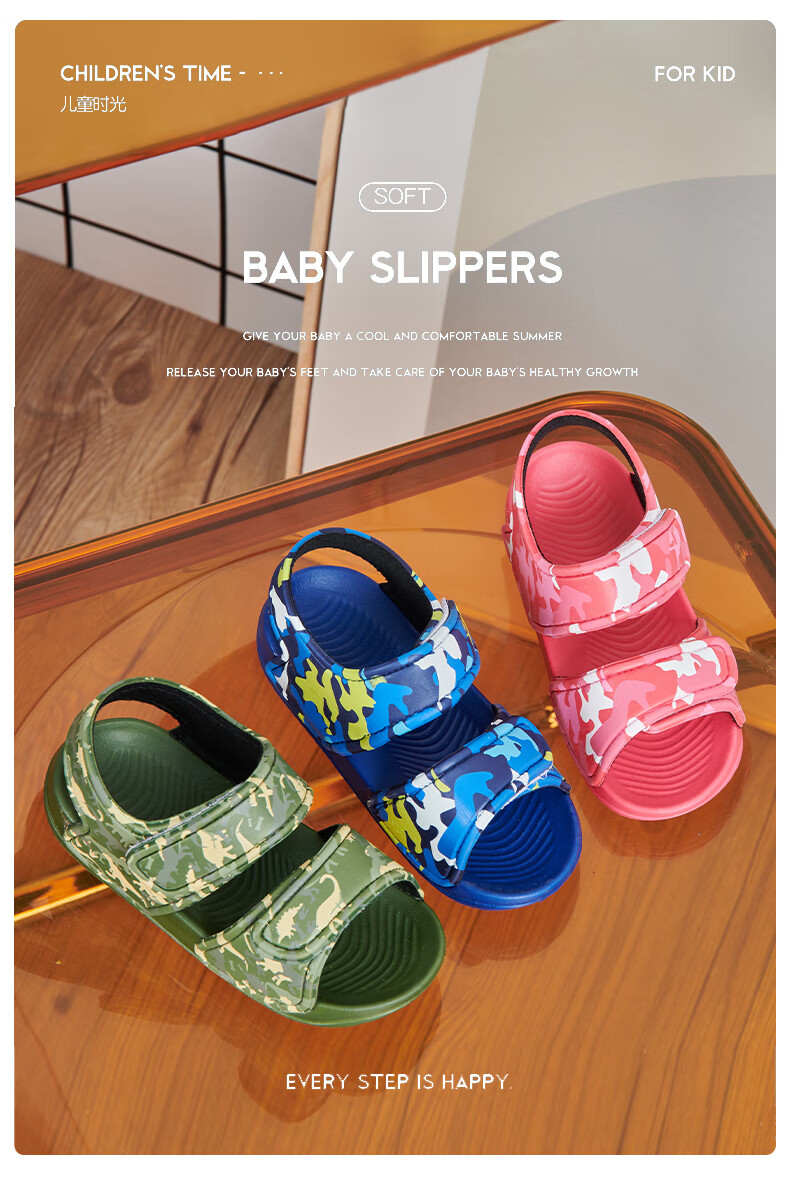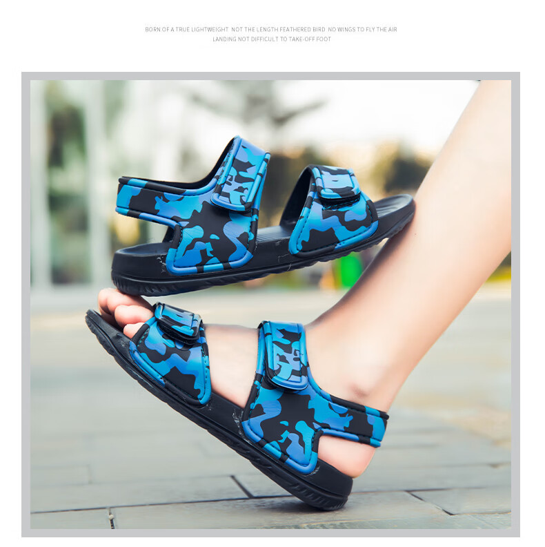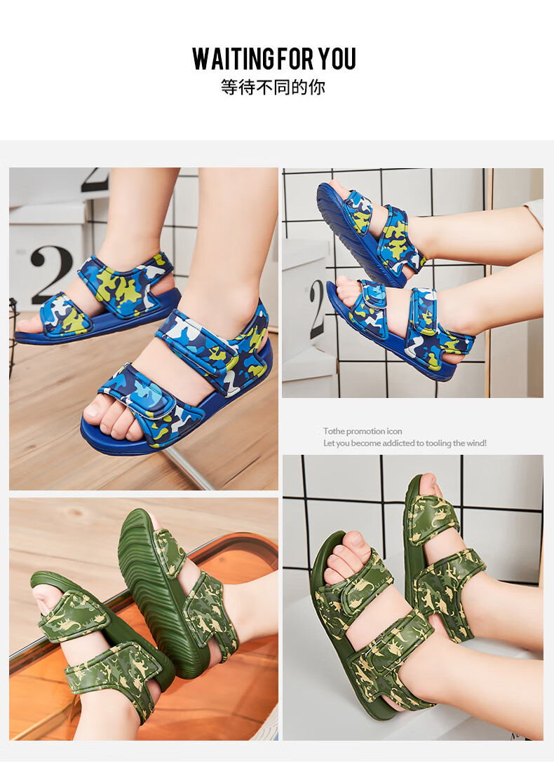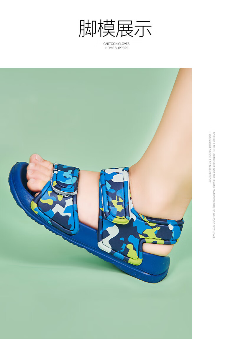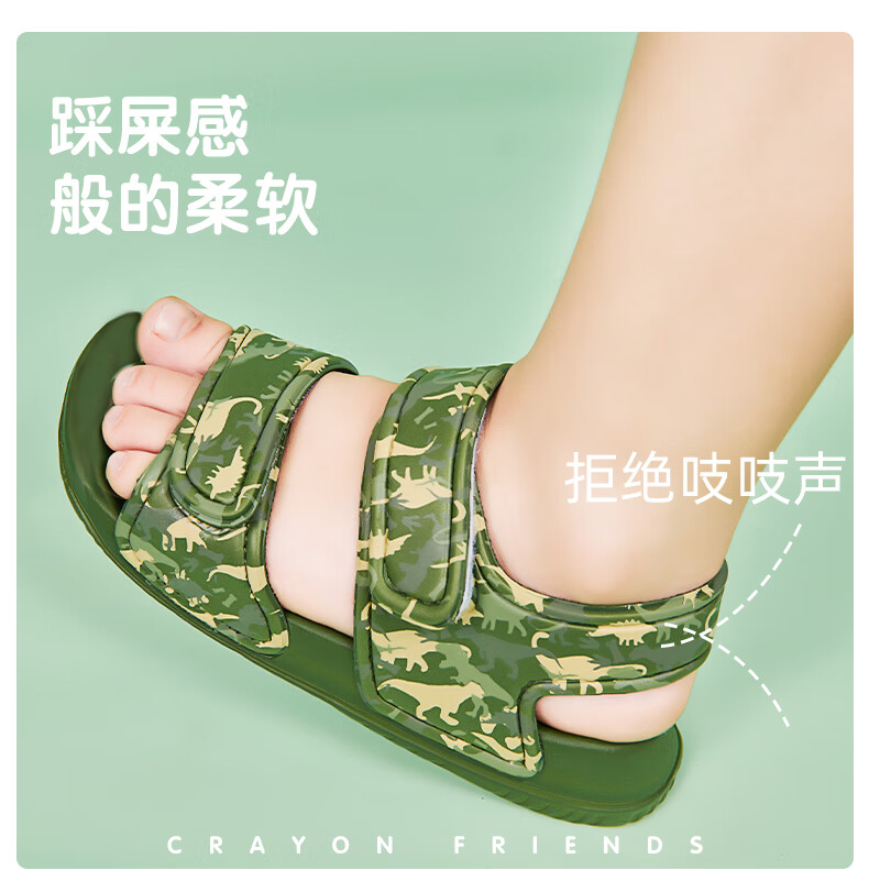 Children's sports sandals, children's beach shoes, lightweight and trendy cartoon children's EVA thick-soled outer wear, military green 29