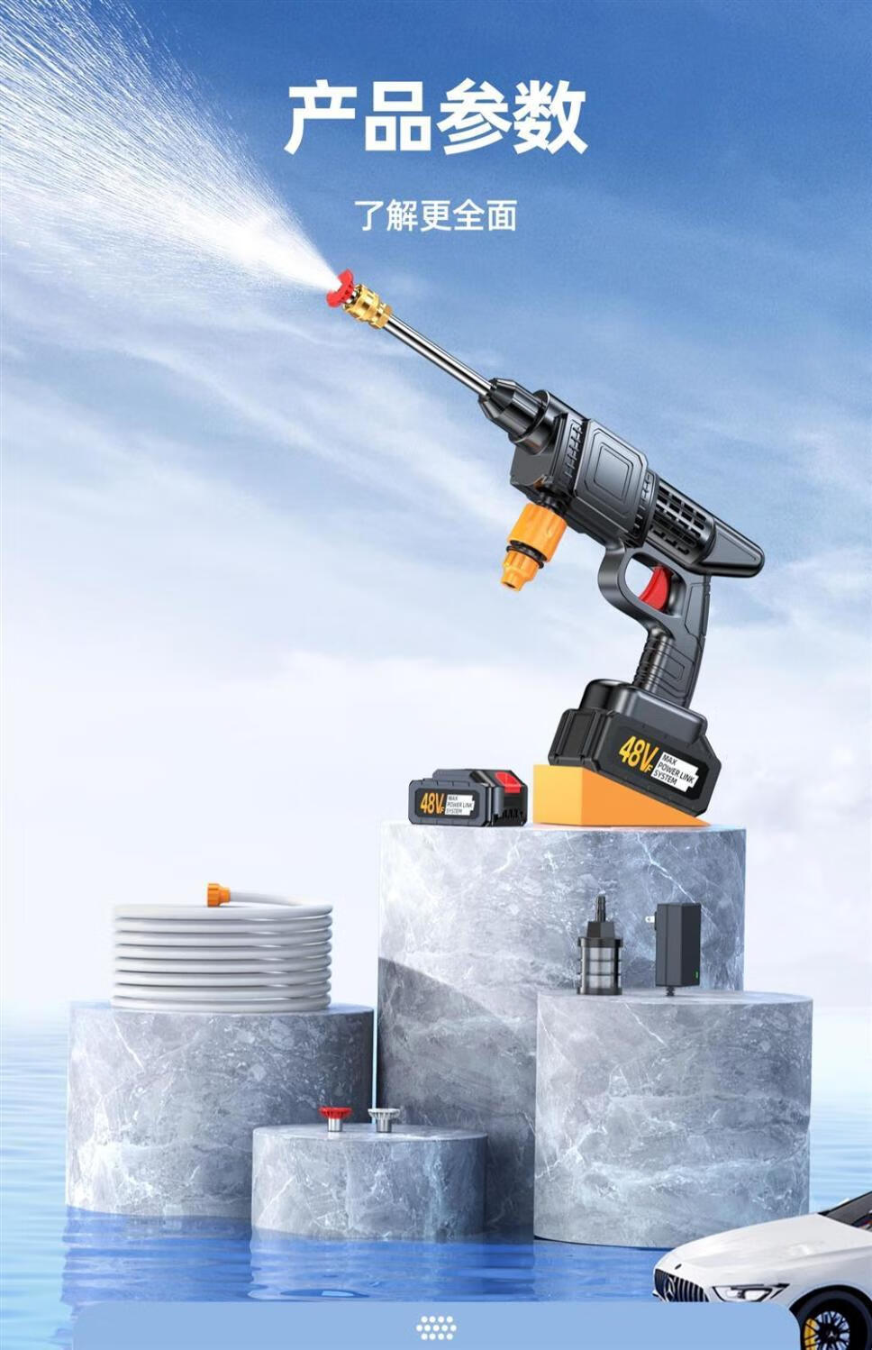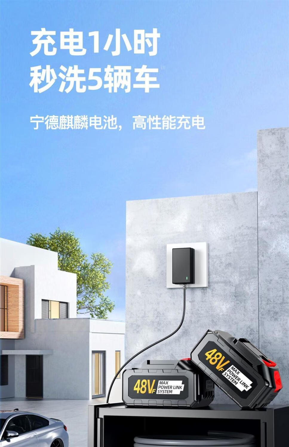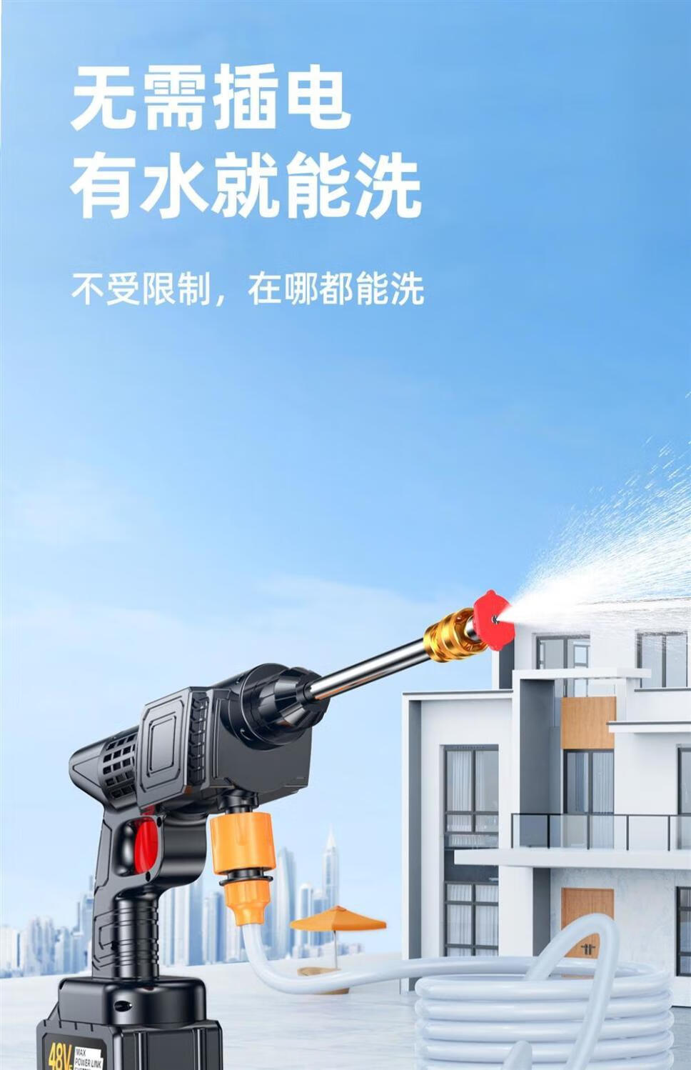 German Wireless Car Washing Machine High-pressure Water Gun Lithium Battery Powerful Portable Home Car Washing Artifact Sprayer 300W Deluxe Version High-Pressure Car Wash Dual Batteries + Five Meters Water Pipe