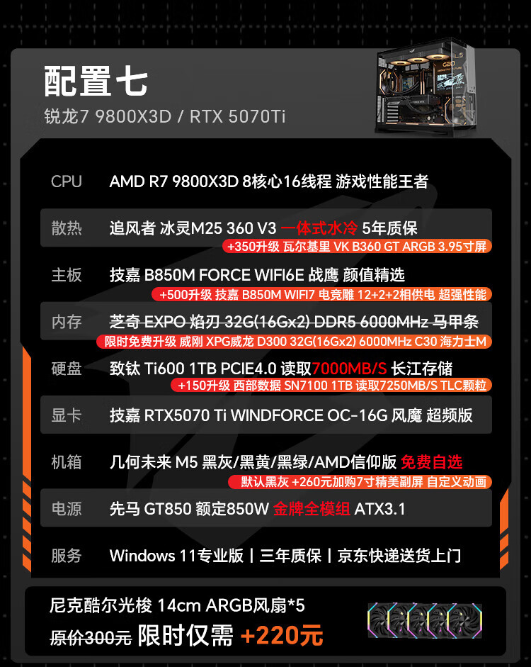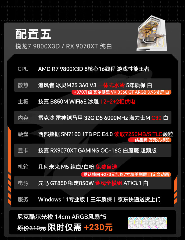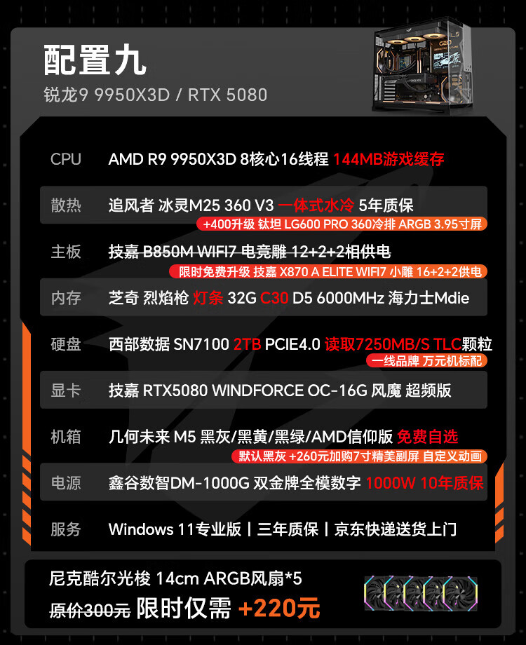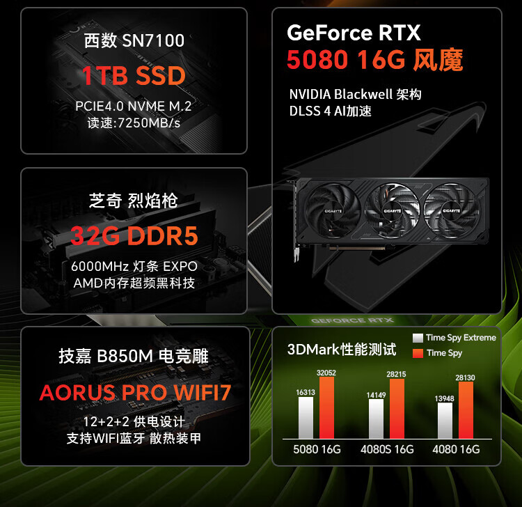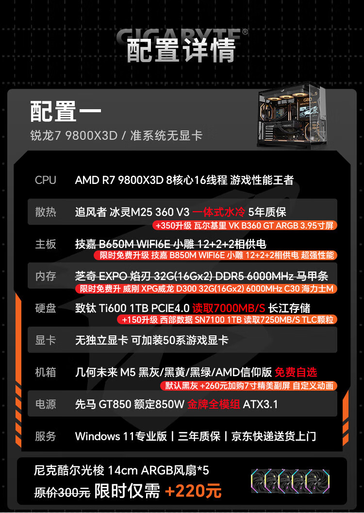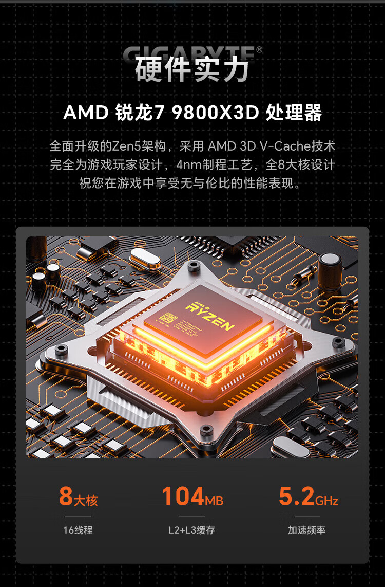 GIGABYTE AMD Ryzen R7 9800X3D/5080/5070Ti/9070XT/5070 4K/2K e-sports host Delta fully assembled computer game interest-free DIY desktop with eight 9800X3D丨RTX5080