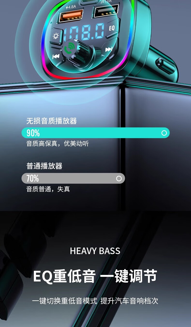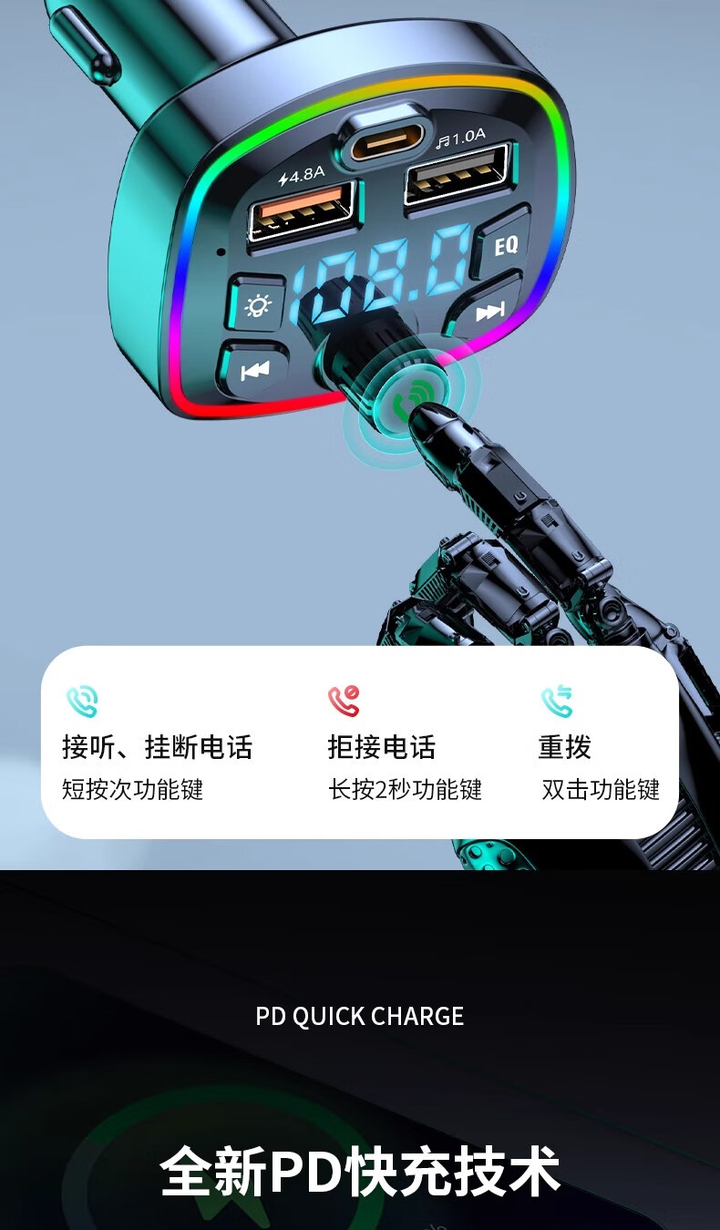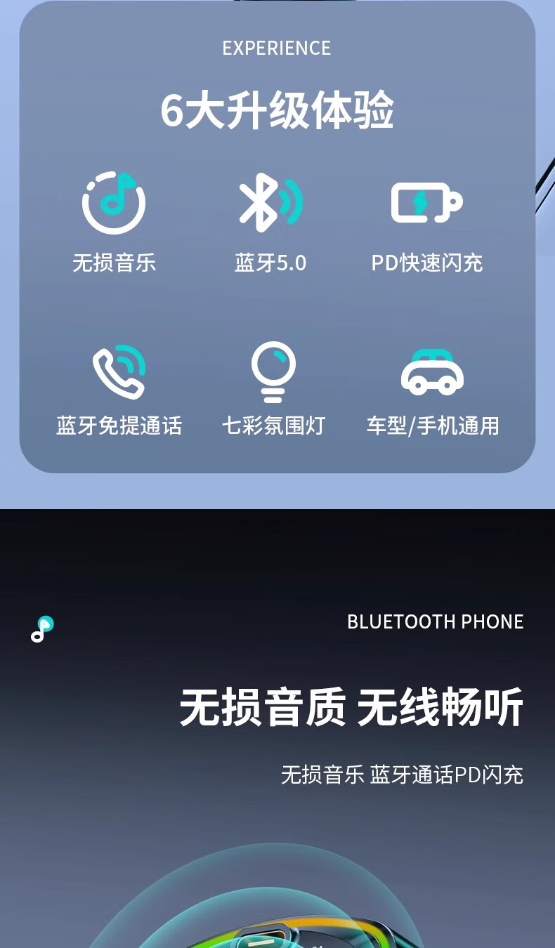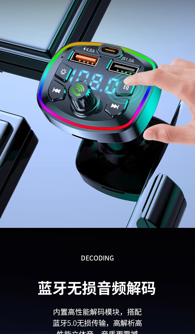 Car Bluetooth receiver lossless mp3 player car music USB converter cigarette lighter fast charging charger car multi-function charger