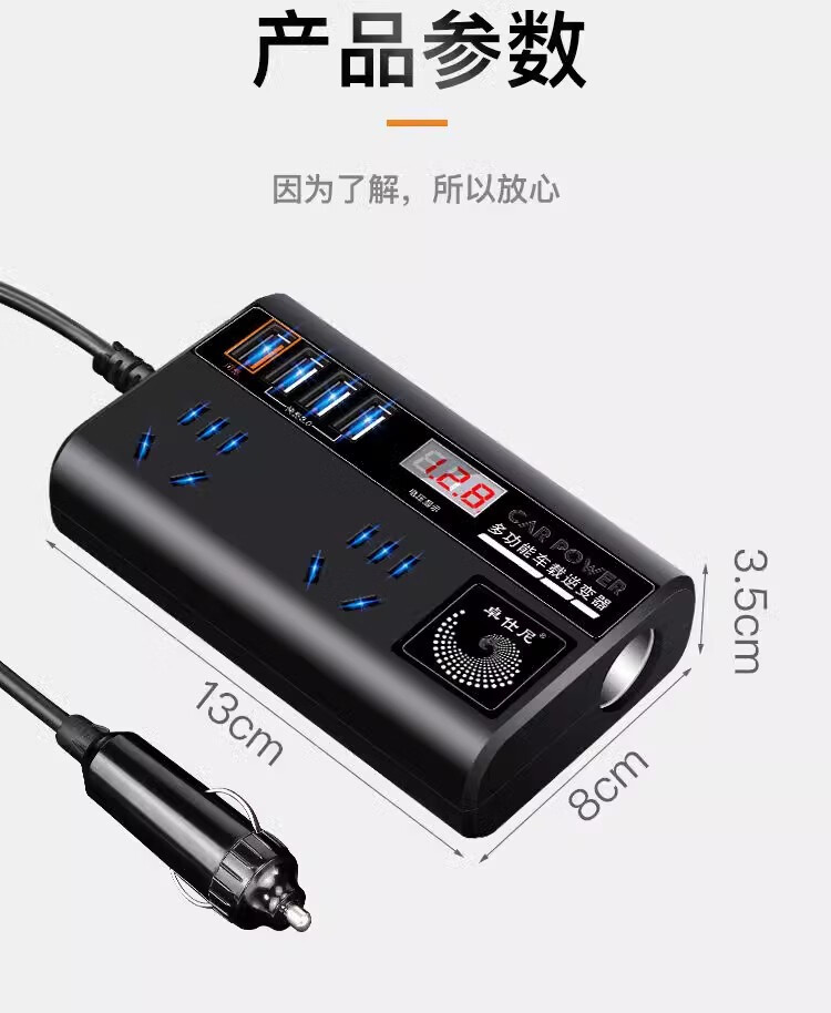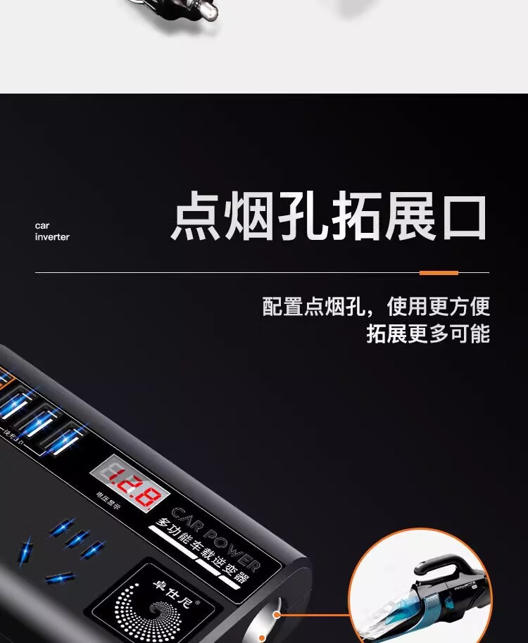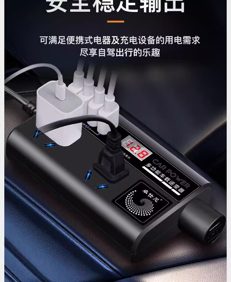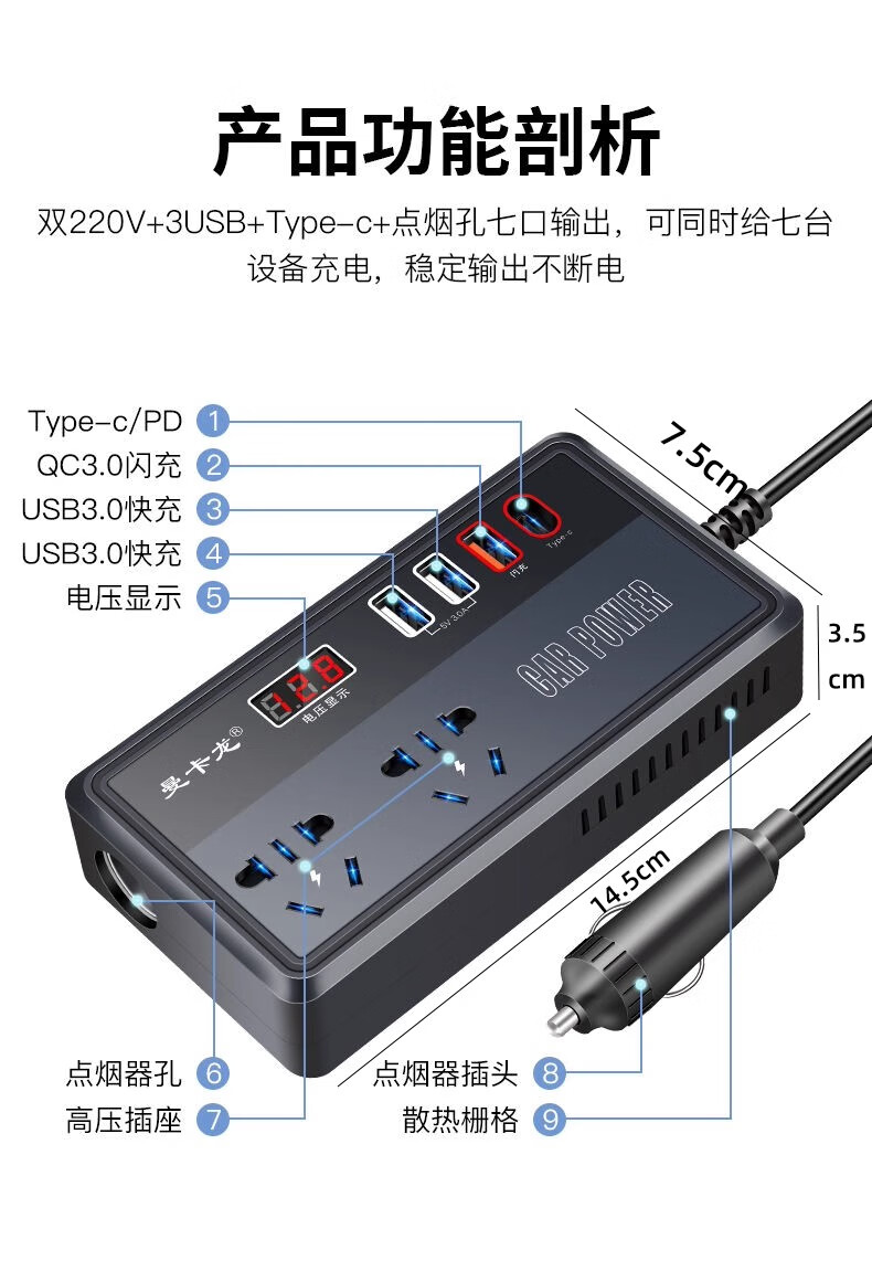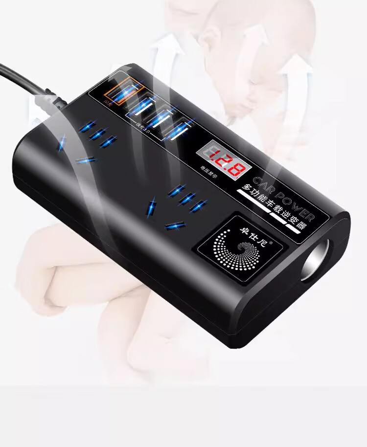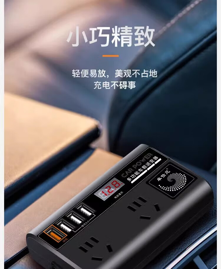 Vehicle-mounted inverter 12V24V to 220V truck and car power conversion transformer USB fast charge flash charge digital display vehicle-mounted inverter black digital display + fast charge