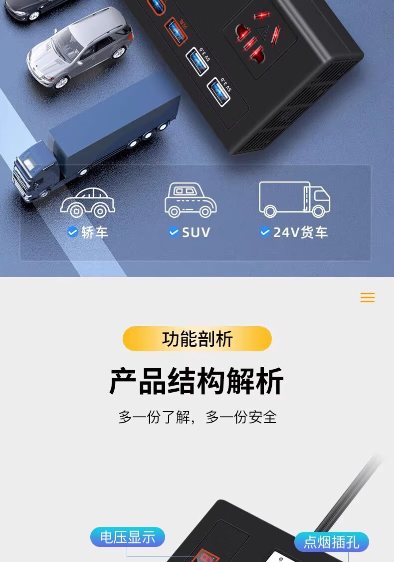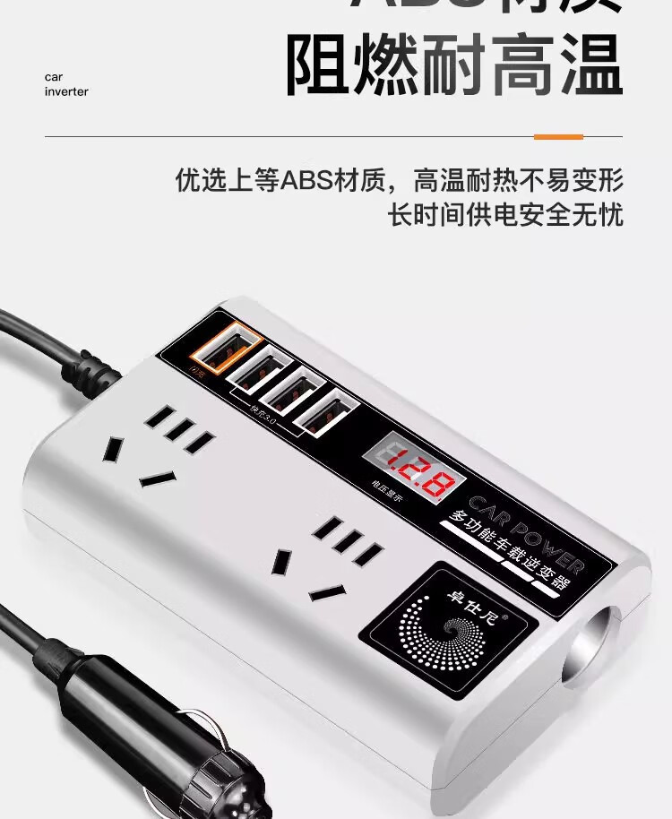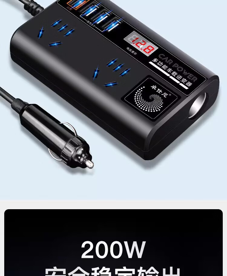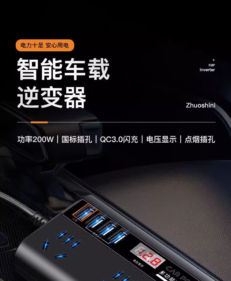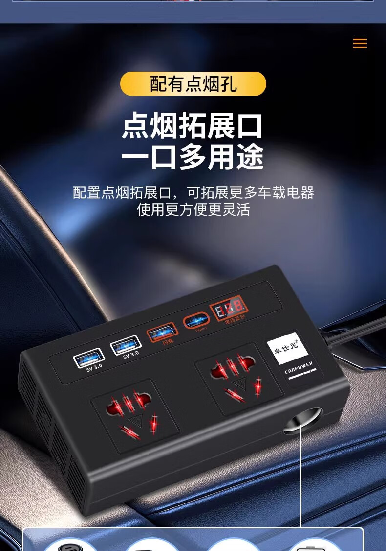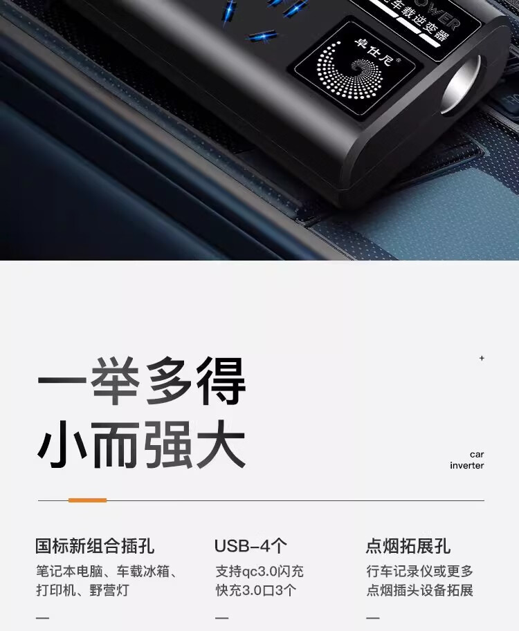 Vehicle-mounted inverter 12V24V to 220V truck and car power conversion transformer USB fast charge flash charge digital display vehicle-mounted inverter black digital display + fast charge