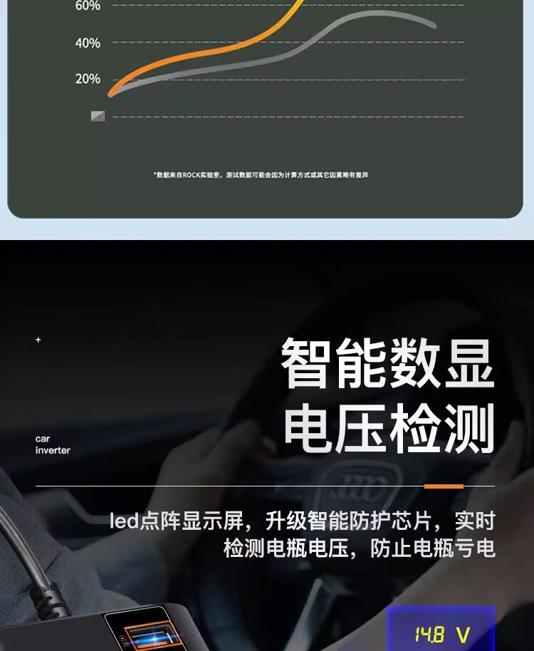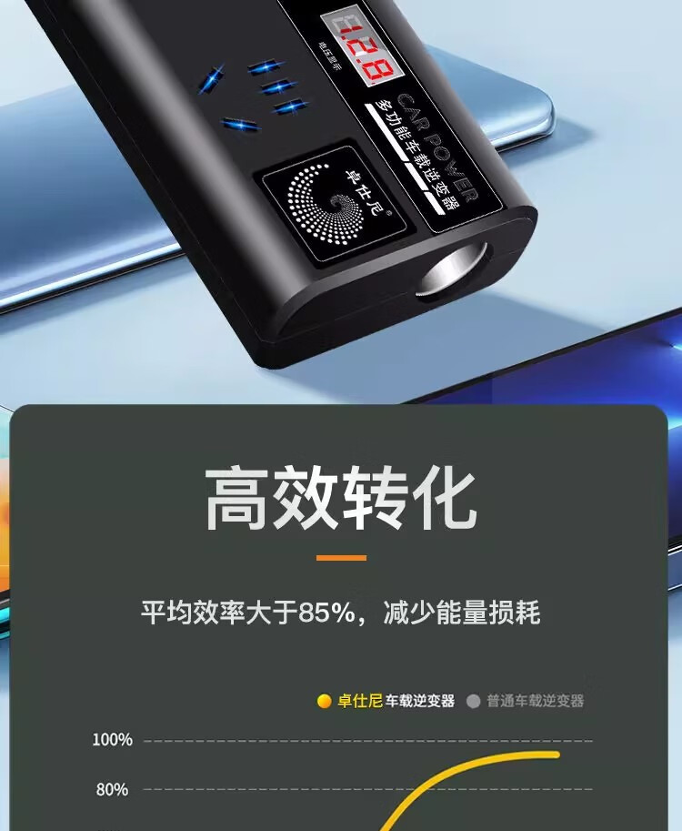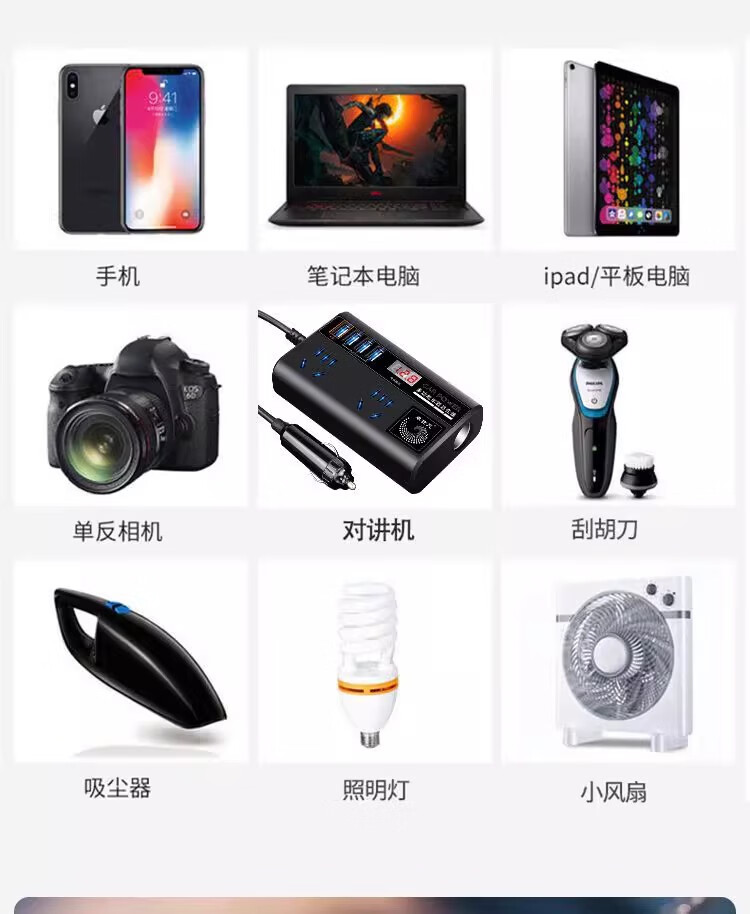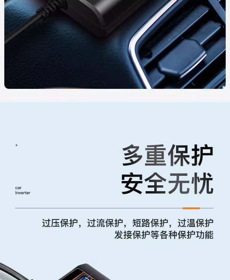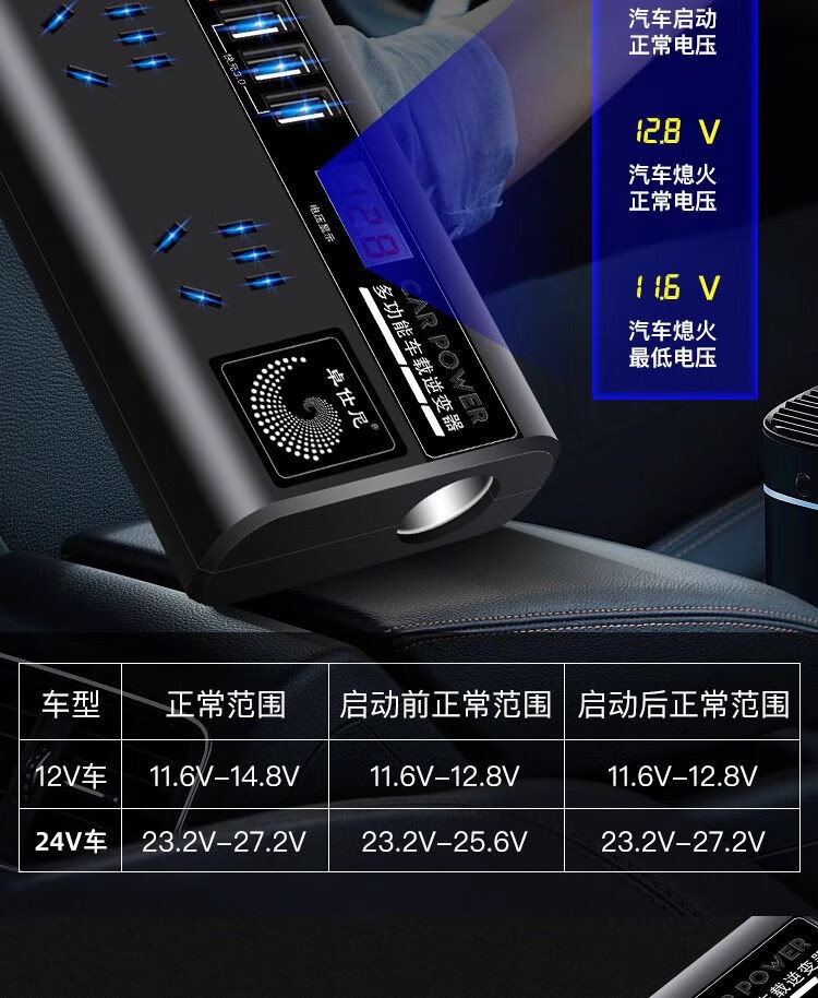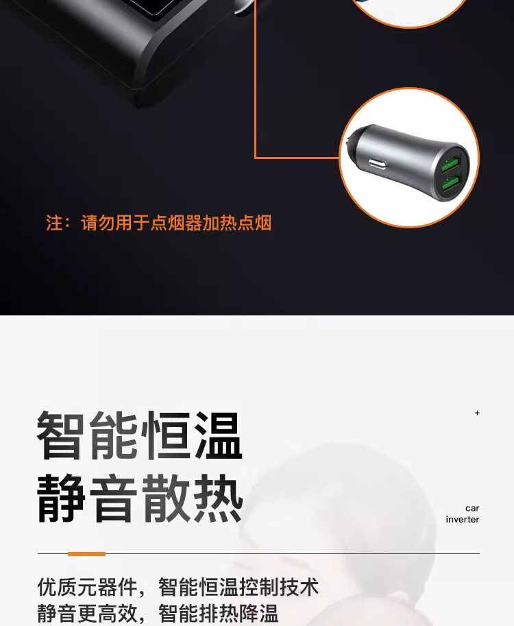 Vehicle-mounted inverter 12V24V to 220V truck and car power conversion transformer USB fast charge flash charge digital display vehicle-mounted inverter black digital display + fast charge