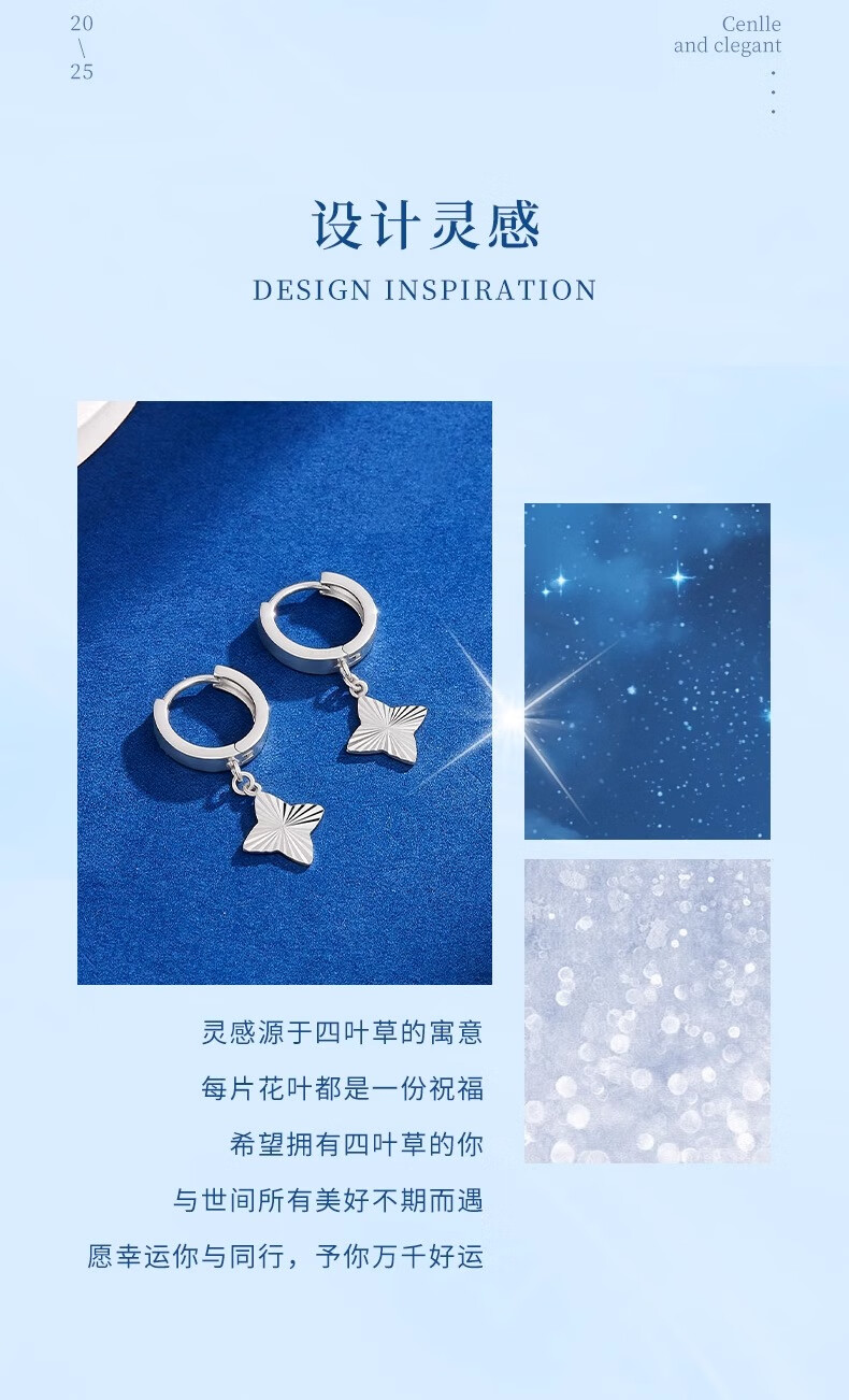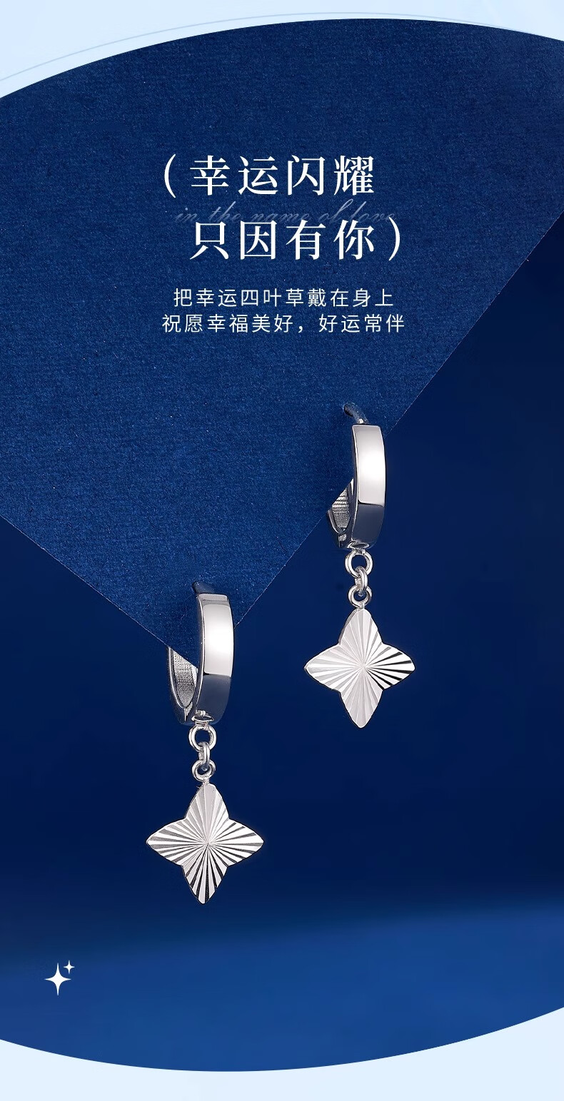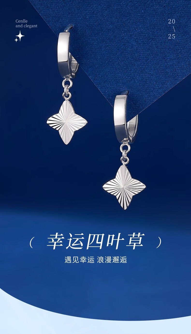 CHINA GOLD PT950 Platinum Star Lucky Four-leaf Clover Earrings Women's Valentine's Day Birthday Gift Year of the Horse Zodiac Year Gift Platinum Star Lucky Four-leaf Clover Earrings About 3.6g
