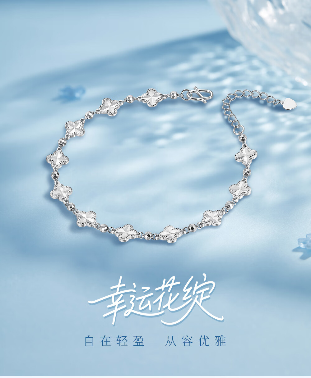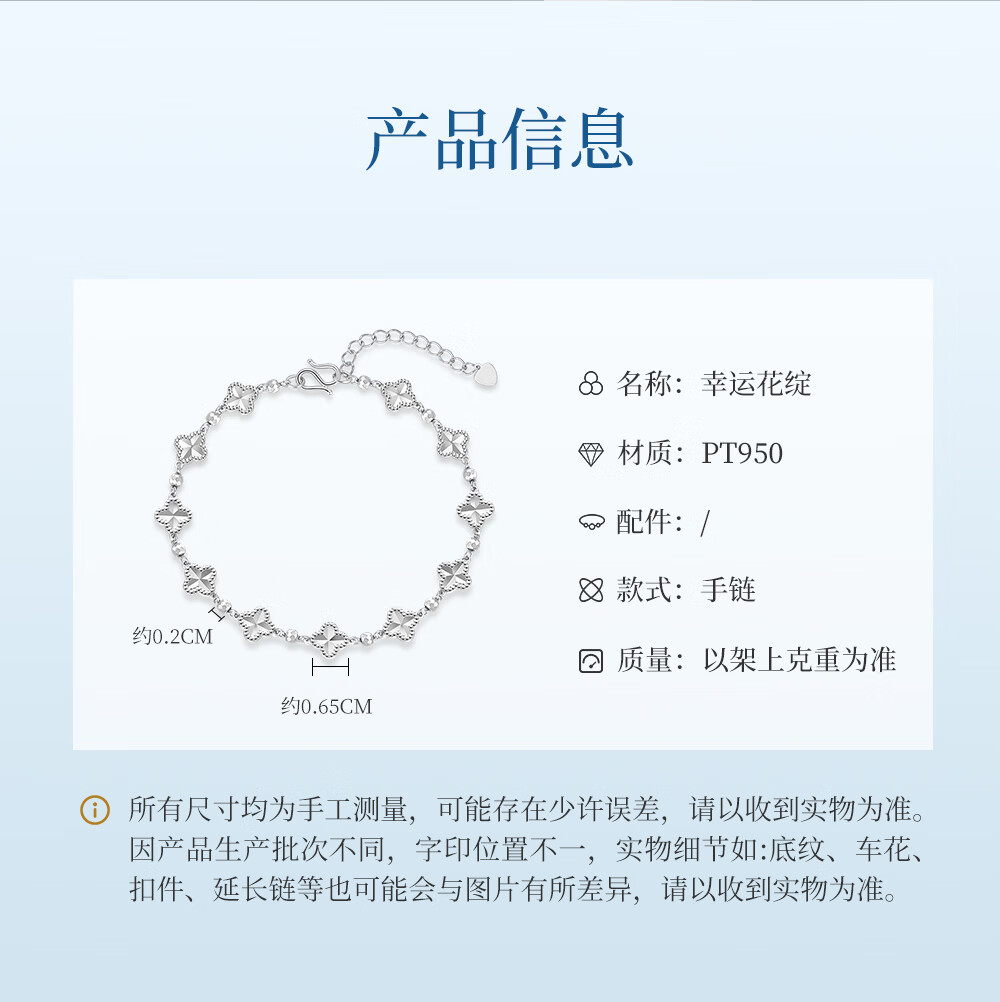 Ming brand jewelry platinum Pt950 platinum lucky flower bloom bracelet gift for women BFK0062 chain length about 15+4 cm about 5.61 grams