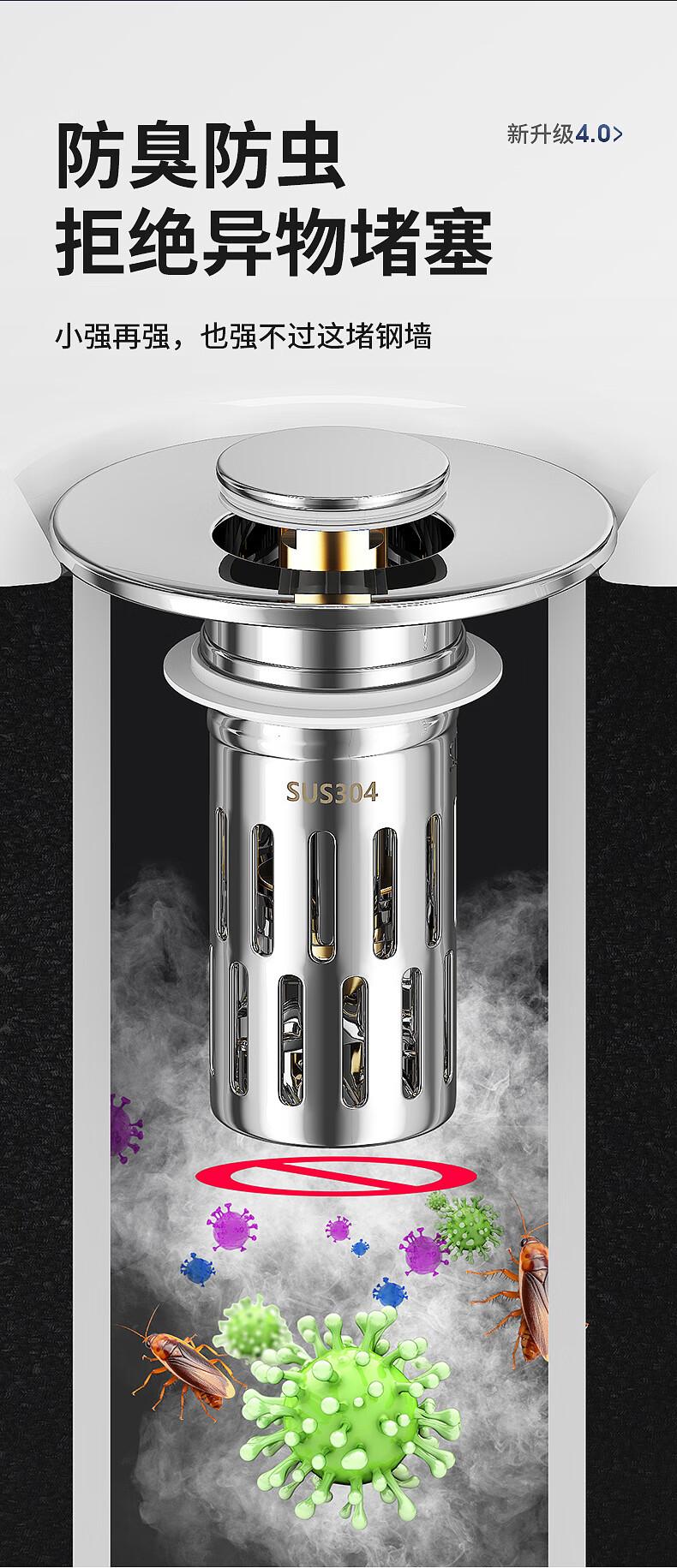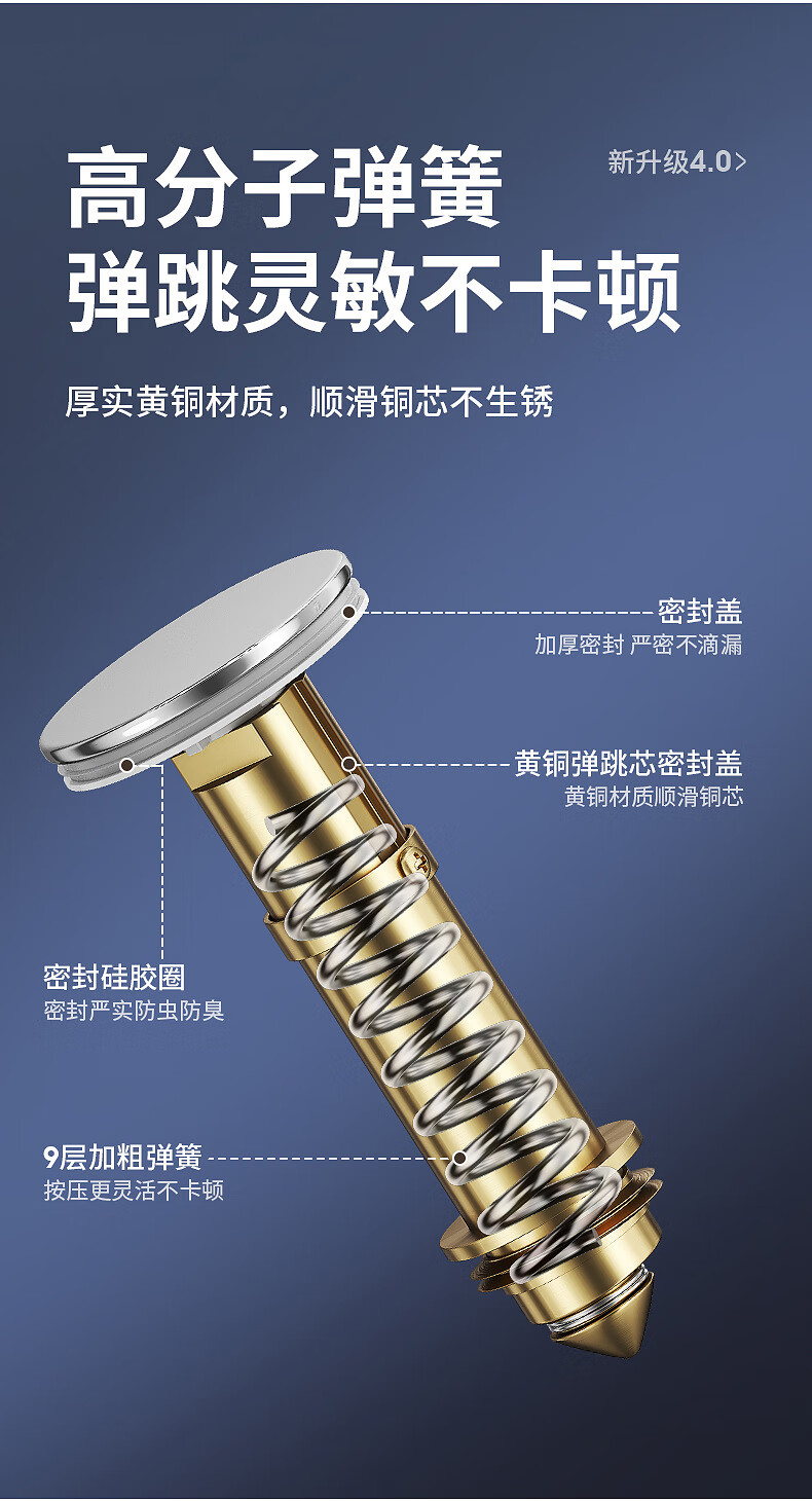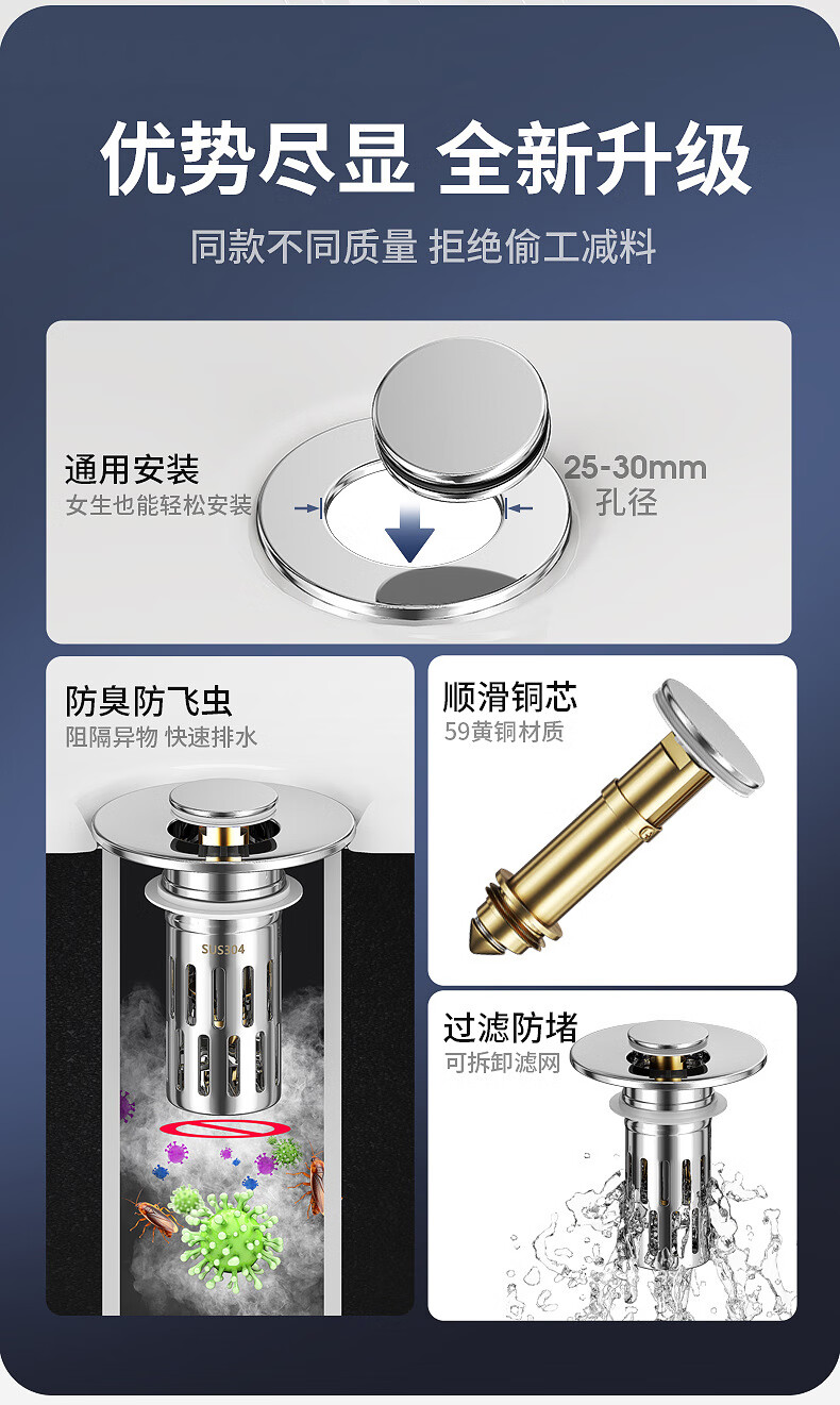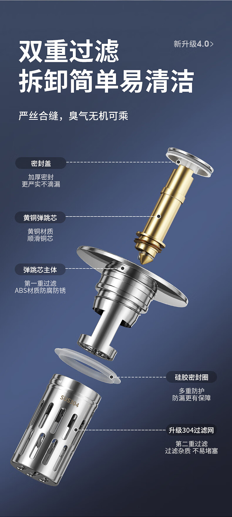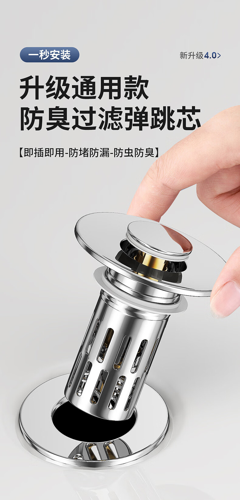 Jomoo New German washbasin leak plug washbasin bouncing core hair anti-clogging filter pool basin deodorant universal brass core double-layer filtration