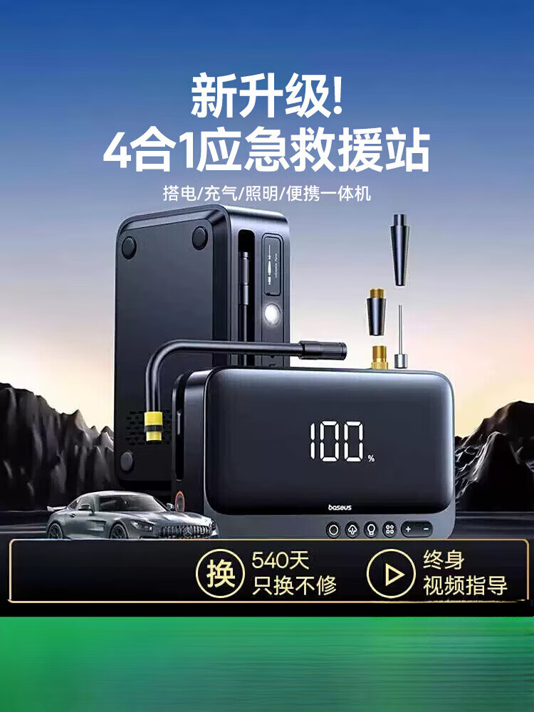 BASEUS New Car Emergency Starter Power Supply Air Pump Portable Car Battery Match 2025 Top Version Integrated Storage Four Cores