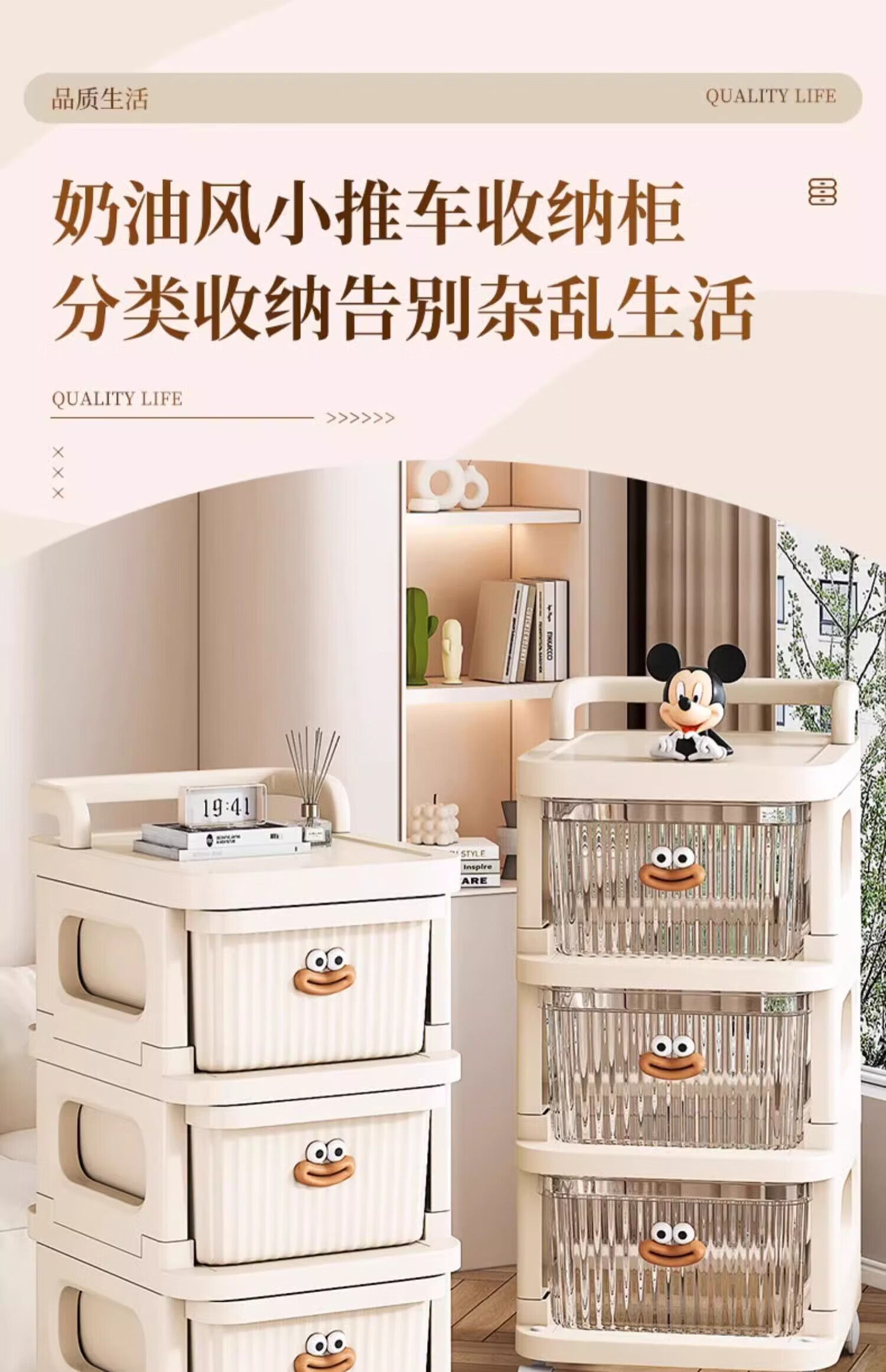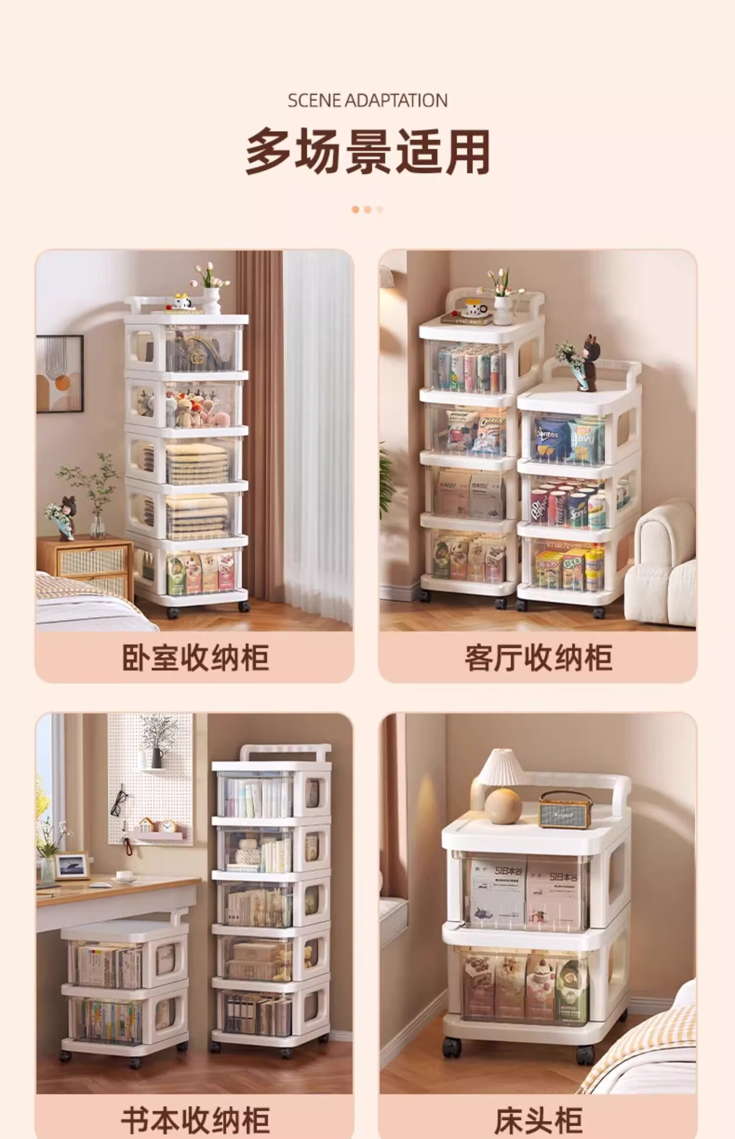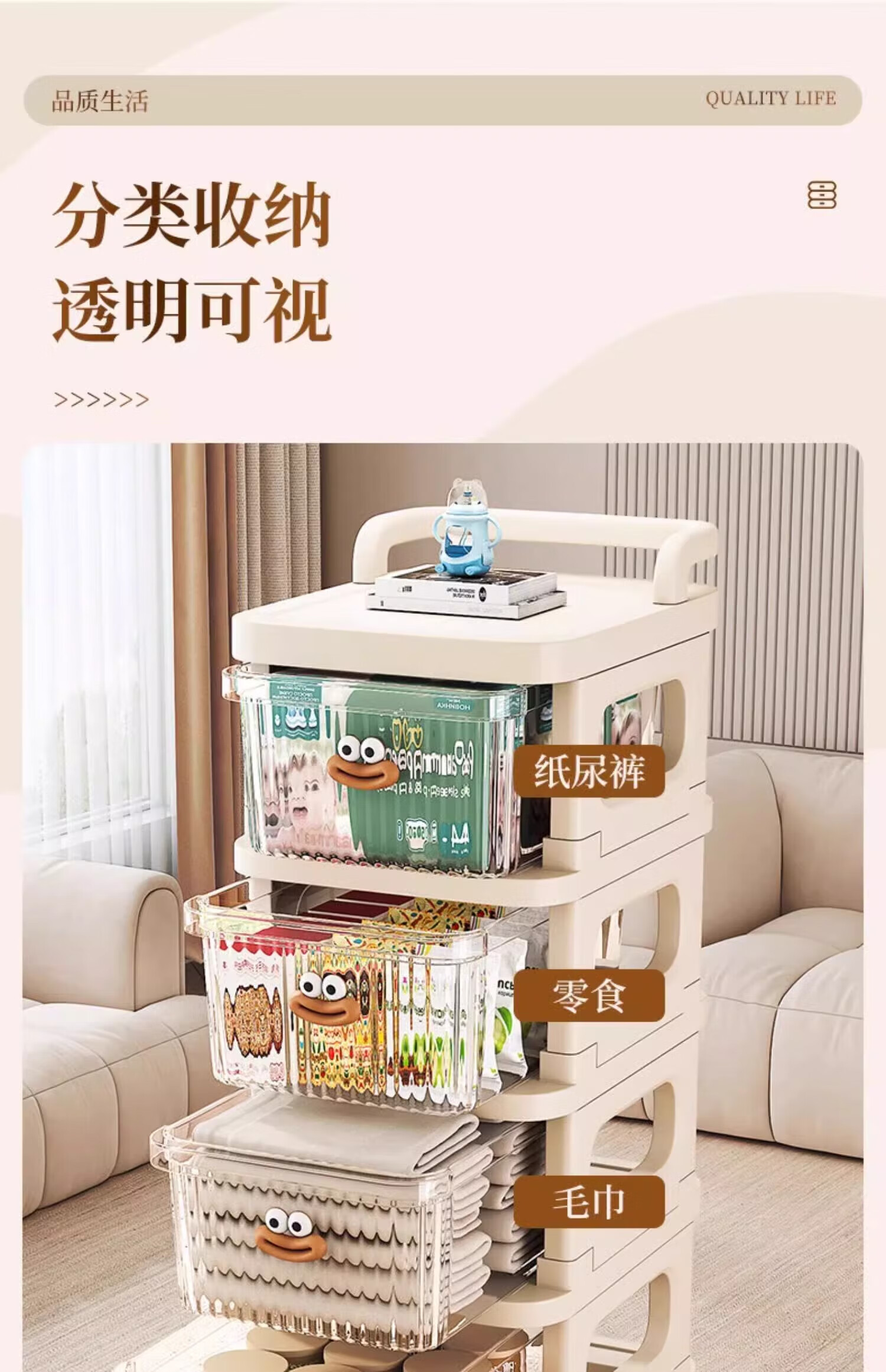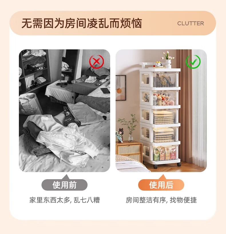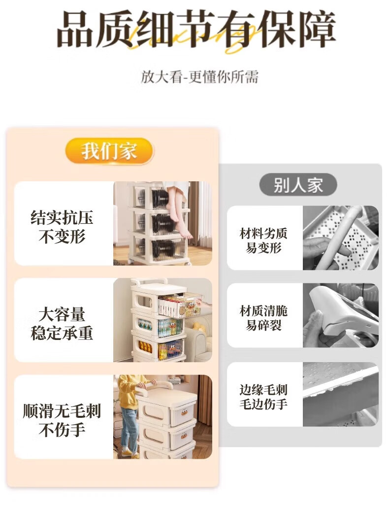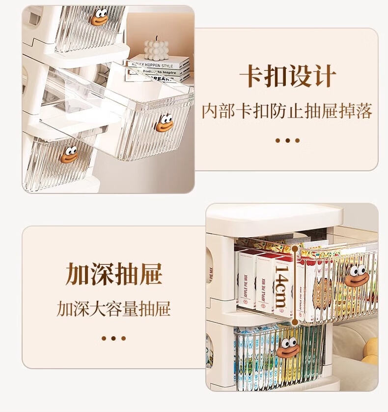 Nifeng trolley storage rack, toys, snacks, cups, multi-layer floor-standing storage rack, household drawer-type mobile storage rack, 3-layer luxury model (translucent drawer), extra thick material - free sausage mouth