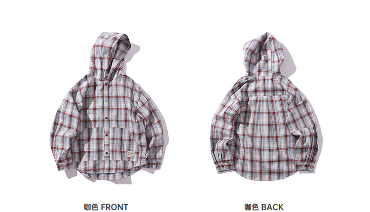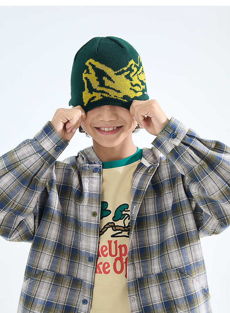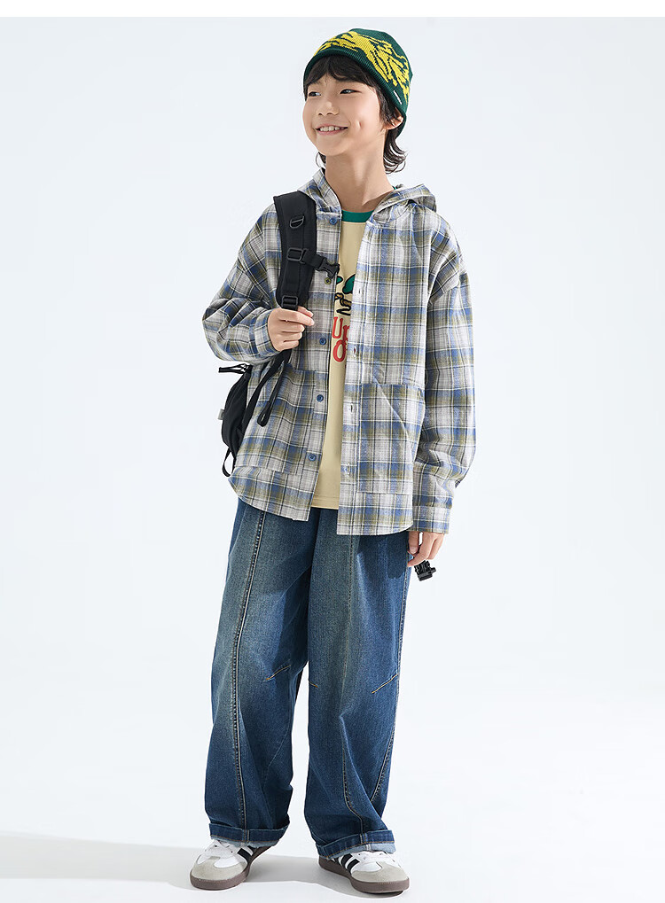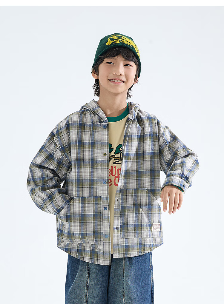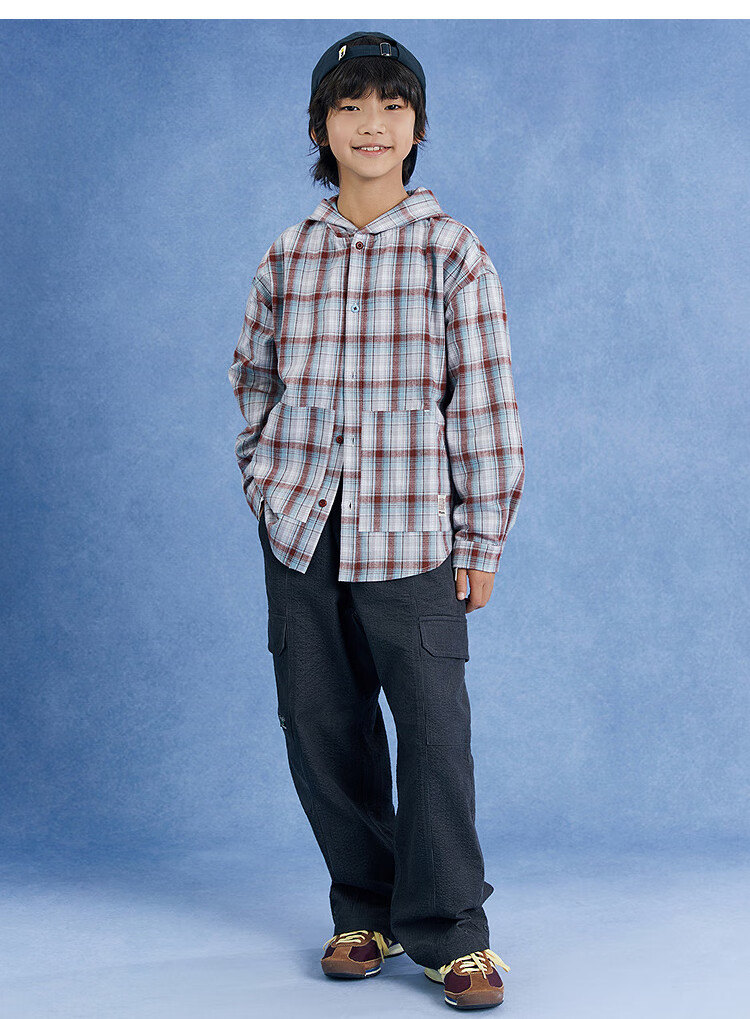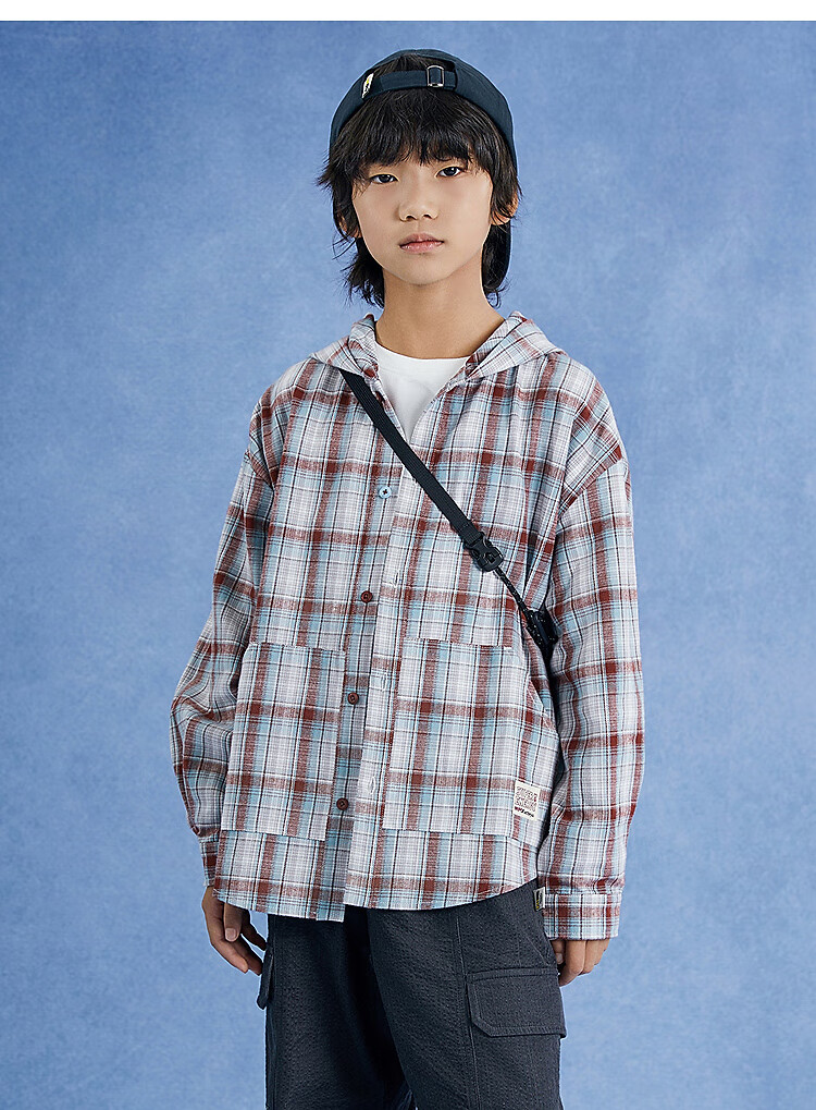 Mipu shopping mall same style autumn new children's shirt brushed plaid hooded long-sleeved versatile casual top coffee color 150