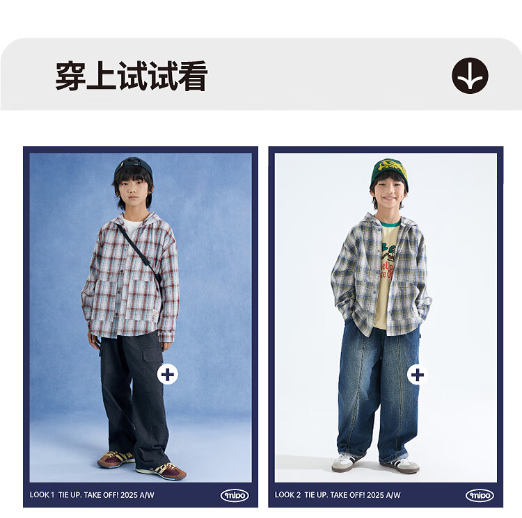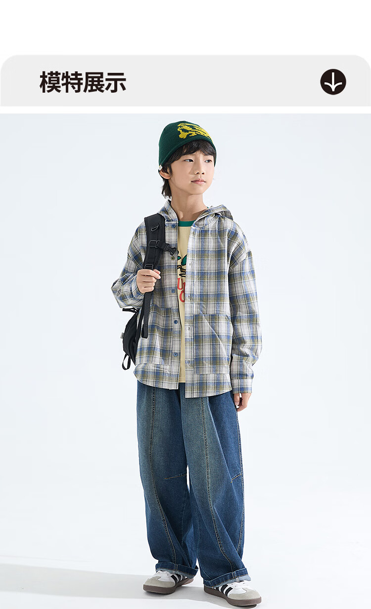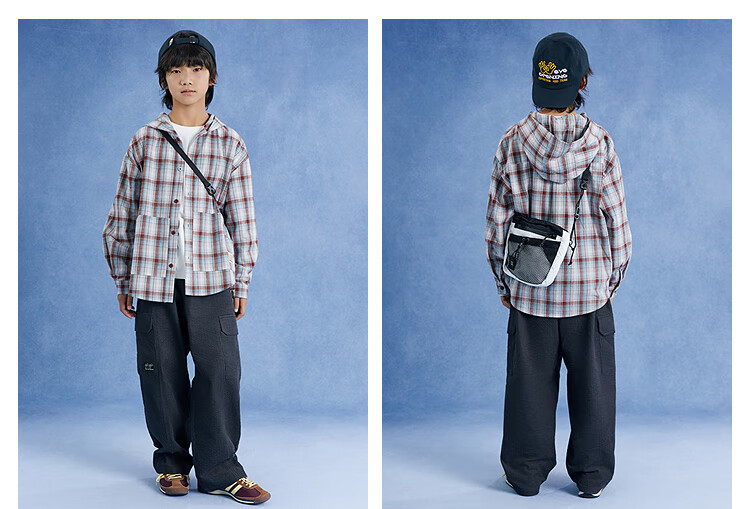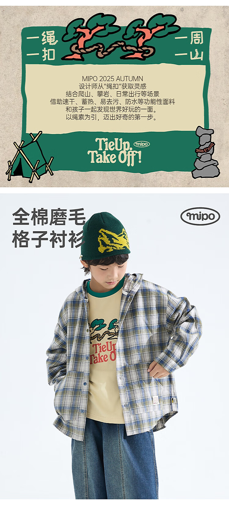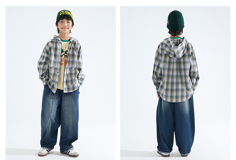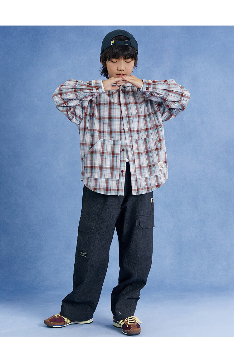 Mipu shopping mall same style autumn new children's shirt brushed plaid hooded long-sleeved versatile casual top coffee color 150