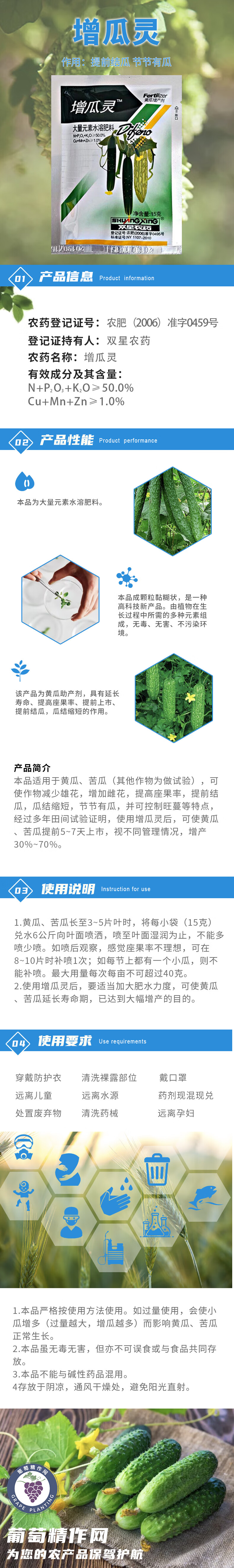 Shouguang Double Star Zenggualing cucumber and bitter melon increases female flowers in advance and controls melon growth. Water-soluble fertilizer with a large number of elements 15g