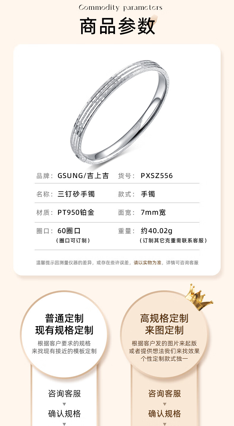 GsunG platinum PT950 three-nail sand bracelet for women, retro frosted nail pattern bracelet, pure platinum bracelet for men, simple PT950 bracelet, 12 grams, about 54-55 ring, pre-ordered