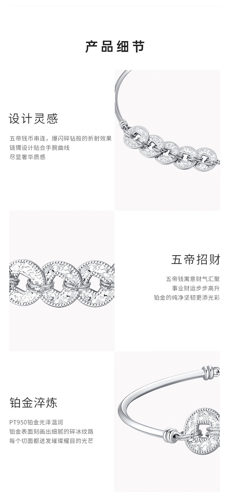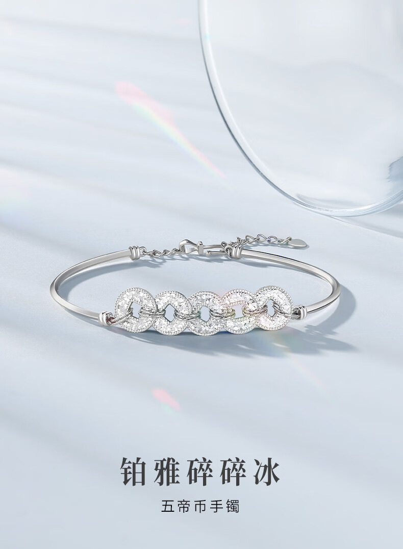 Chao Acer Platinum Bracelet Women's PT950 Bracelet Five Emperors Coin Crushed Ice Flash Gift Priced Labor Cost 980 Yuan 8.25g