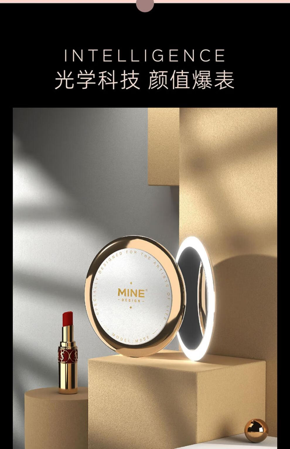 Mathilde M's new mini smart makeup mirror, small mirror for women, hand-held light-emitting vanity mirror, LED fill-in light mirror, MOSE small leather mirror (moonlight white) gift box