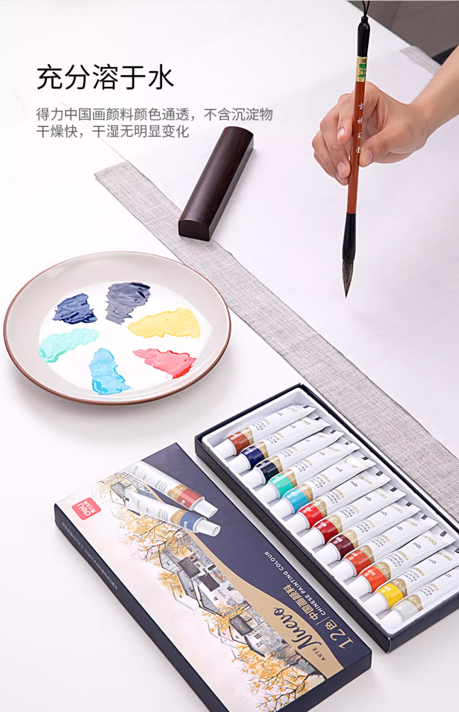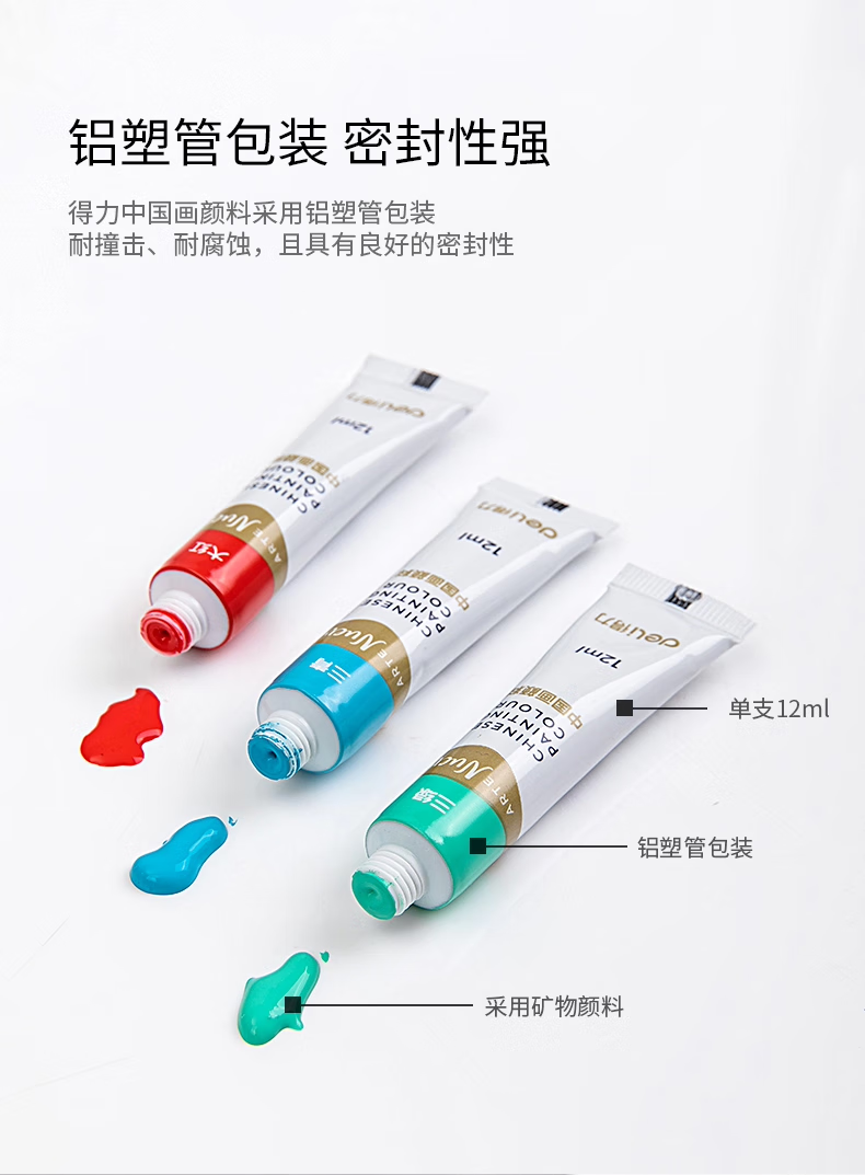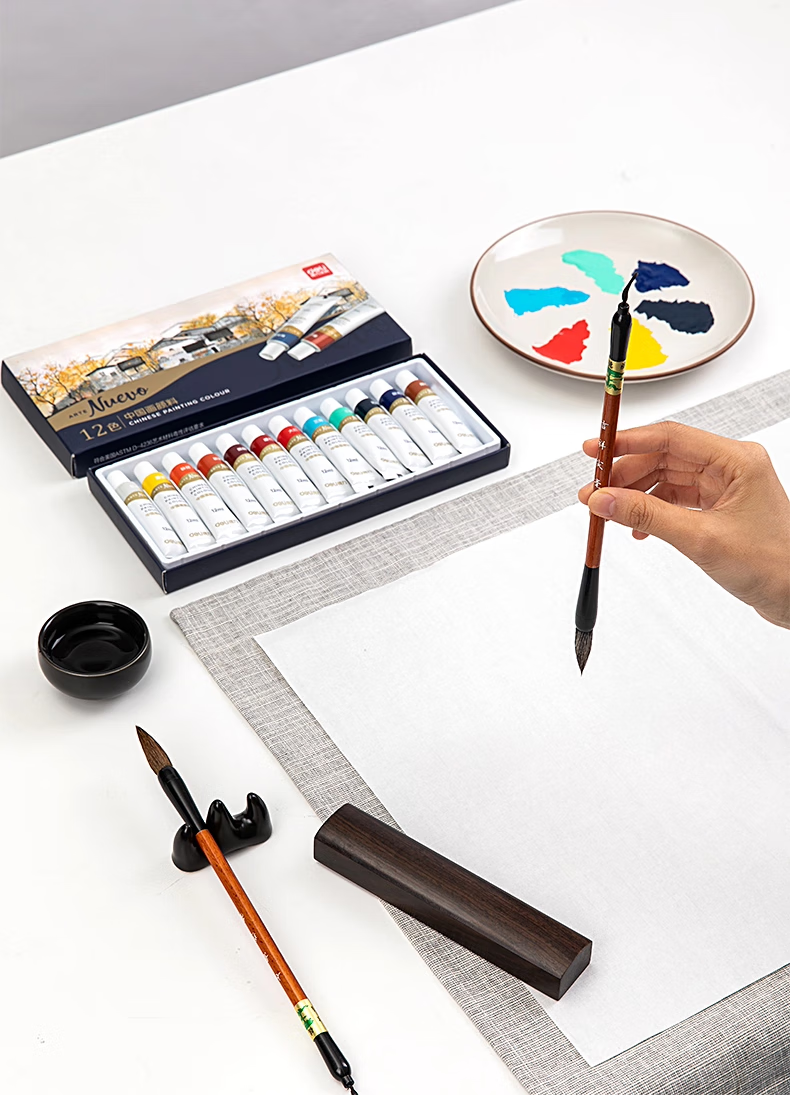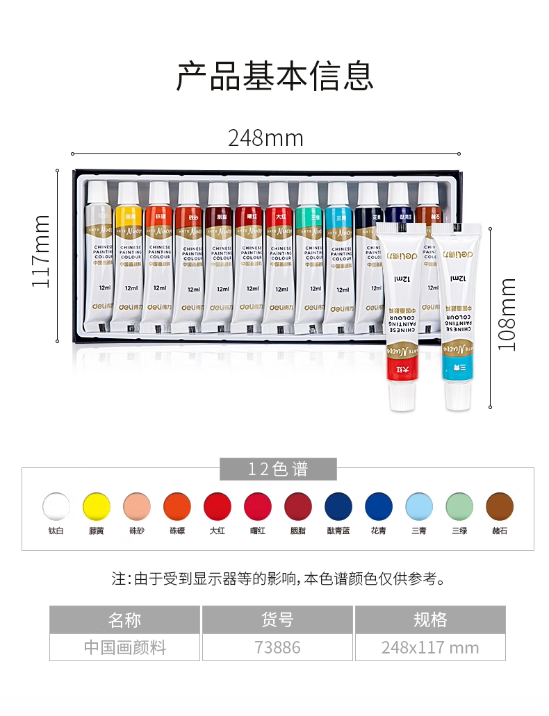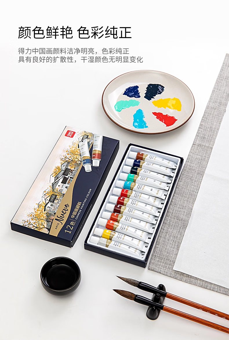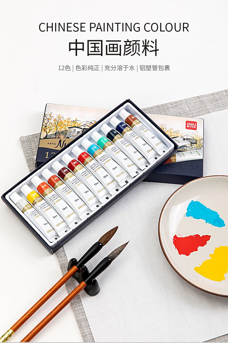 Deli Chinese Painting Pigments Beginner Set Tools Full Set of 24 Colors Non-toxic Professional Mineral Ink Painting Chinese Painting Tools and Materials Full Set of Art Student Entry-Specific Student Brush Pens Cost-effective 12 Colors 5ml 13-piece Set + 30 Rice Papers + 2 Brush Pens