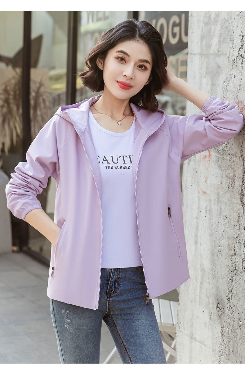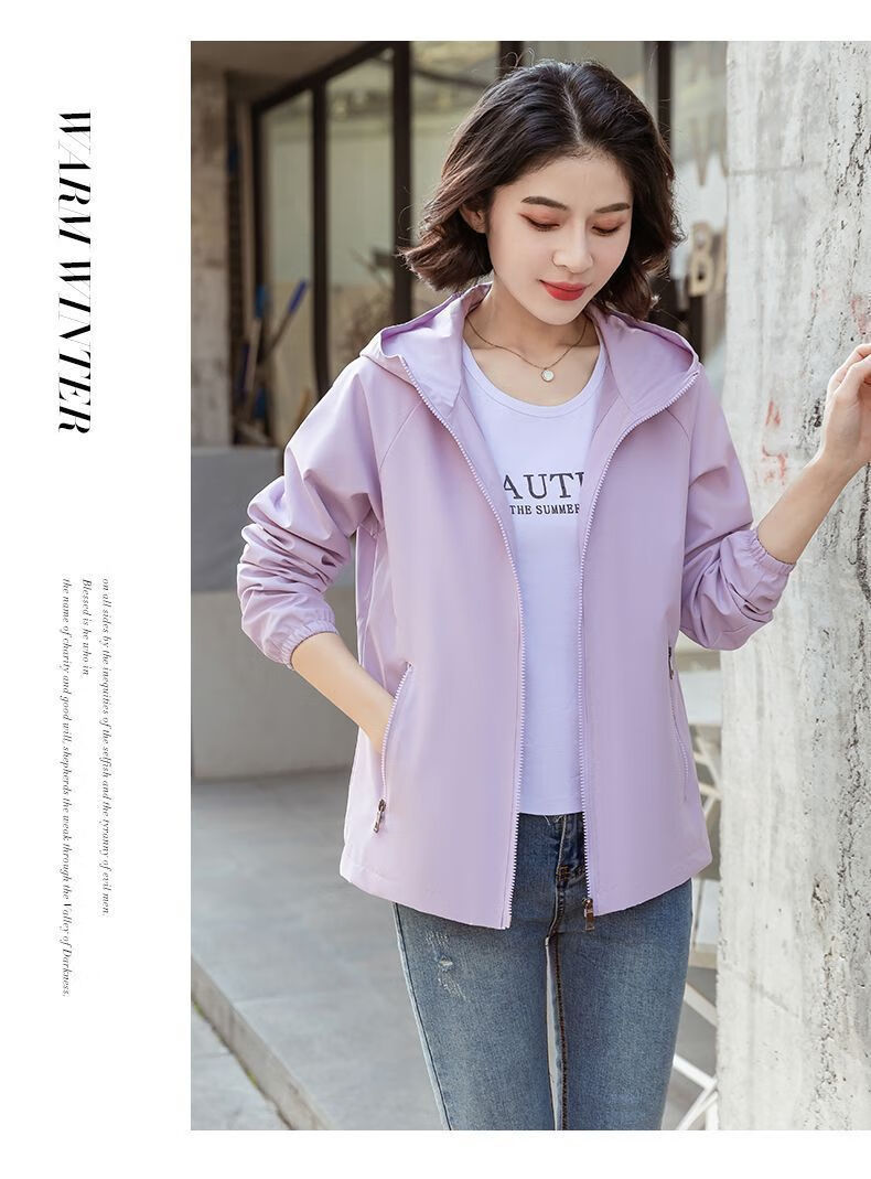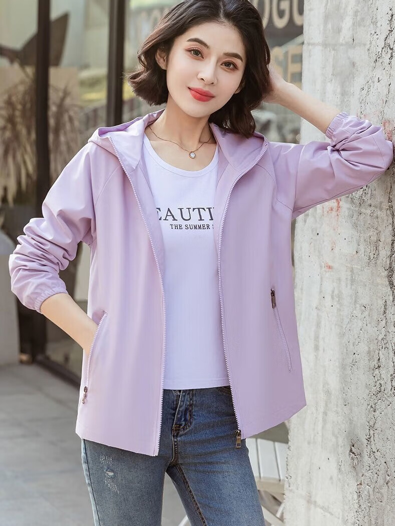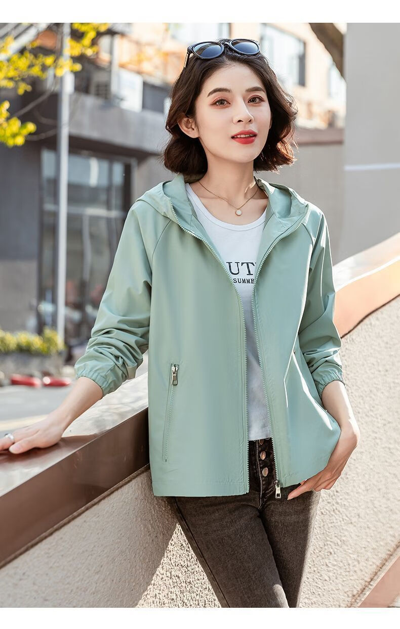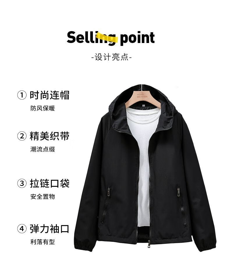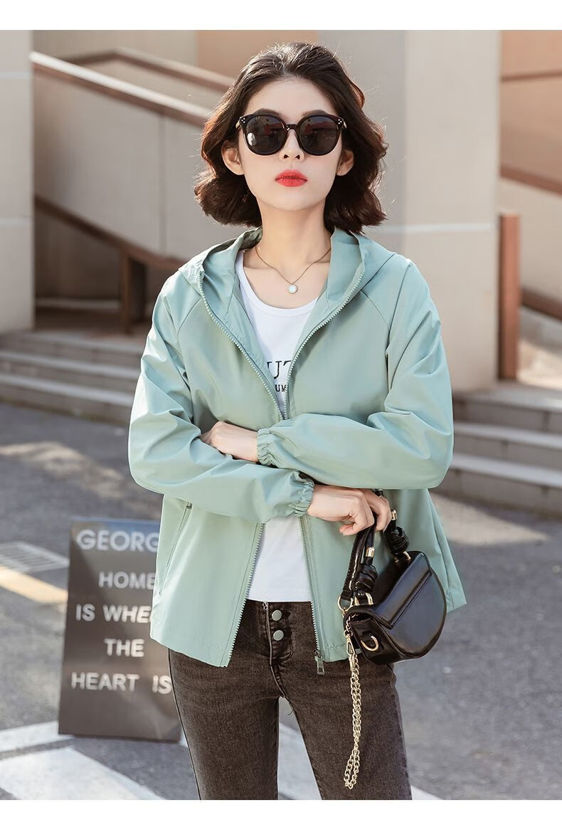 Windbreaker Women's Short Spring and Autumn New Loose Casual Versatile Large Size Thin Hooded Small Fragrance Jacket Jacket Black XL 120-135Jin Jin is equal to 0.5 kg