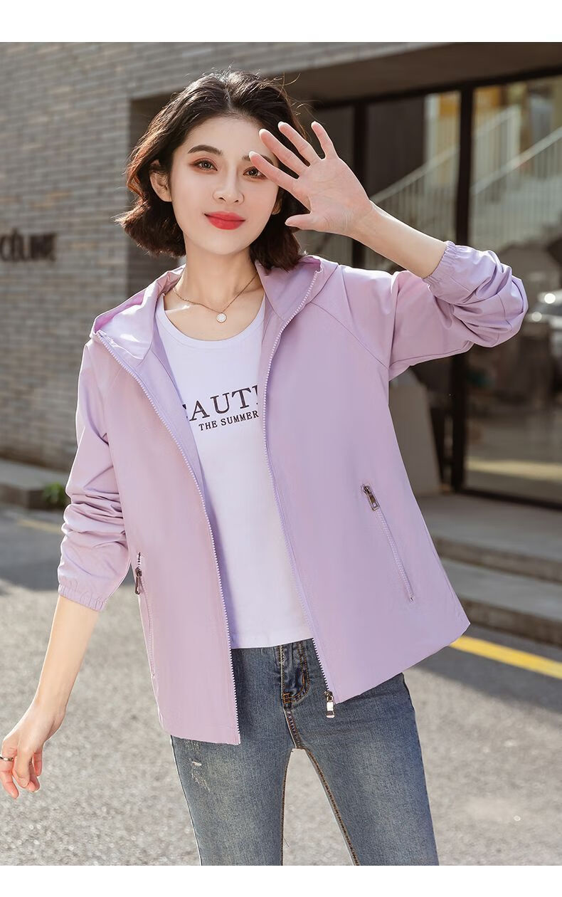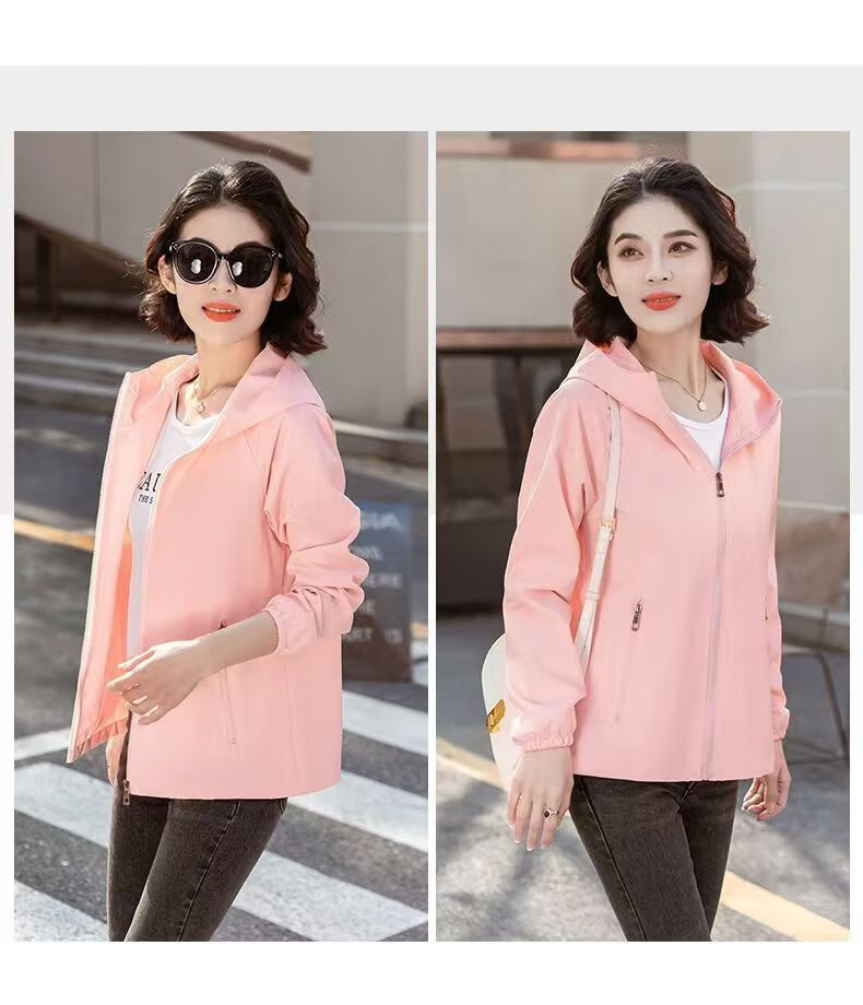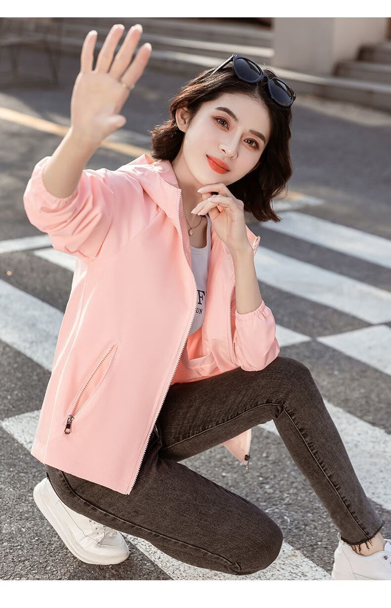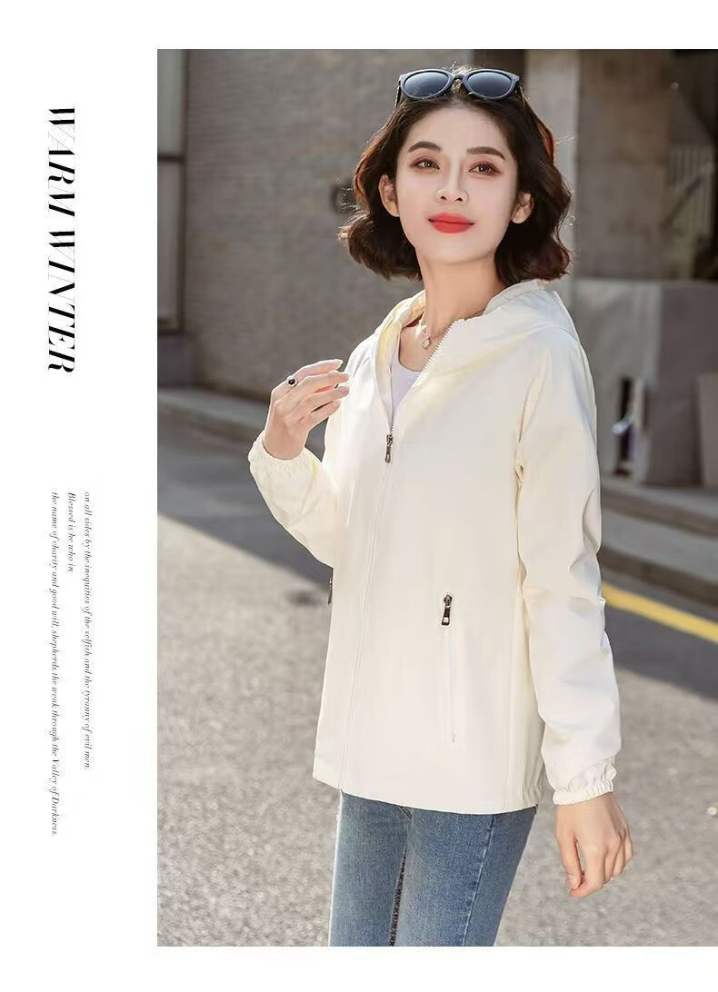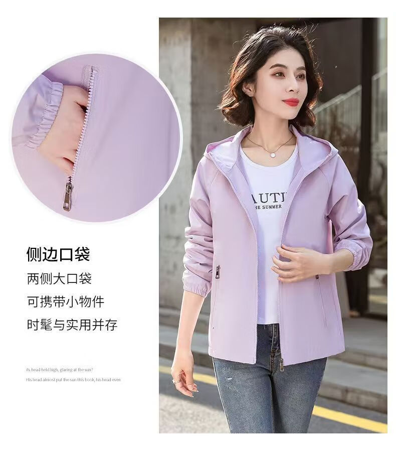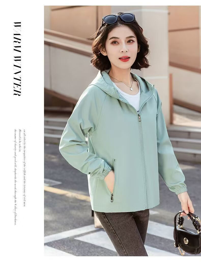 Windbreaker Women's Short Spring and Autumn New Loose Casual Versatile Large Size Thin Hooded Small Fragrance Jacket Jacket Black XL 120-135Jin Jin is equal to 0.5 kg