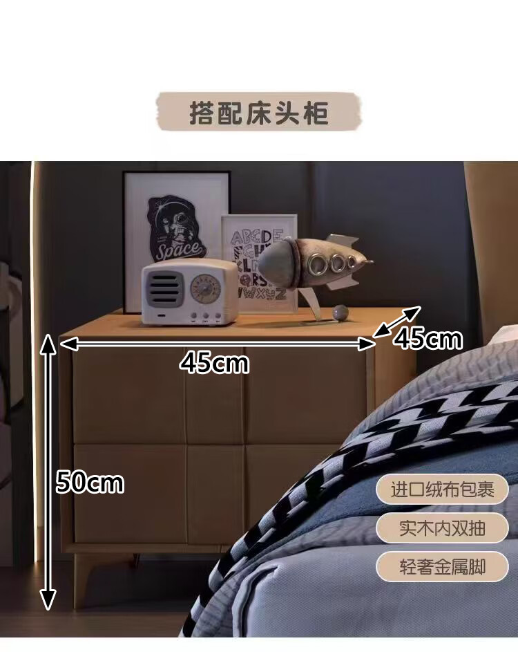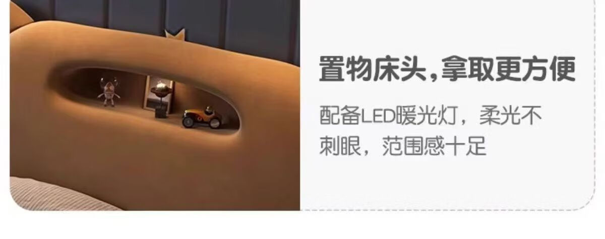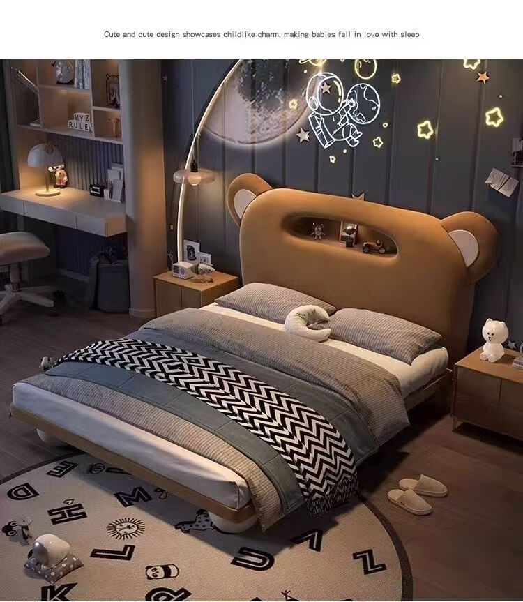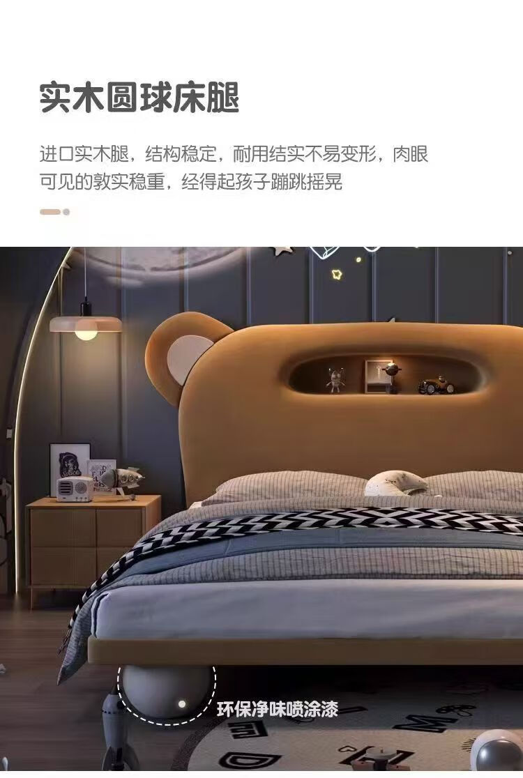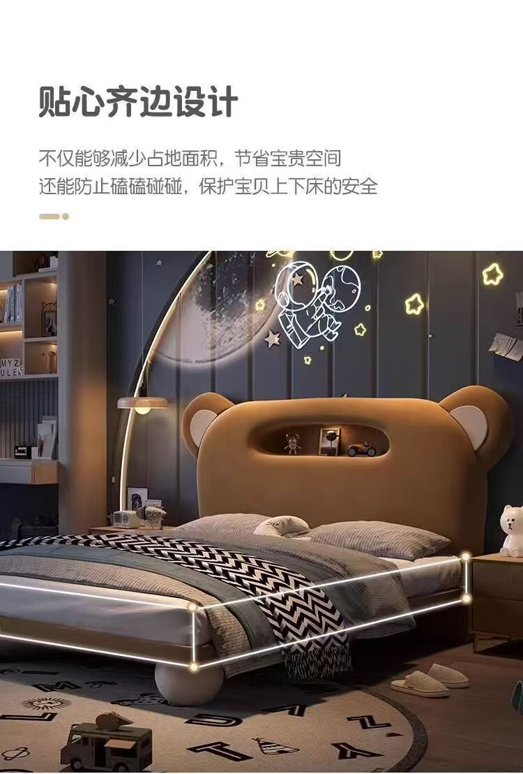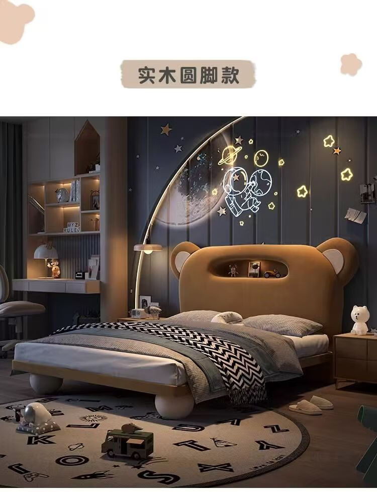 New children's bed creative leather bed boy bear bedside storage modern solid wood soft package cartoon style round foot bed bed + 20cm Simmons 808 latex pad - free installation 1500mm*2000mm frame structure