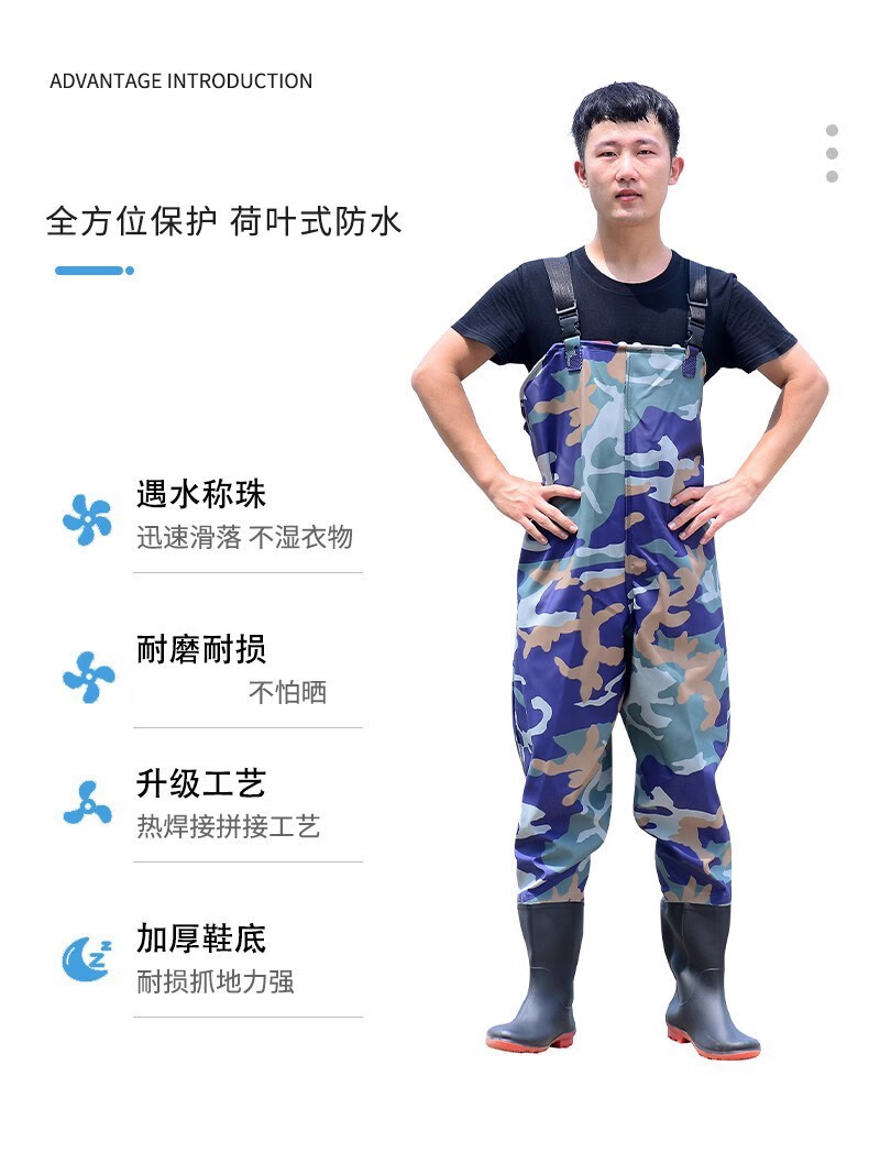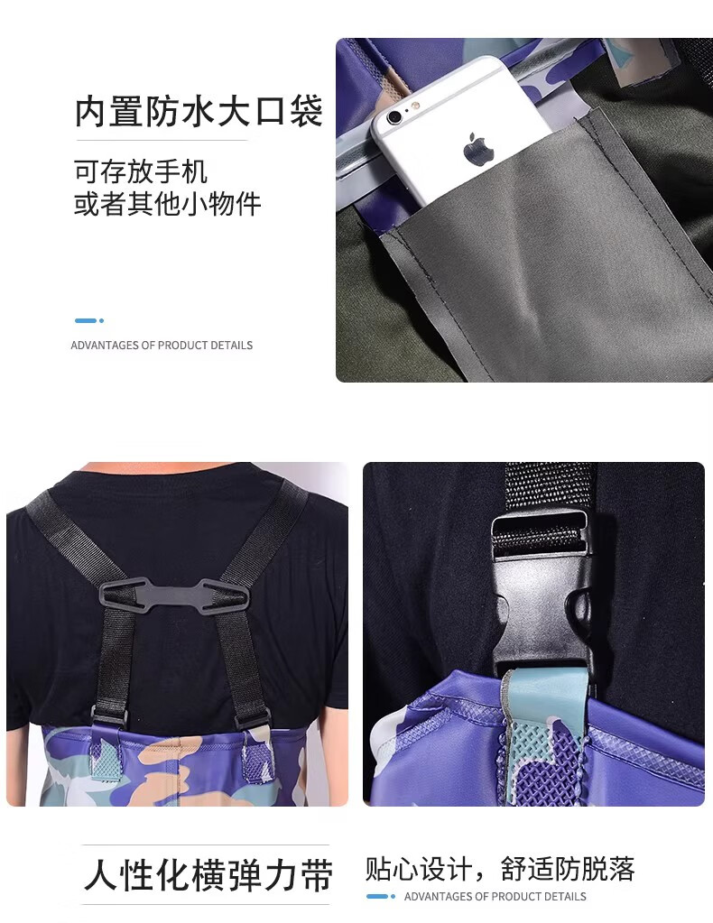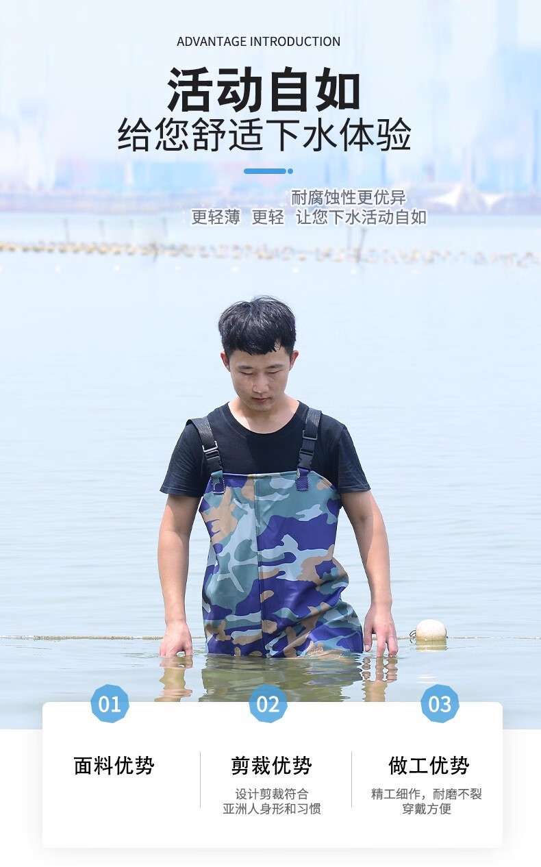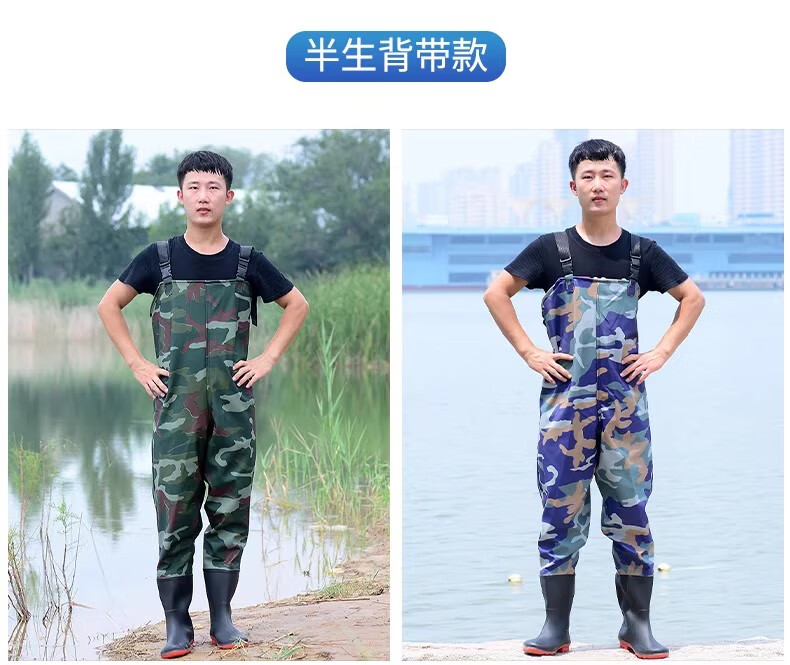 One-piece waders, thickened whole body, men's rain pants for fishing in the sea, waterproof lower body waders, water shoes, wading into the reservoir to catch fish, blue knitted suspenders, comfortable style 41