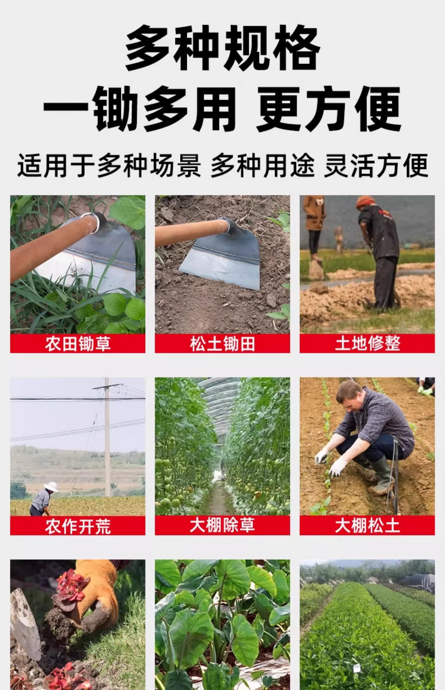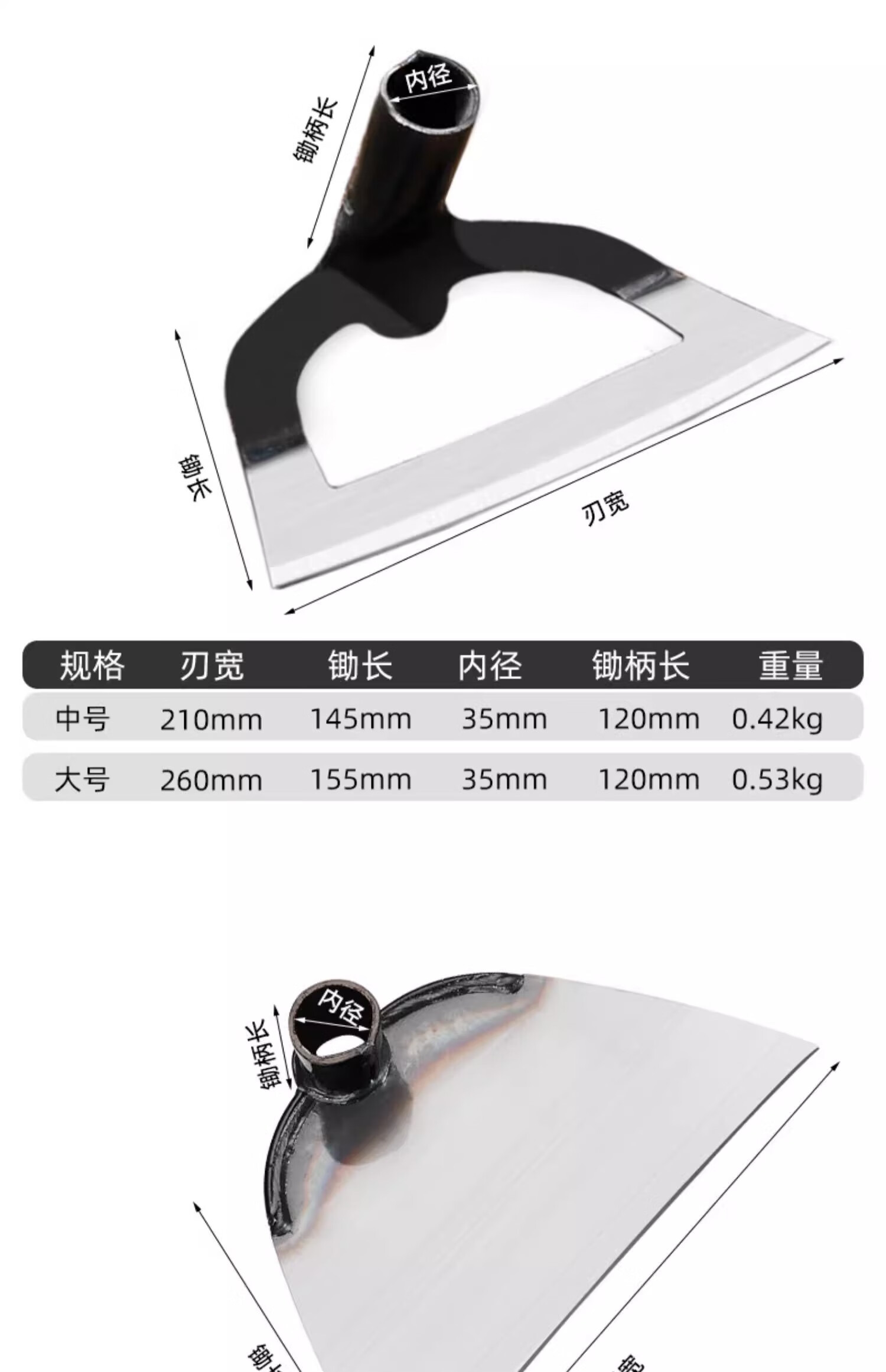 Silver rhinoceros hoe, special artifact for household vegetable planting and weeding, hoeing and shoveling agricultural tools, manganese steel weeding hoe, thickened manganese steel hoe, small size