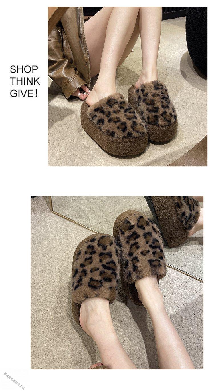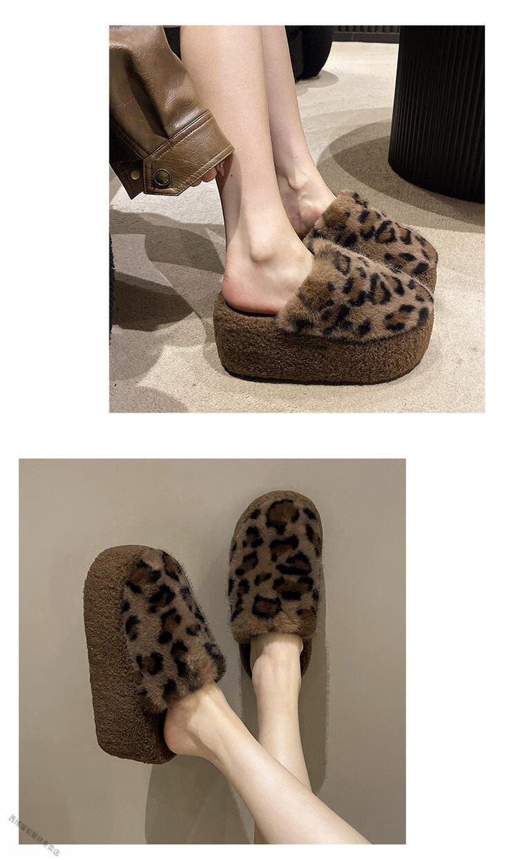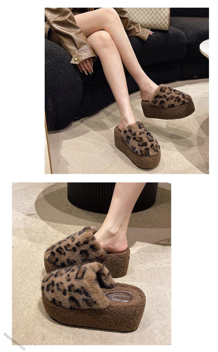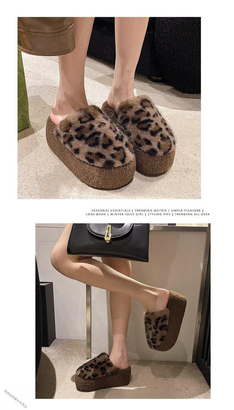 Western Camel Super High Heel Thick Soled Fur Slippers Women's Outerwear 2025 Autumn and Winter Platform Wedge Heel Plus Velvet Baotou Cotton Slippers Dark Brown One Size Small 34