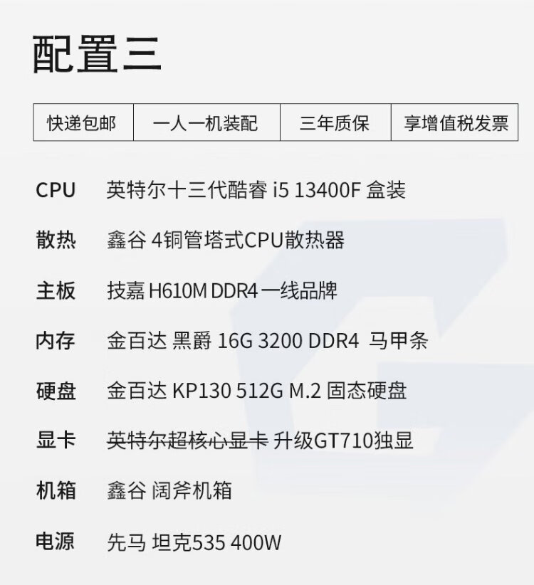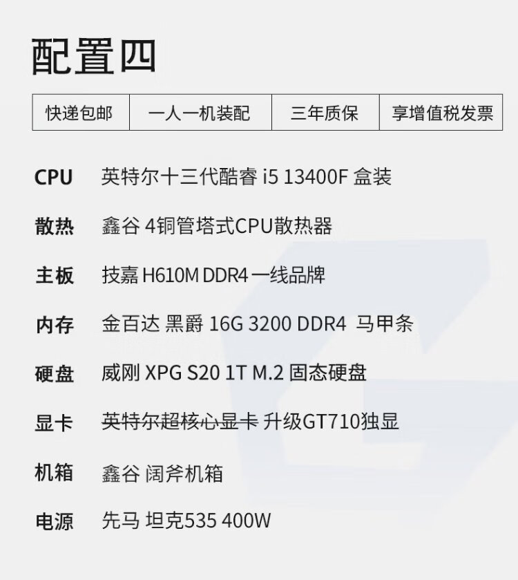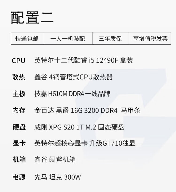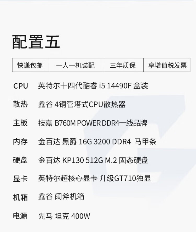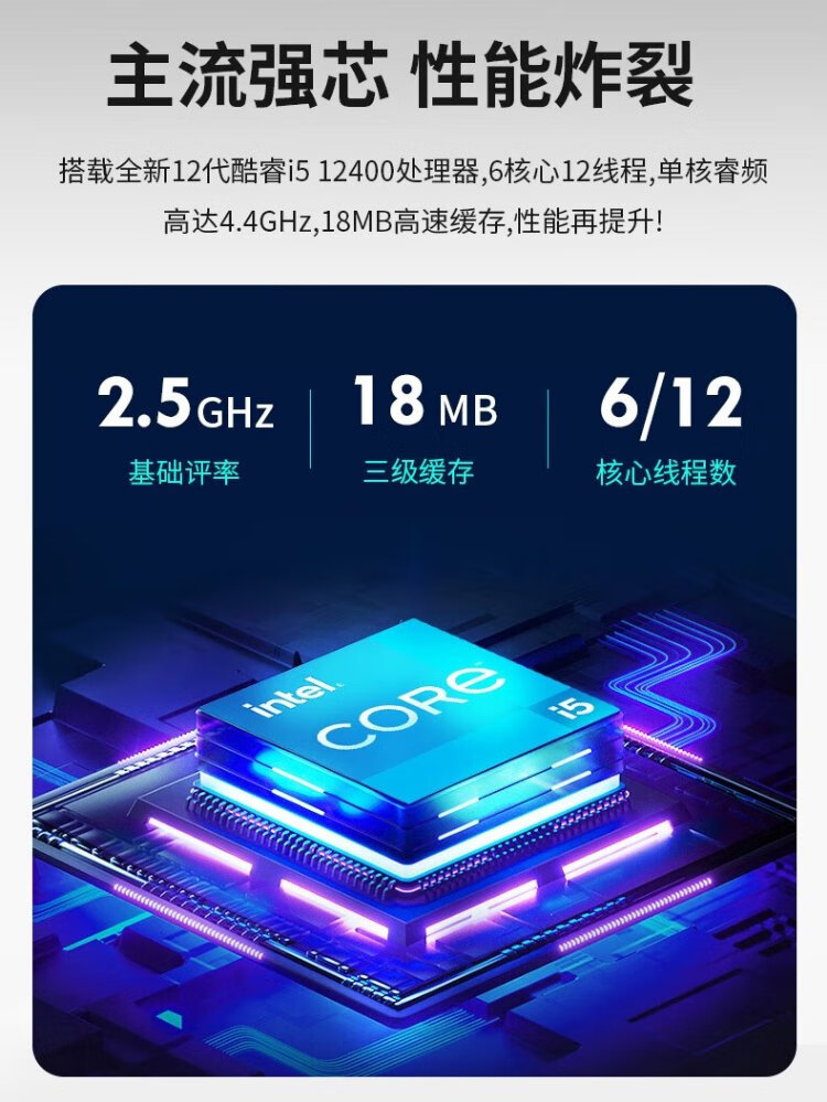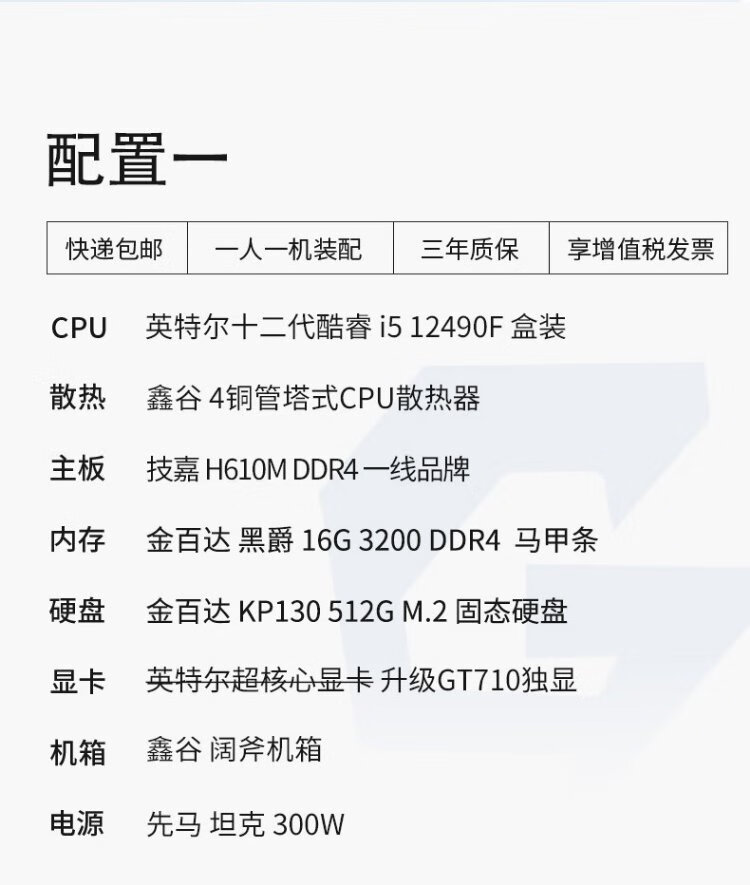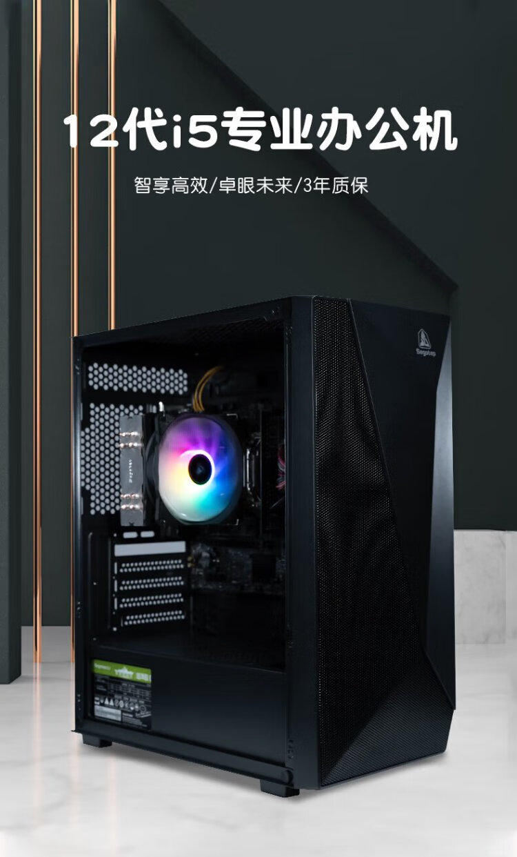 Gigabyte Core i5 12490/13400/225 core display office computer host Home online course financial design Desktop assembly game transition complete machine without graphics card Configuration one i5 12490F+512G host + 23.8-inch H24T1C monitor
