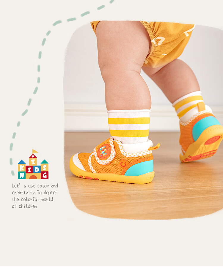 Kids.ing Kedi Star toddler shoes 2025 autumn new 1-section non-slip soft sole breathable shoes for male and female babies and infants Orange 23 suitable for foot length 14.1-14.5cm
