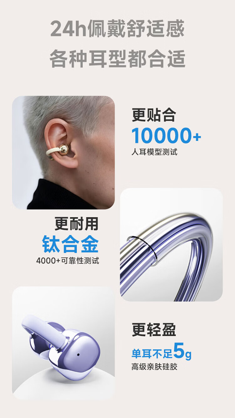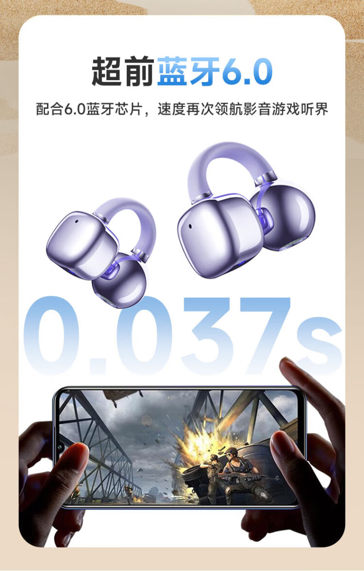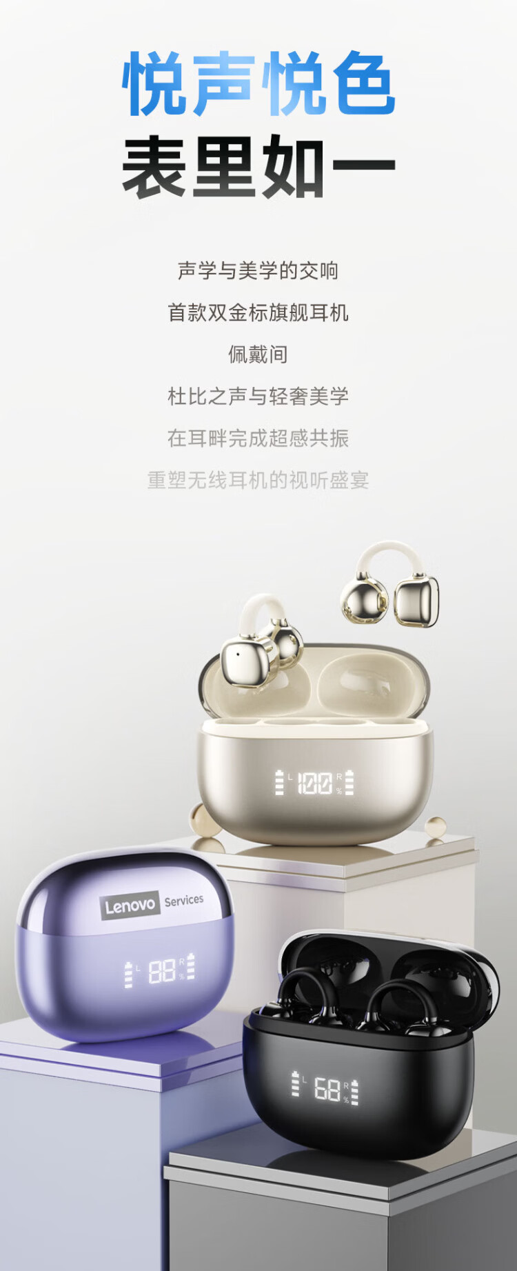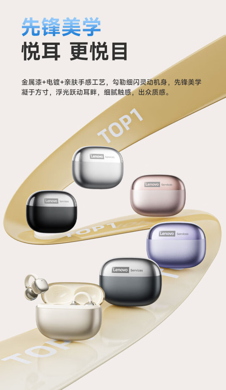 Lenovo's top-of-the-line Bluetooth 6.0 ear-clamp Bluetooth headset, flagship true wireless bone conduction concept, open-type hook-and-loop, non-in-ear call, noise reduction, sports and running, long battery life, champagne rice, top-of-the-line Bluetooth 6.0 + high-definition calls, spatial panoramic sound effect - cloud-sensing comfort to wear