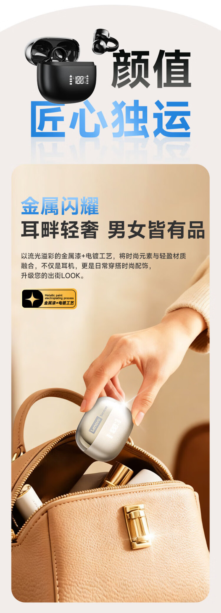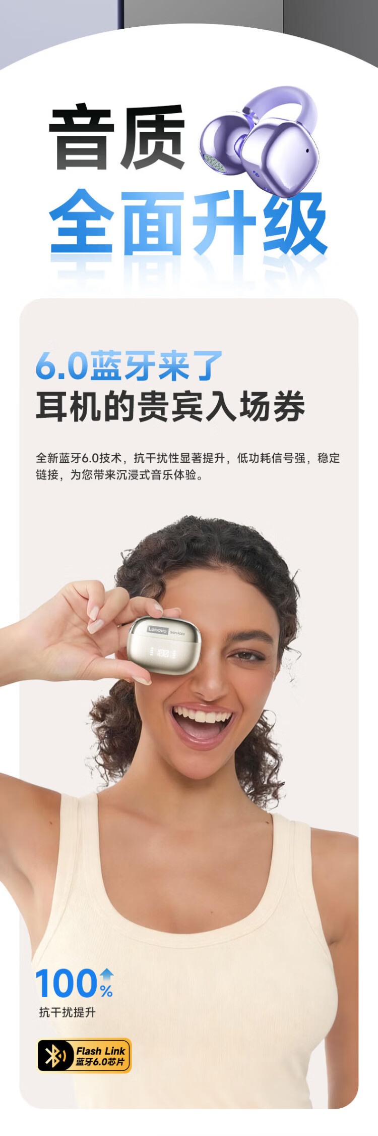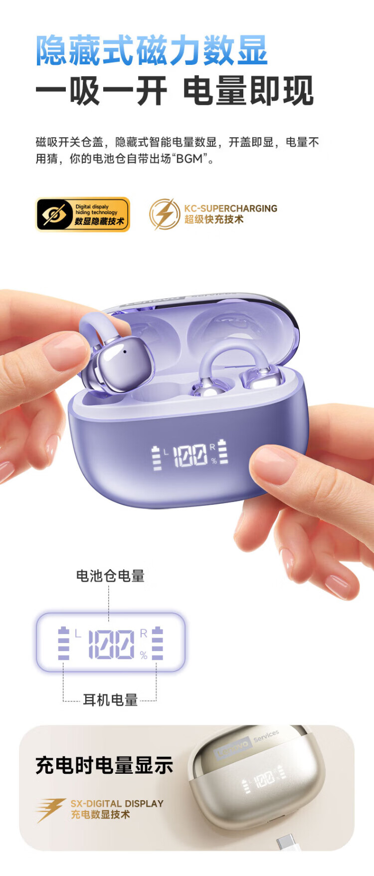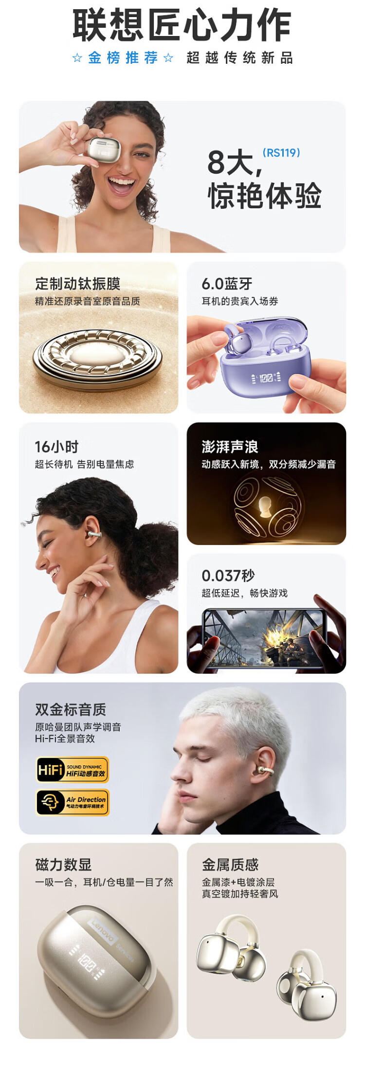 Lenovo's top-of-the-line Bluetooth 6.0 ear-clamp Bluetooth headset, flagship true wireless bone conduction concept, open-type hook-and-loop, non-in-ear call, noise reduction, sports and running, long battery life, champagne rice, top-of-the-line Bluetooth 6.0 + high-definition calls, spatial panoramic sound effect - cloud-sensing comfort to wear