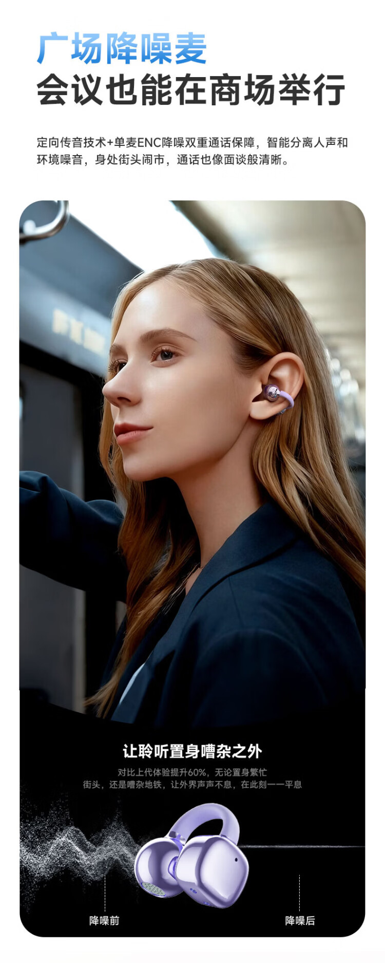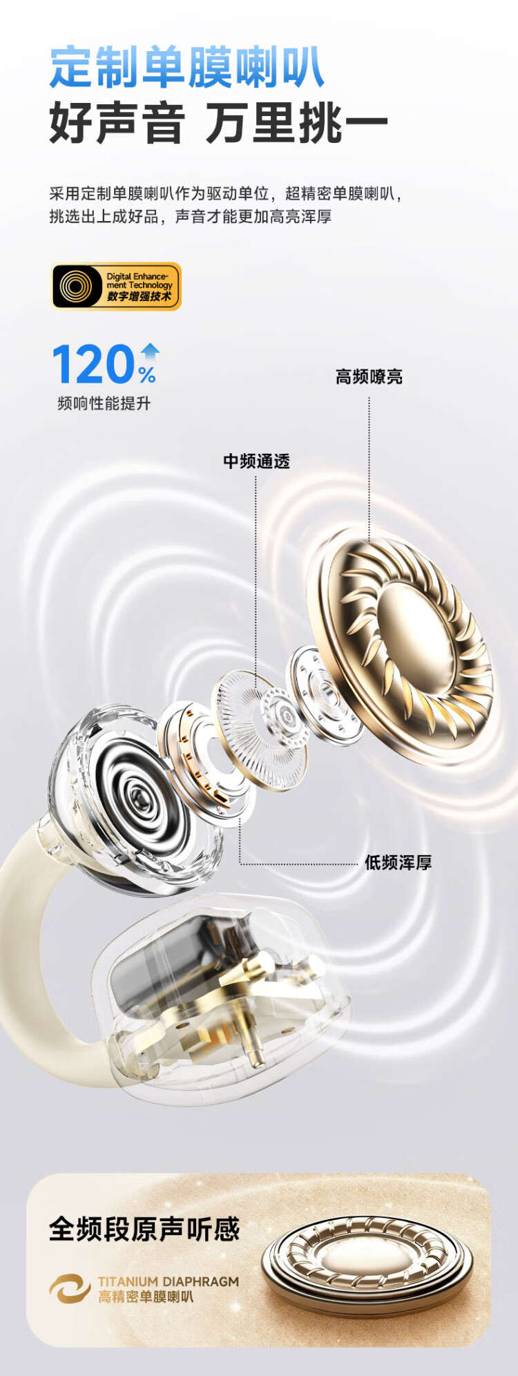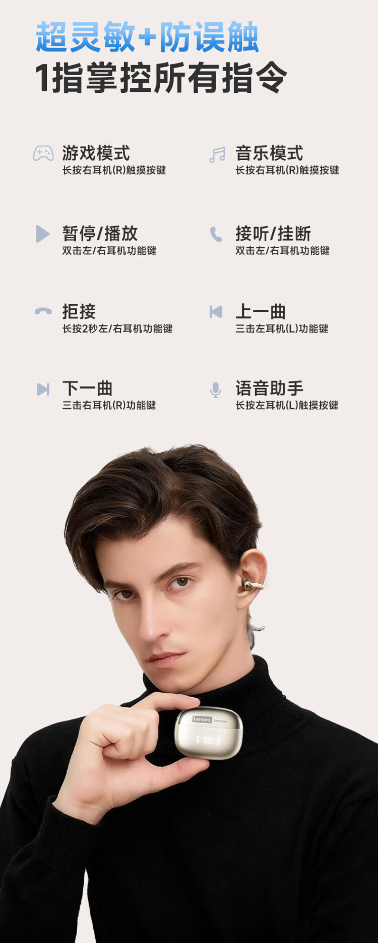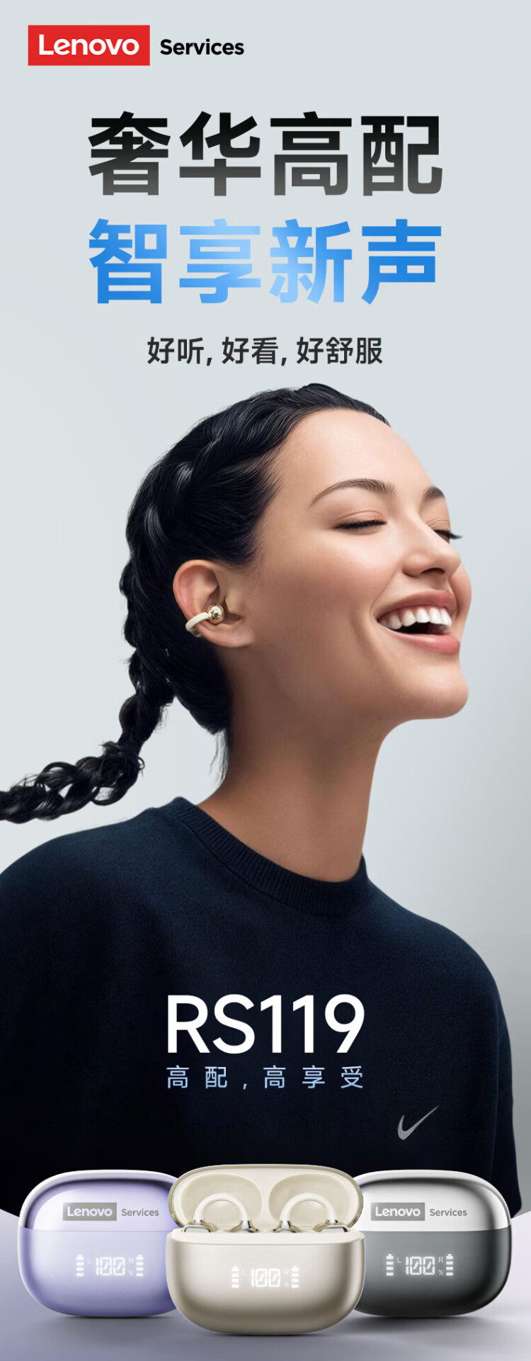 Lenovo's top-of-the-line Bluetooth 6.0 ear-clamp Bluetooth headset, flagship true wireless bone conduction concept, open-type hook-and-loop, non-in-ear call, noise reduction, sports and running, long battery life, champagne rice, top-of-the-line Bluetooth 6.0 + high-definition calls, spatial panoramic sound effect - cloud-sensing comfort to wear