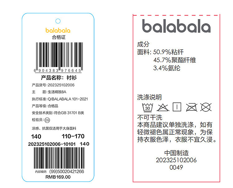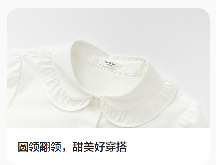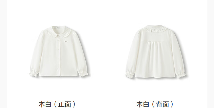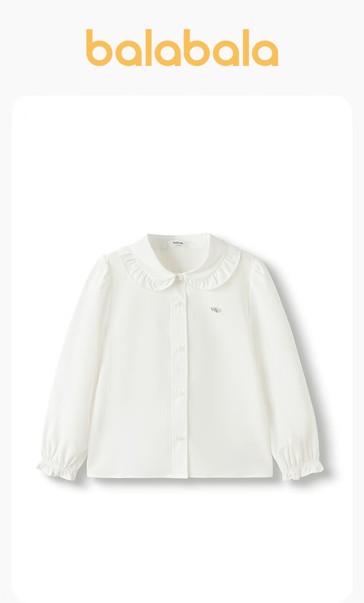 Balabala shopping mall same style girls' shirt children's long-sleeved autumn clothing comfortable cool antibacterial white 10101 130