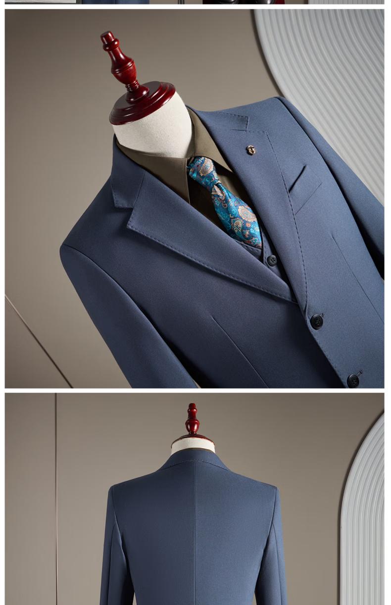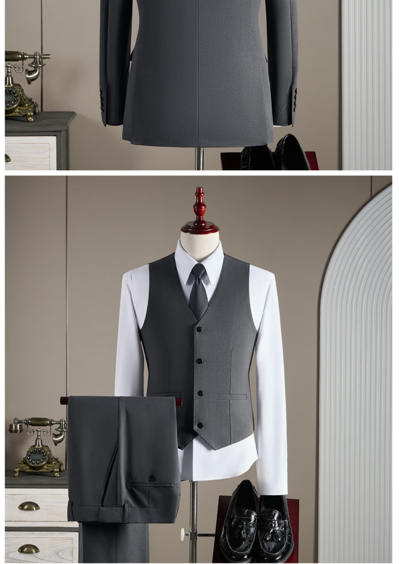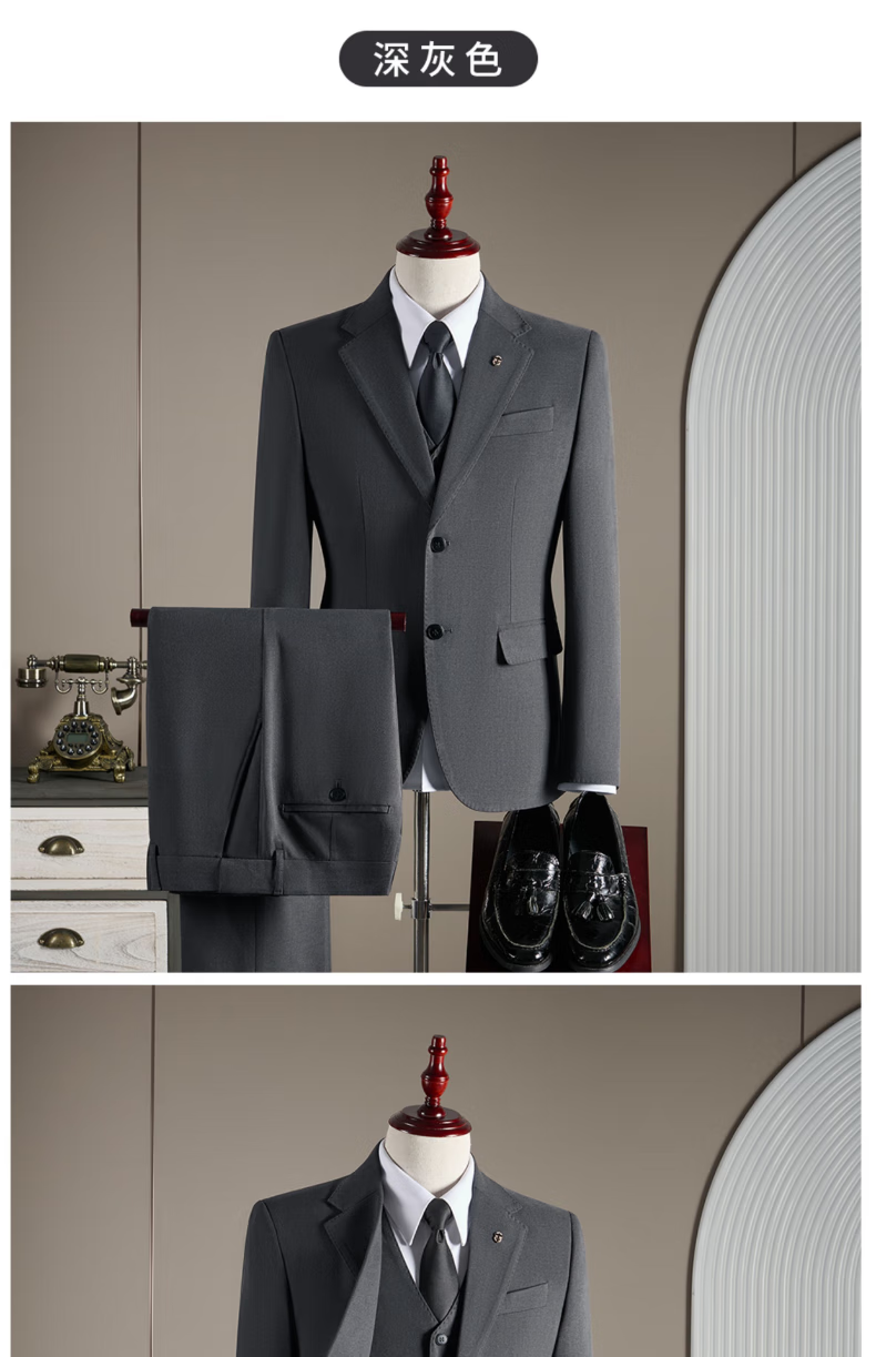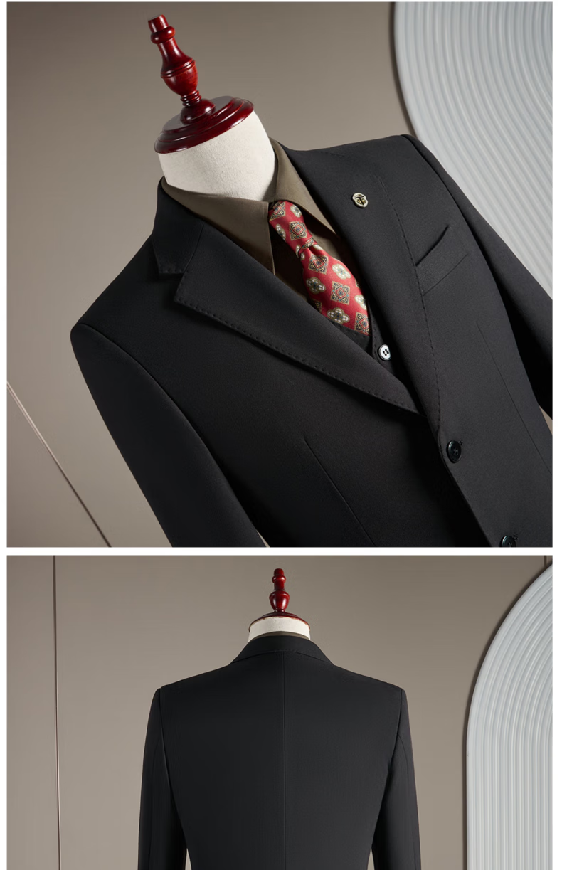 Pierre Cardin haute couture wool suit suit men's wedding dress business professional slim formal groom's suit British style handsome black suit + trousers + vest 3XL
