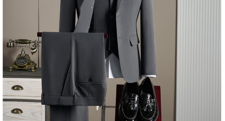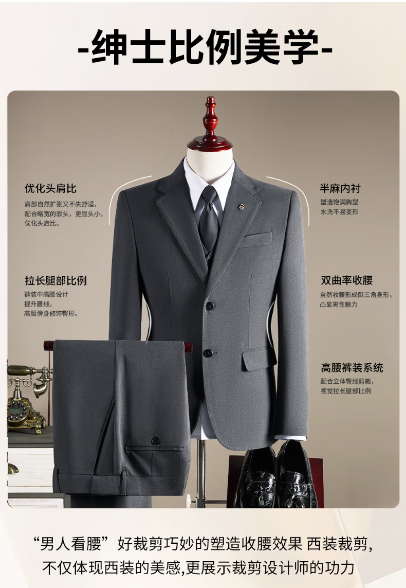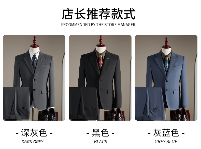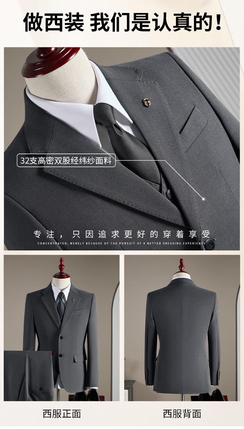 Pierre Cardin haute couture wool suit suit men's wedding dress business professional slim formal groom's suit British style handsome black suit + trousers + vest 3XL