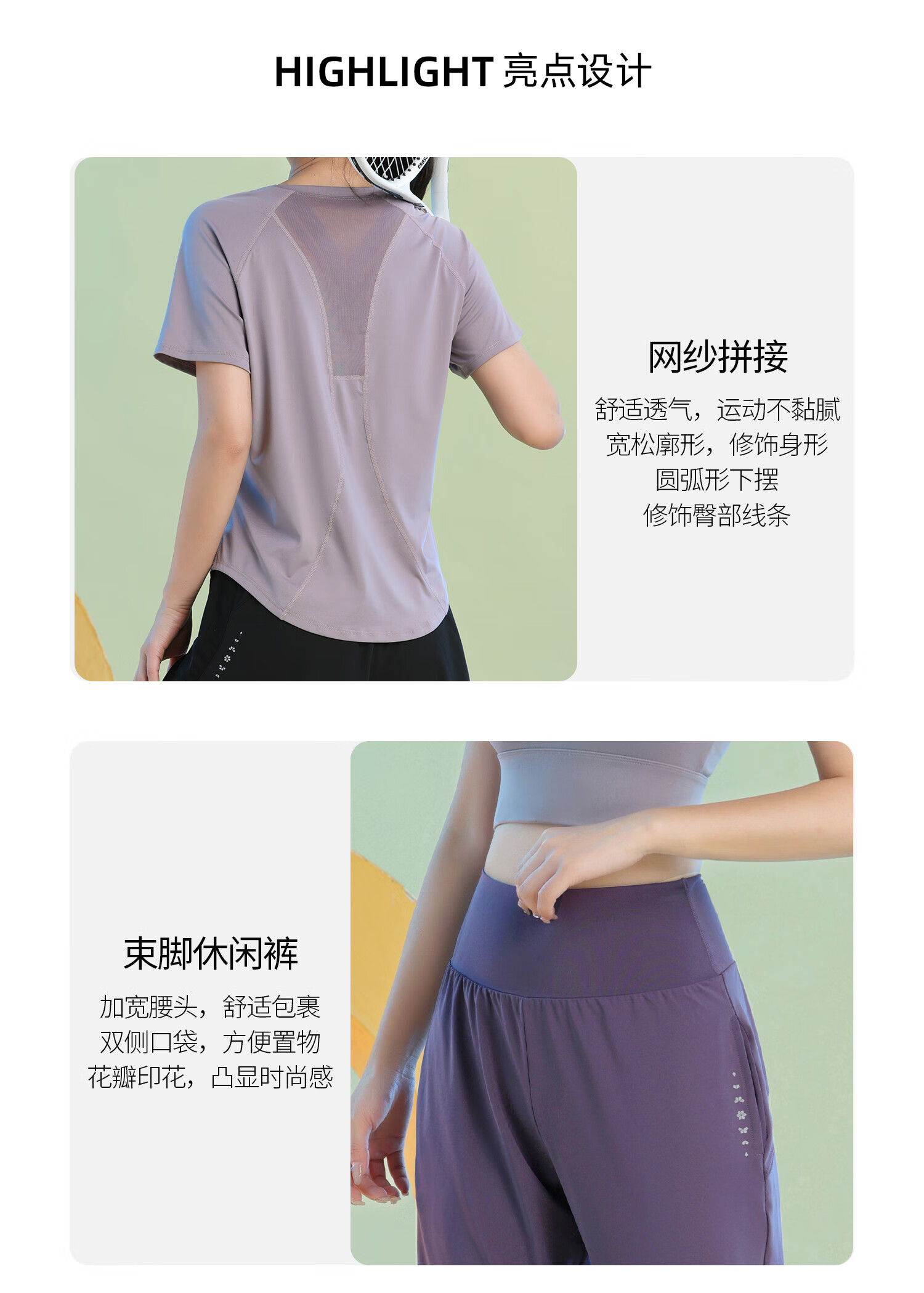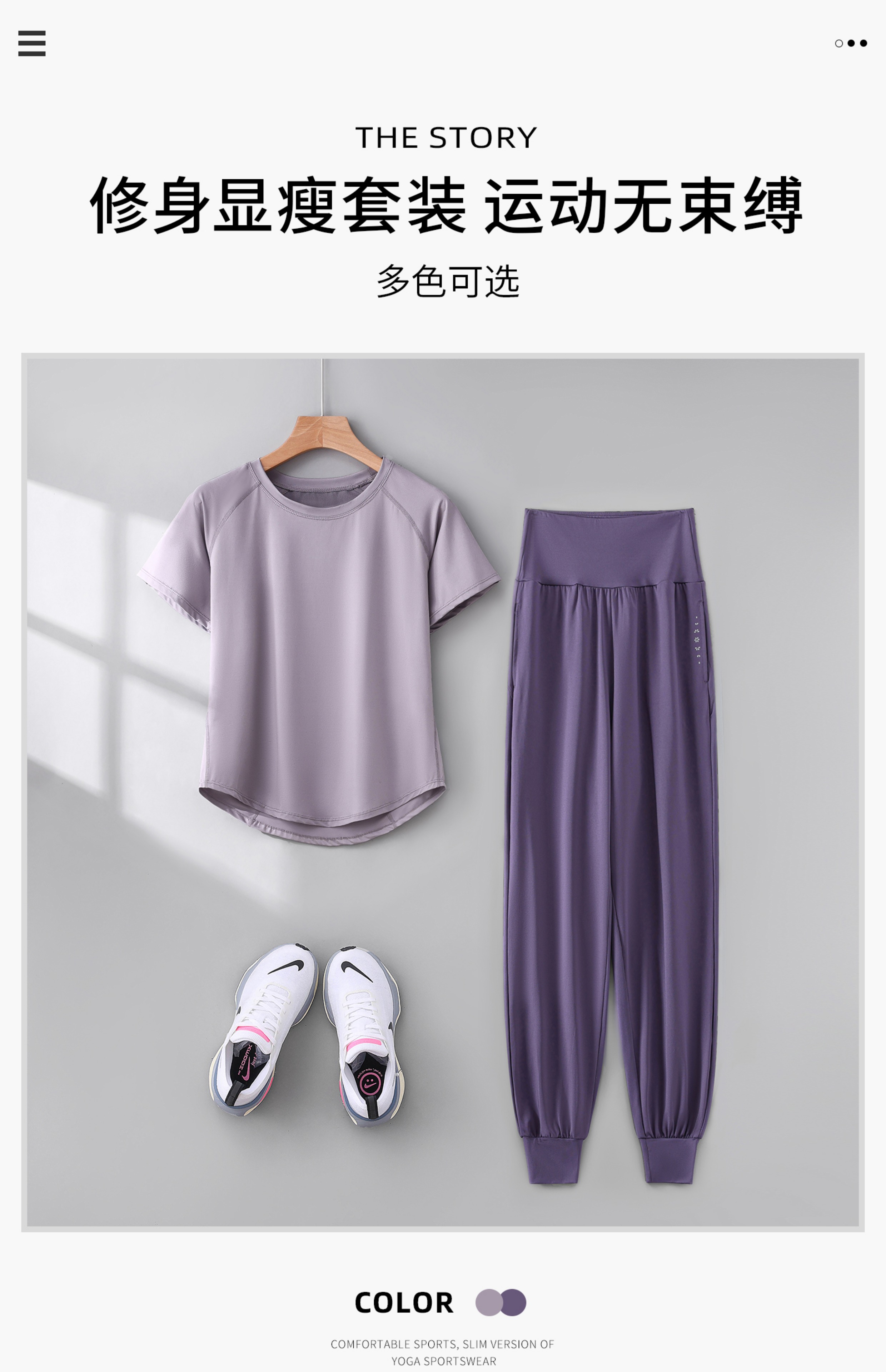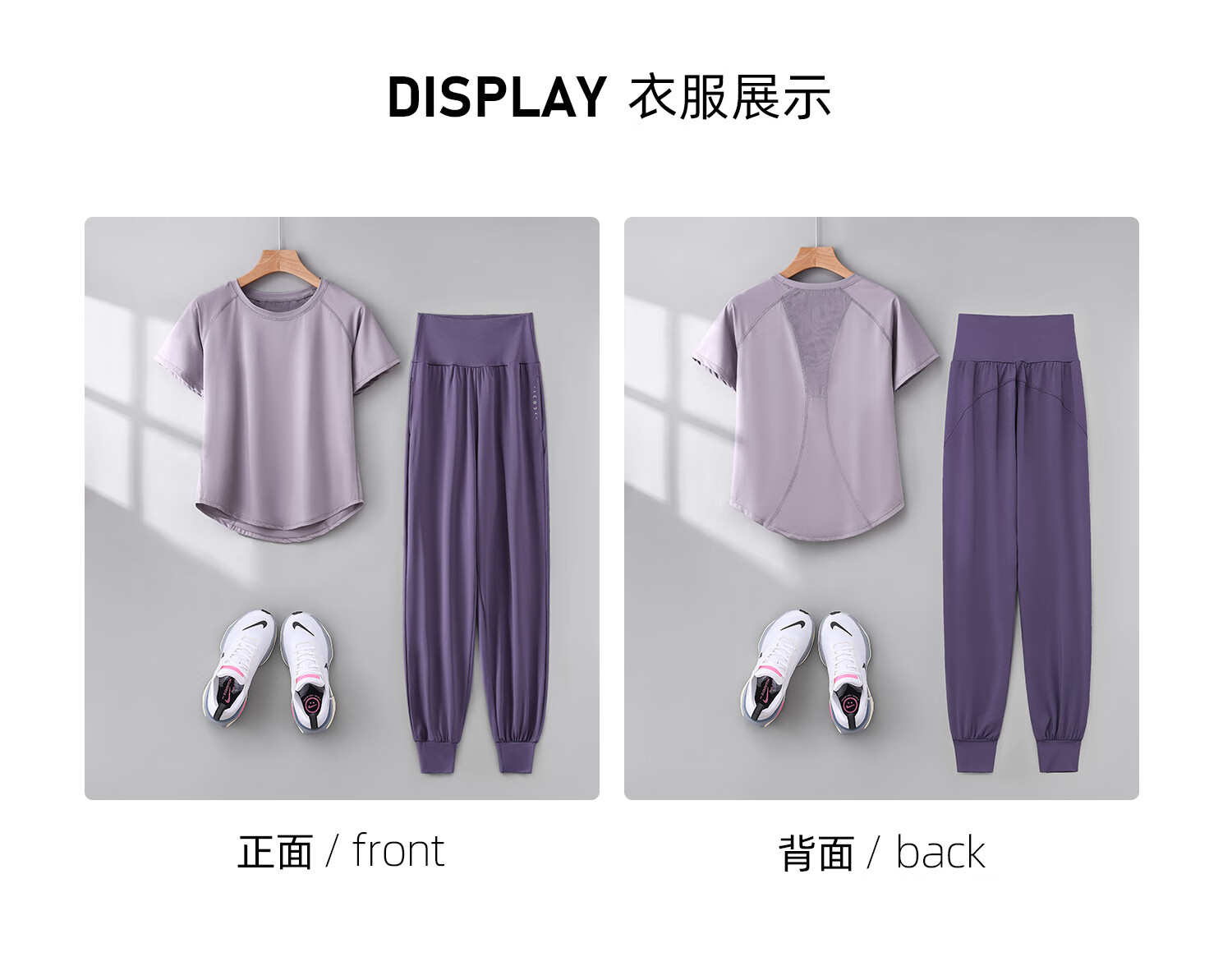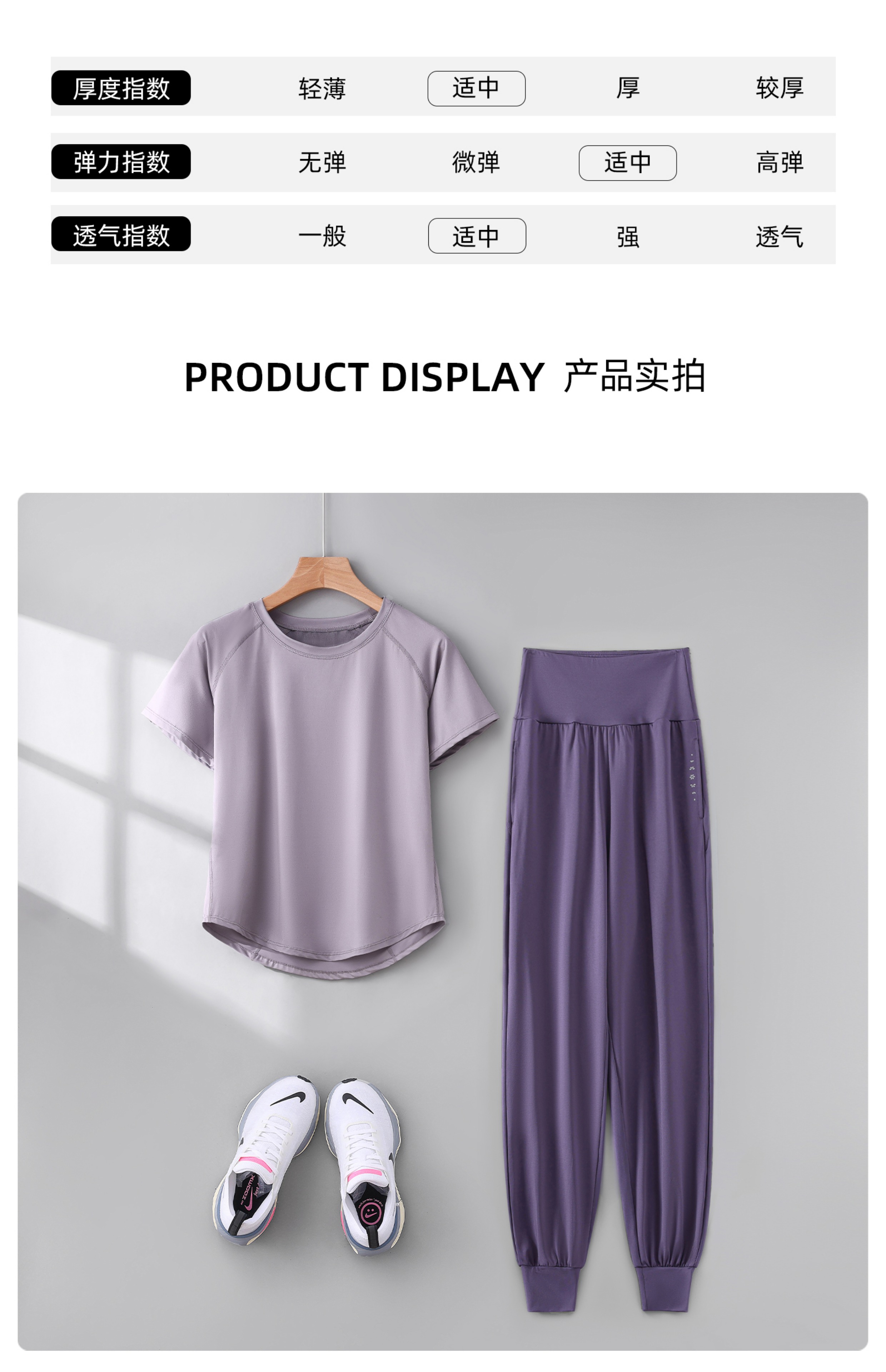Phigeer yoga clothing suit for women 2025 summer new style quick-drying short-sleeved running fitness clothing high-end Pilates training clothing purple two-piece set (purple pants) M