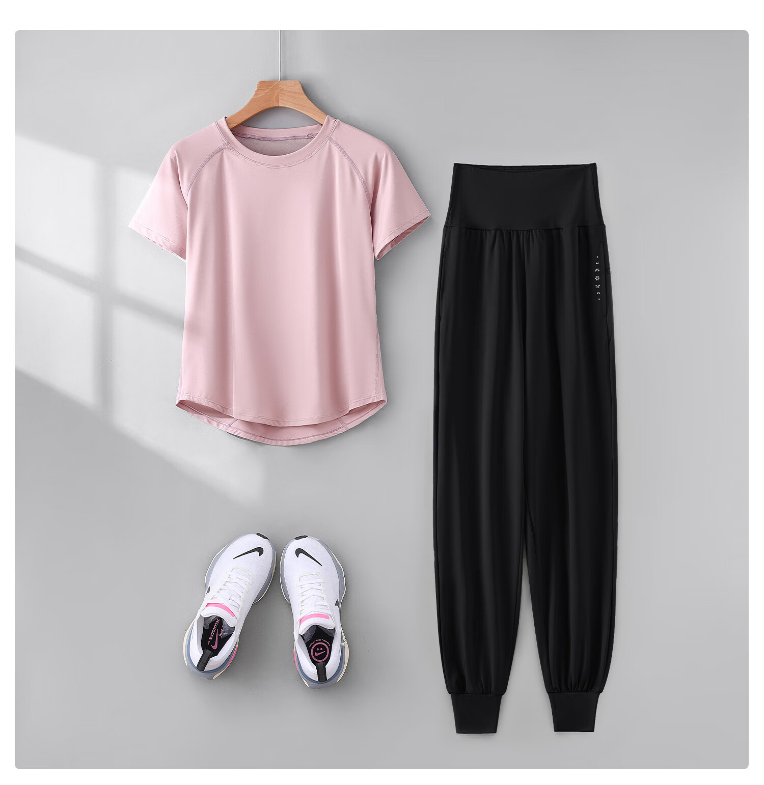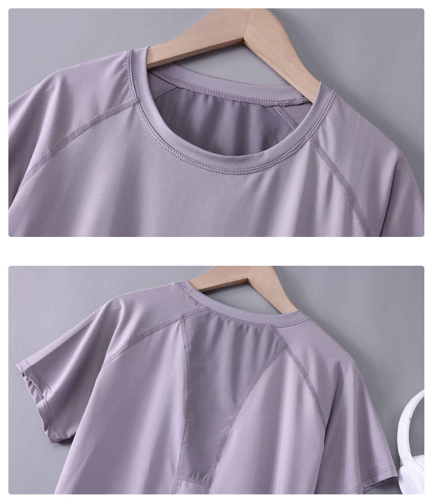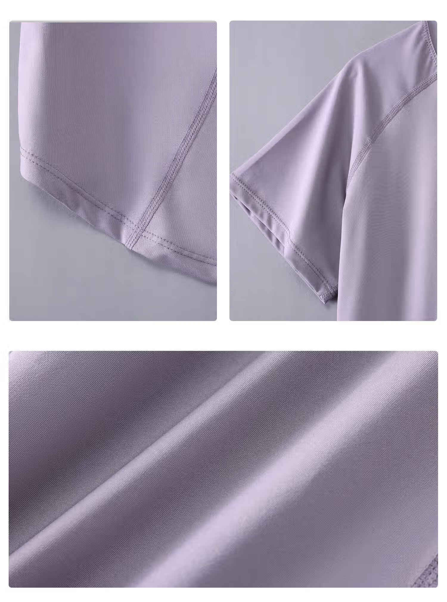 Phigeer yoga clothing suit for women 2025 summer new style quick-drying short-sleeved running fitness clothing high-end Pilates training clothing purple two-piece set (purple pants) M