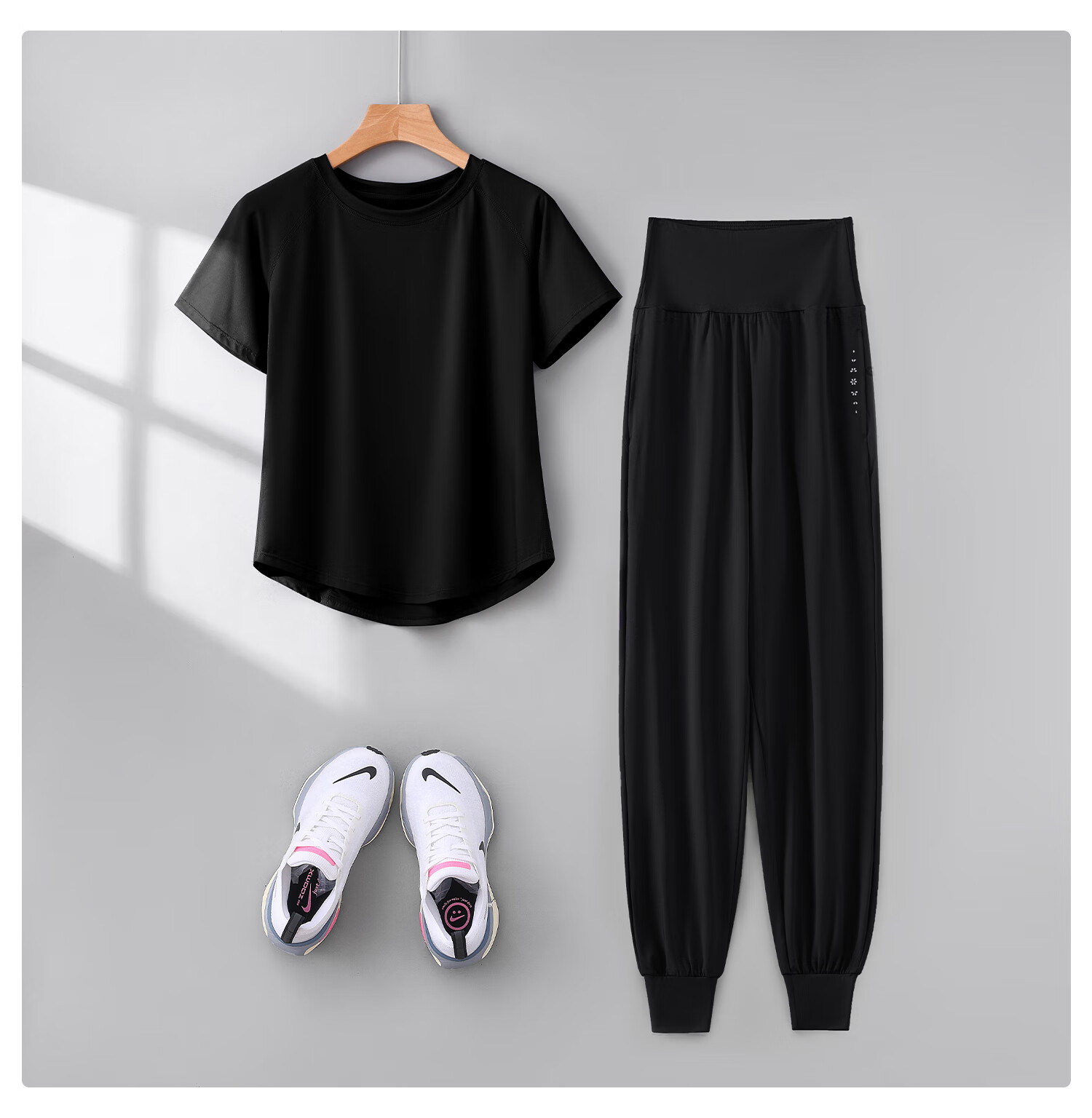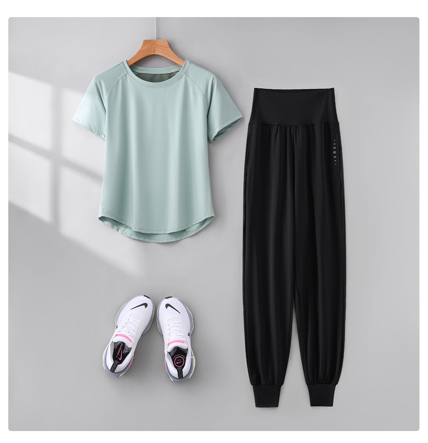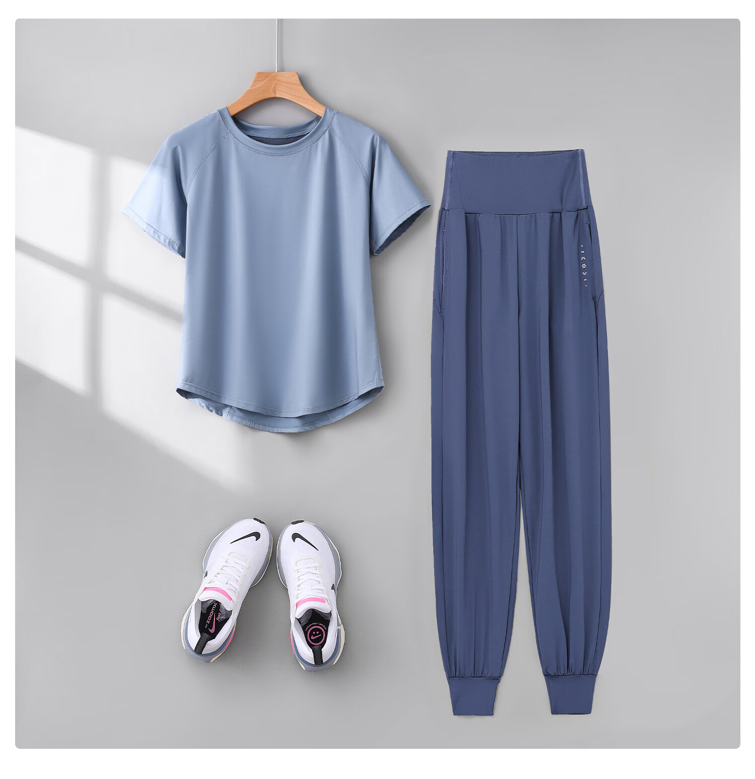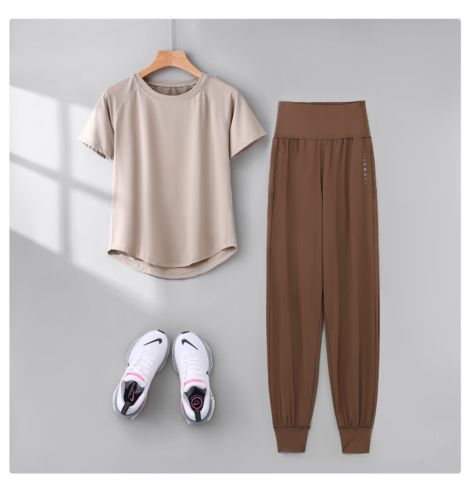 Phigeer yoga clothing suit for women 2025 summer new style quick-drying short-sleeved running fitness clothing high-end Pilates training clothing purple two-piece set (purple pants) M