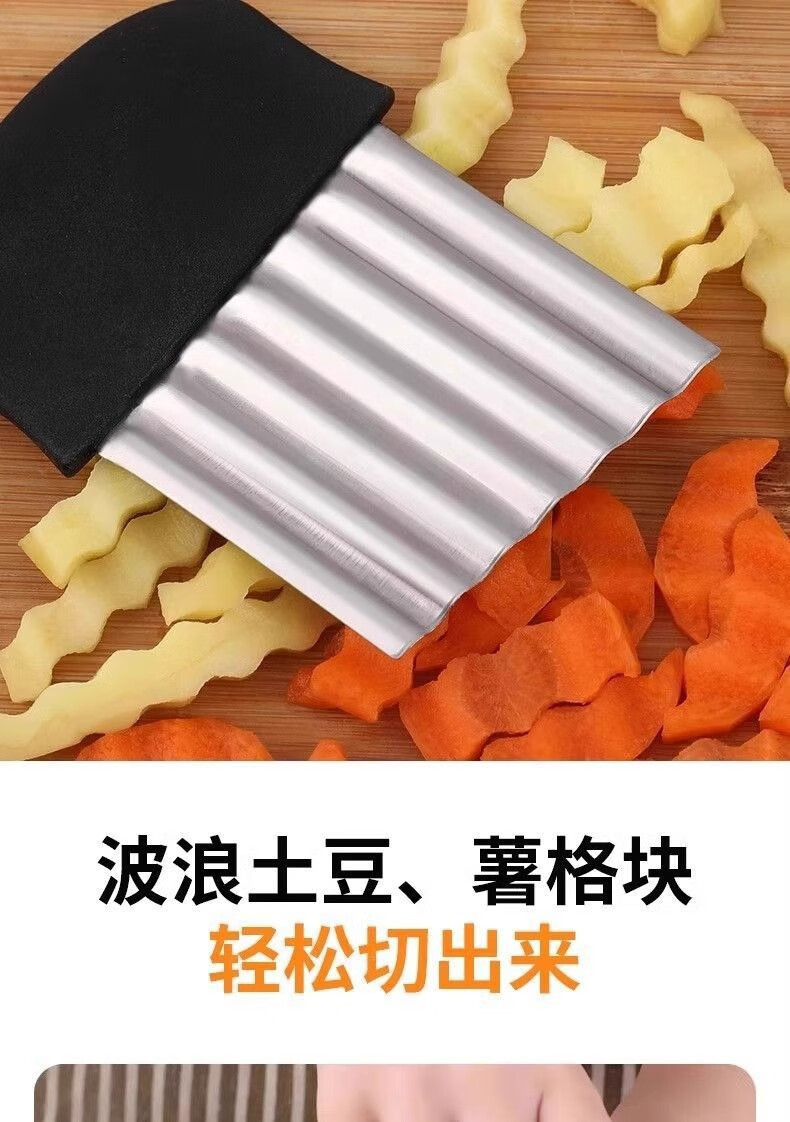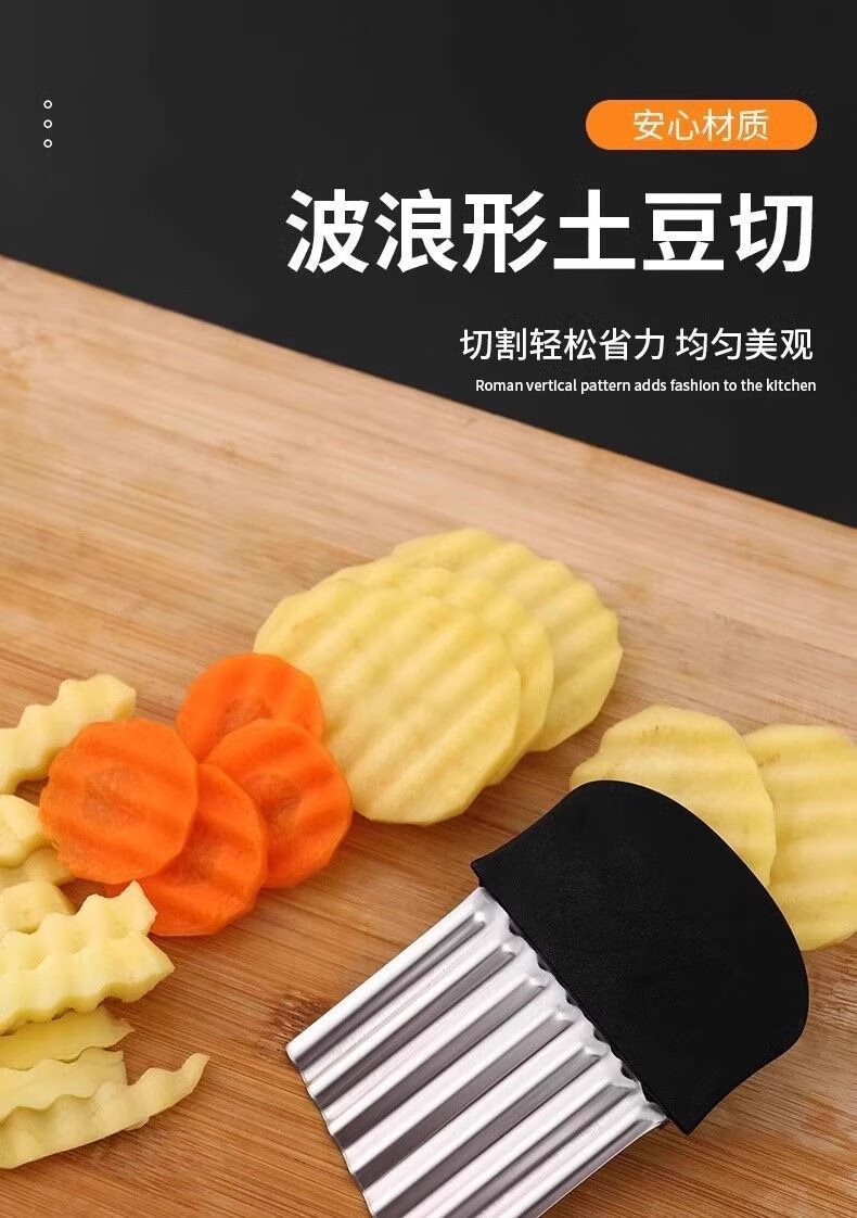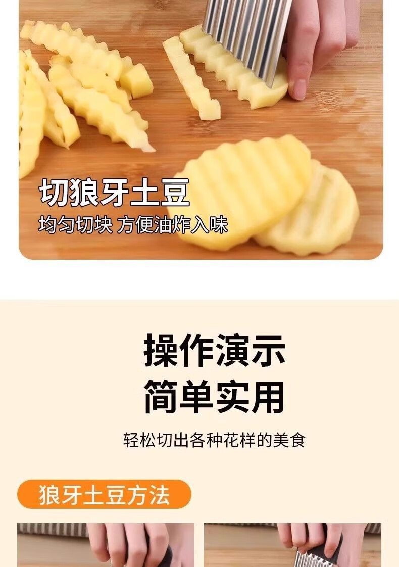 Corrugated Knife Wolf Tooth Potato Knife Cutting French Fries Kitchen Gadgets Stainless Steel Wave Knife Wolf Tooth Potato Slicer Handleless Potato Cutting 2 Pack