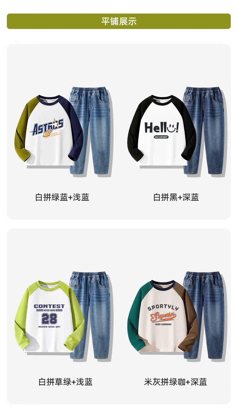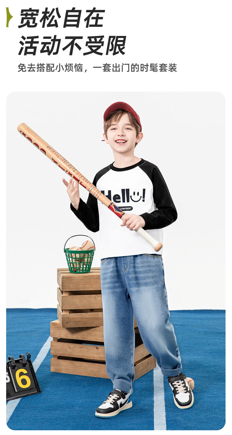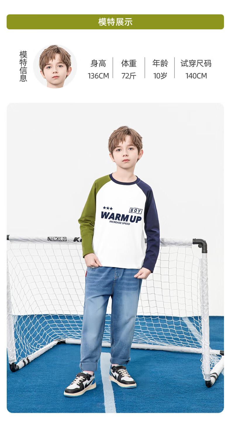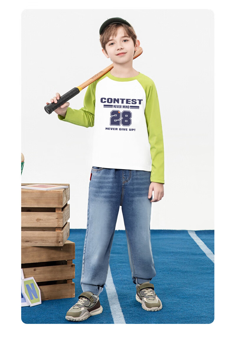 Baleno children's clothing children's T-shirt boys long-sleeved spring and autumn 2026 new medium and large children's bottoming shirt pure cotton color matching clothes white with green and blue BNL Basketball Fire 160