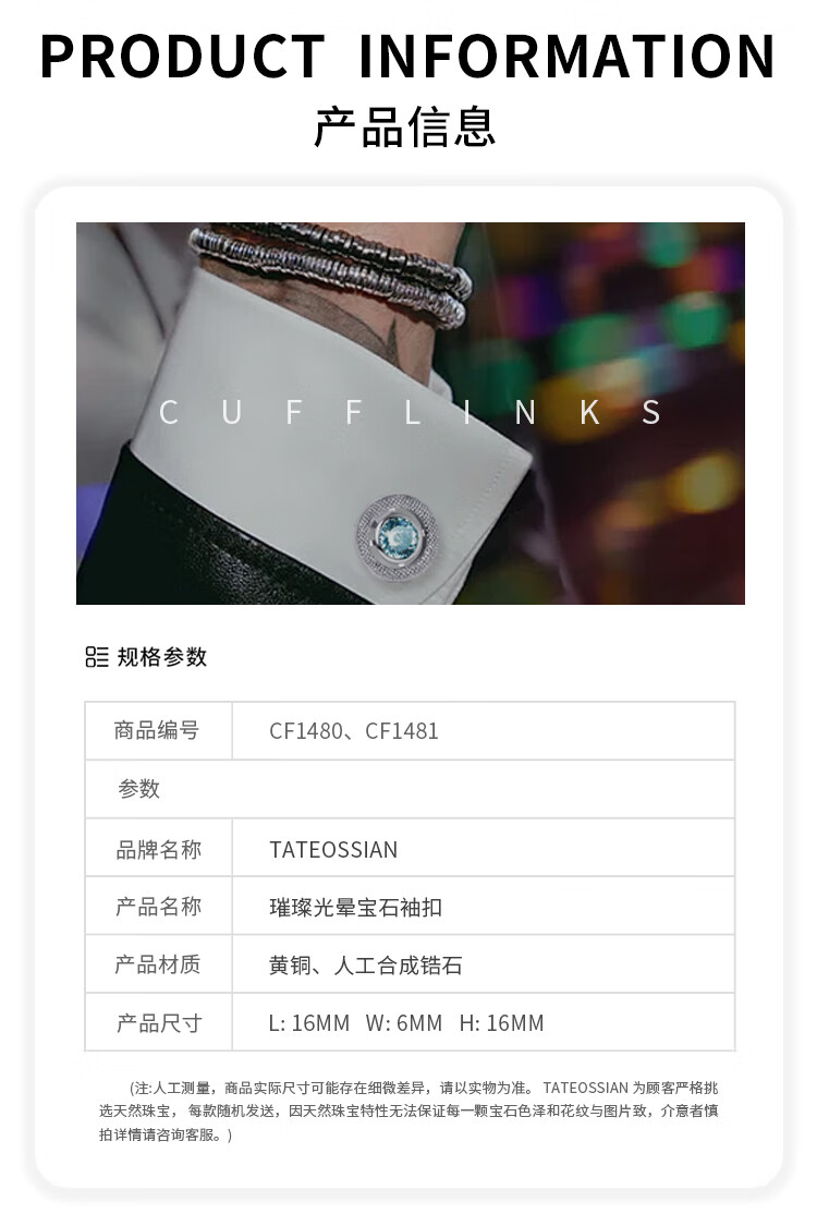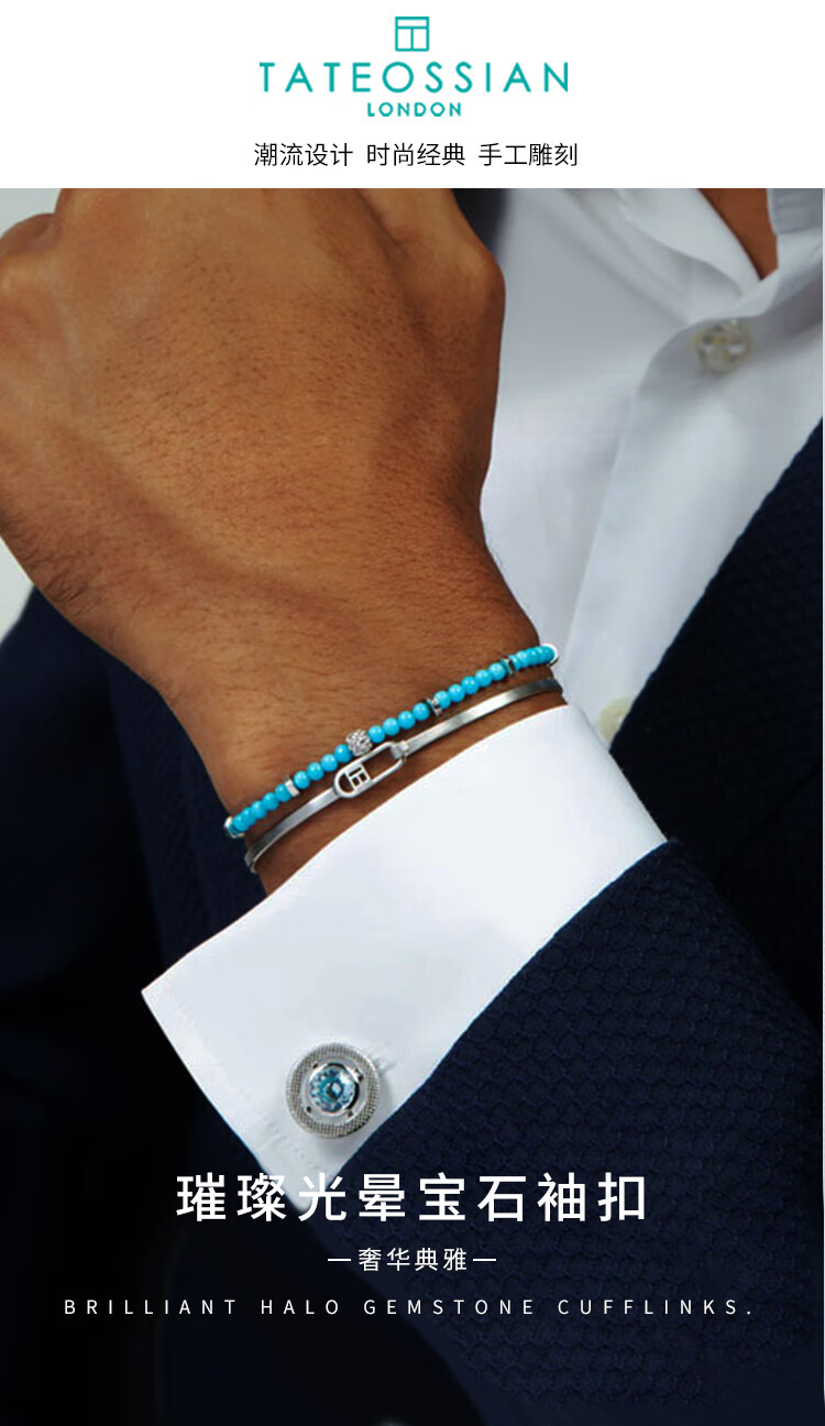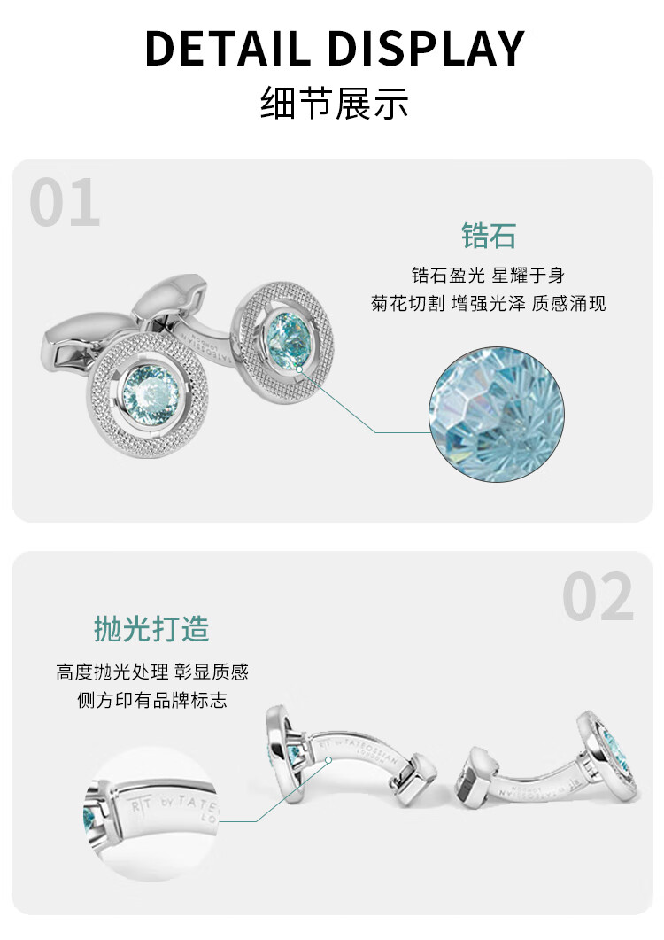 TATEOSSIAN British tateossianRT men's French cufflinks round zirconium diamond gemstone cuff buttons for boys gifts in stock lavender purple square cufflinks