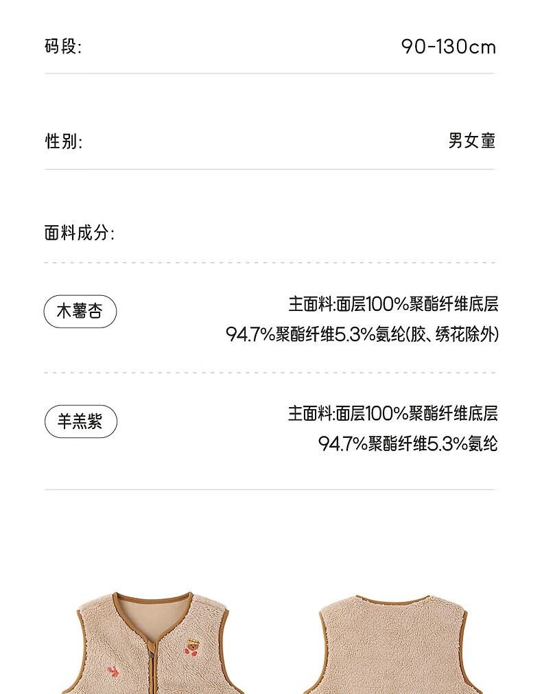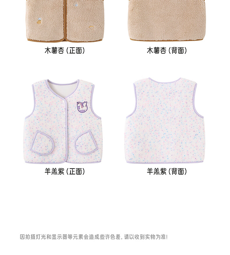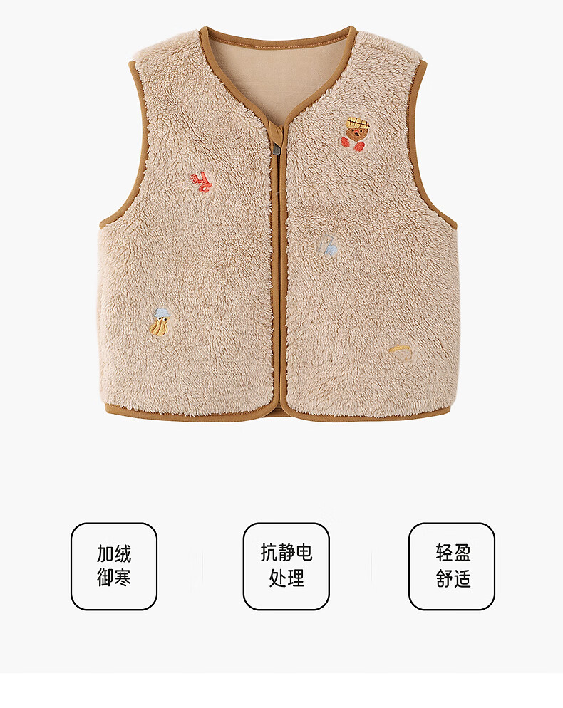 Ying's children's vest autumn and winter warm fleece vest for boys and girls new outer vest jacket for middle and large children Cassava Apricot 110 cm