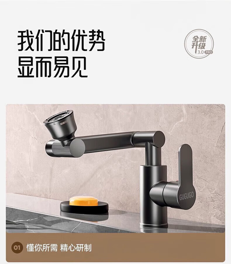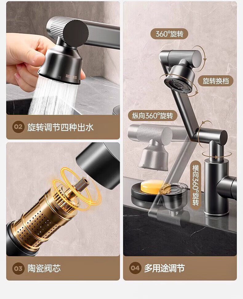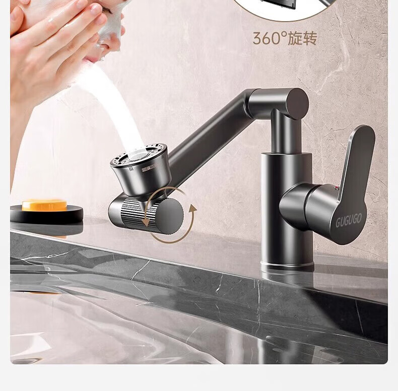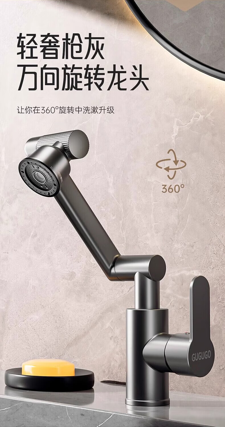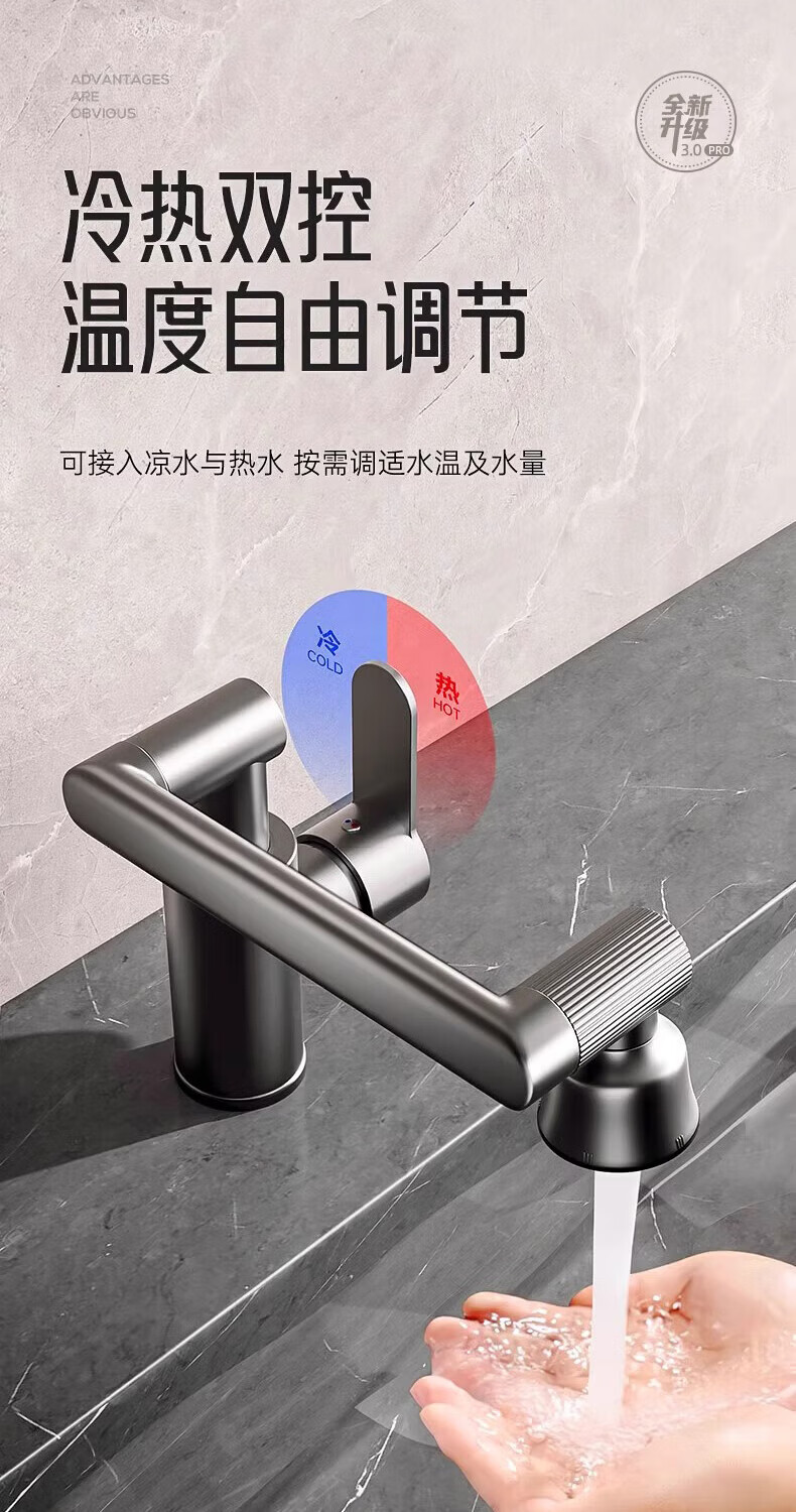 Jomoo new German faucet wash basin hot and cold water heater two-in-one bathroom wash basin basin hot and cold splash-proof faucet cat basin hot and cold full copper main body faucet gun gray 4D universal rotation丨free 80cm hot and cold water inlet pipe*2