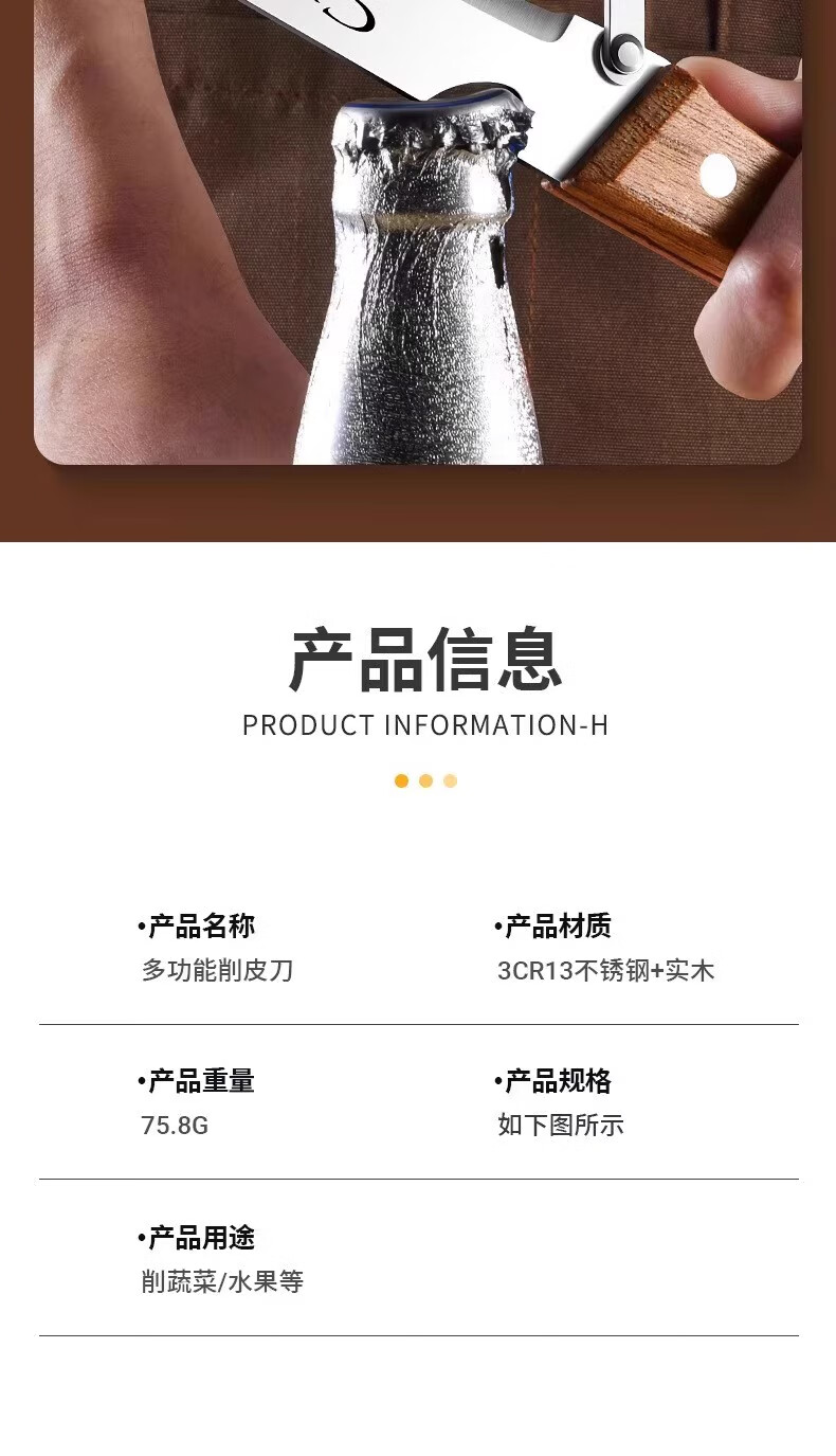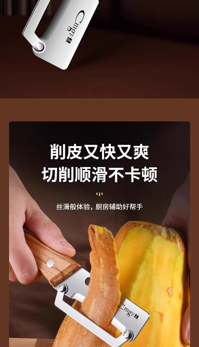 Ying Tiao German stainless steel peeling knife kitchen special peeling artifact commercial peeling pumpkin peel lettuce multifunctional peeling knife one set stainless steel wooden handle peeling knife