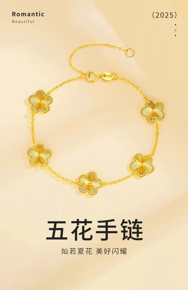 CHINA GOLD 18K Gold Five-Flower Clover Bracelet for Women 2025 New K Gold Bracelet Birthday Wedding Gift for Girlfriend and Wife 18K Gold Five-Flower Bracelet - About 1.4g Engraving/Greeting Card