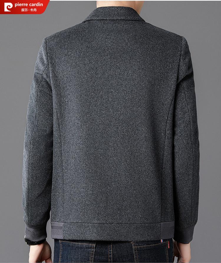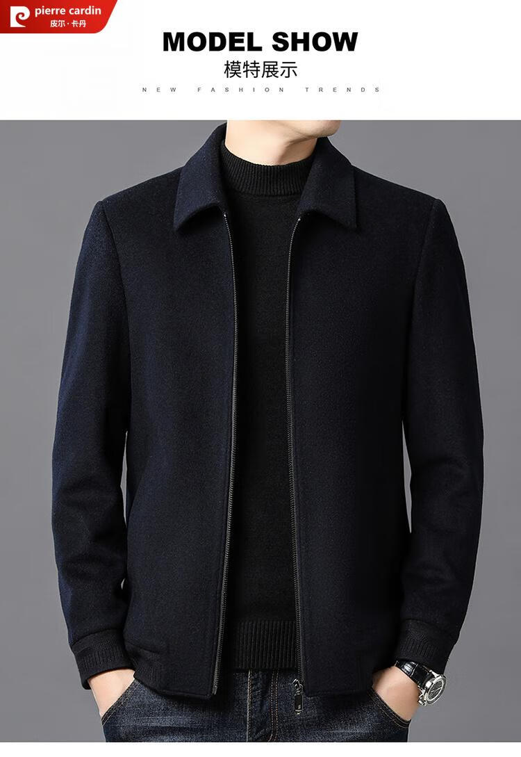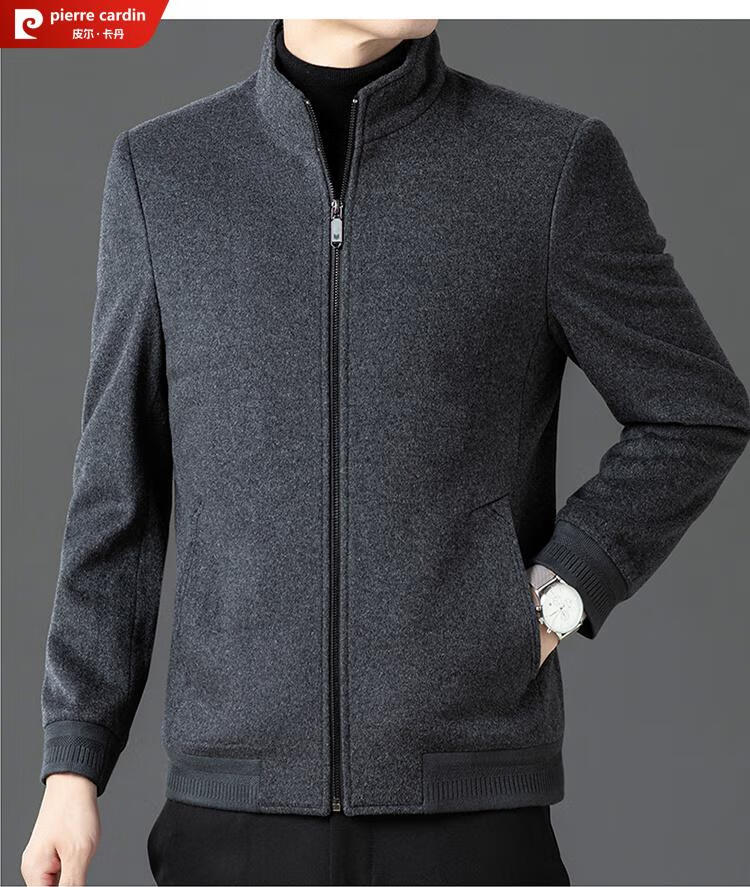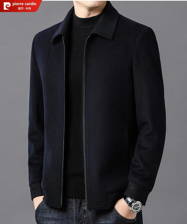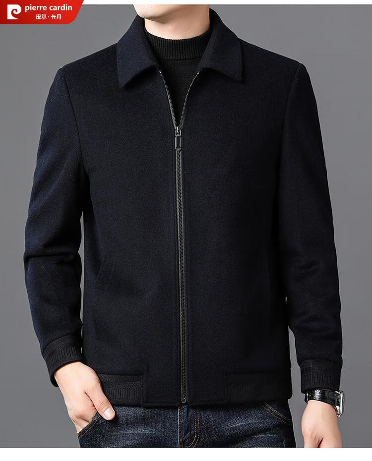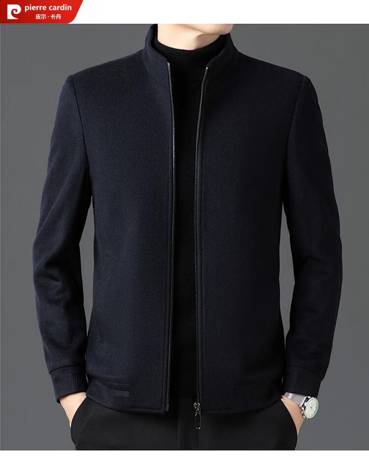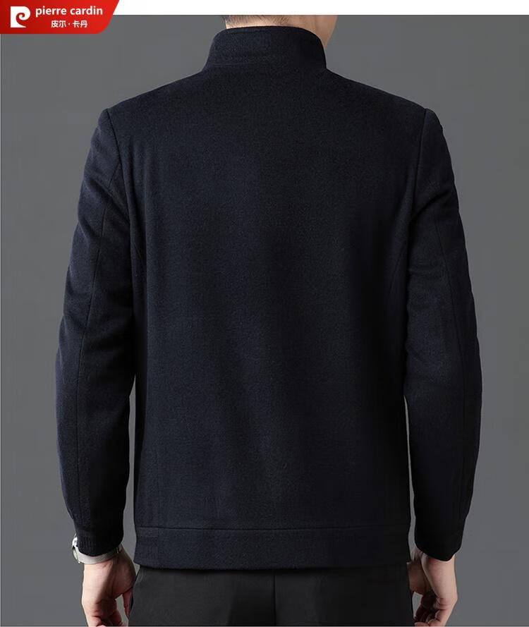 Pierre Cardin 100% pure wool jacket men's coat autumn and winter new high-end business casual daddy woolen jacket men's navy stand-up collar M 170
