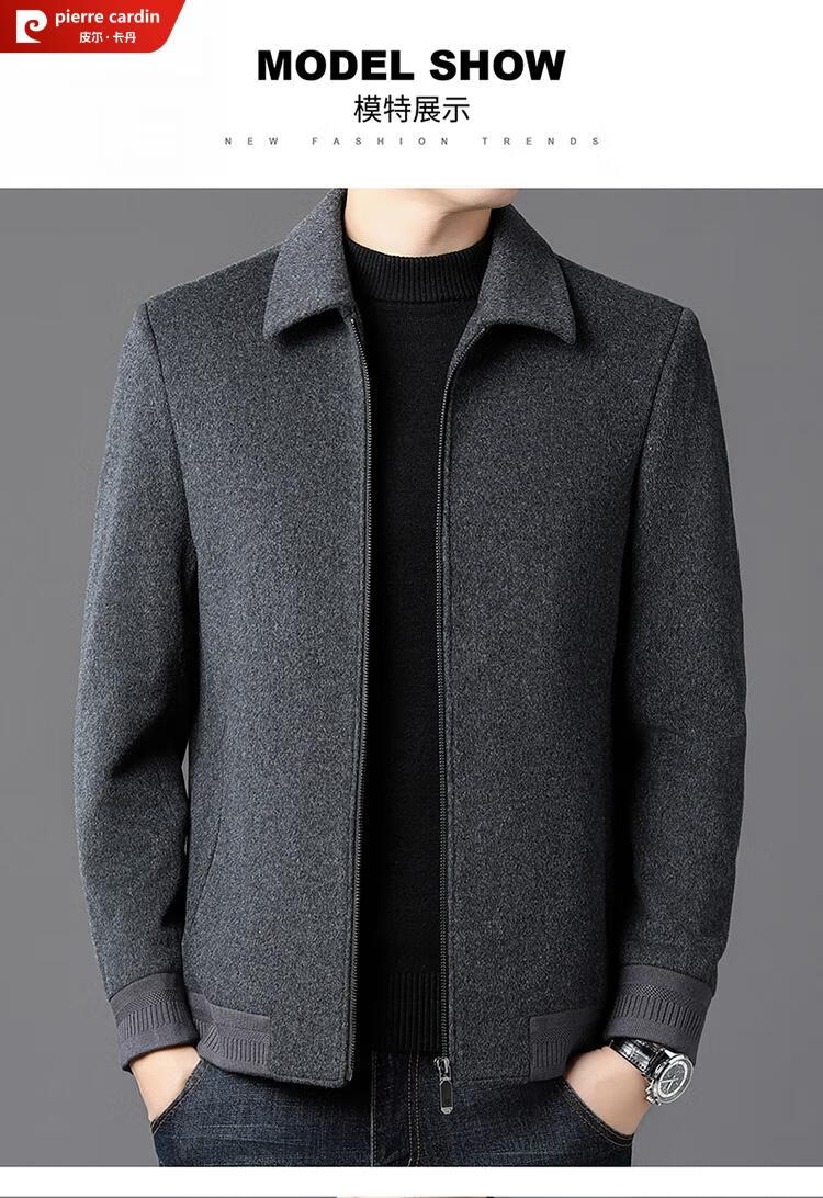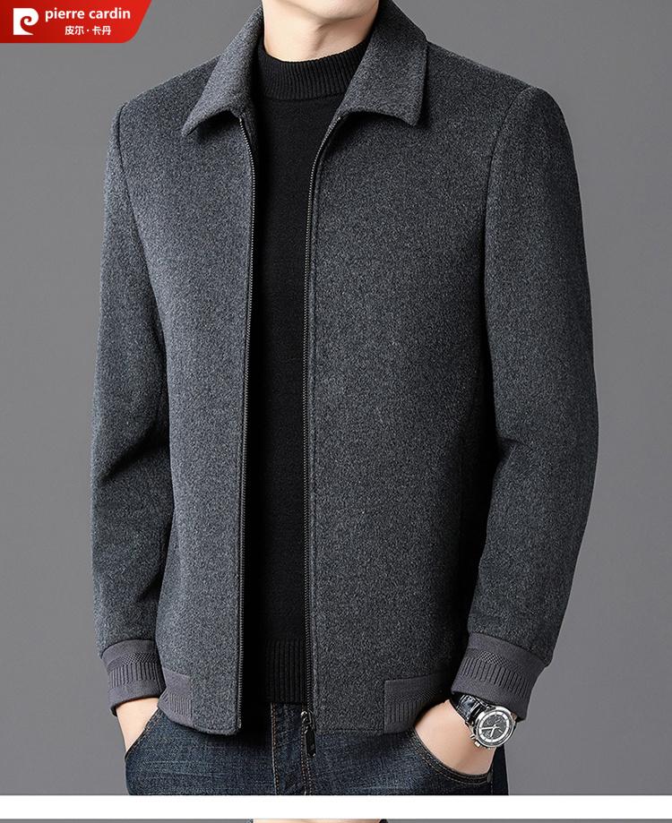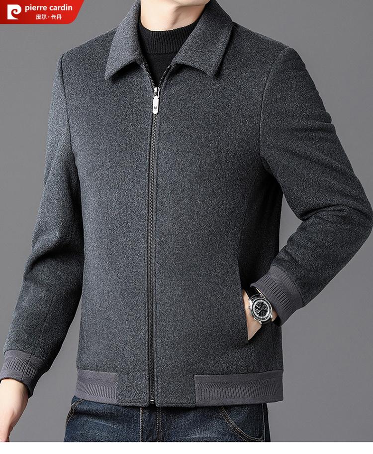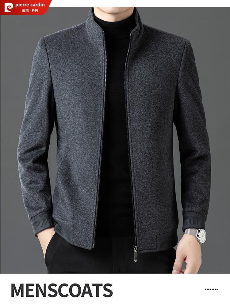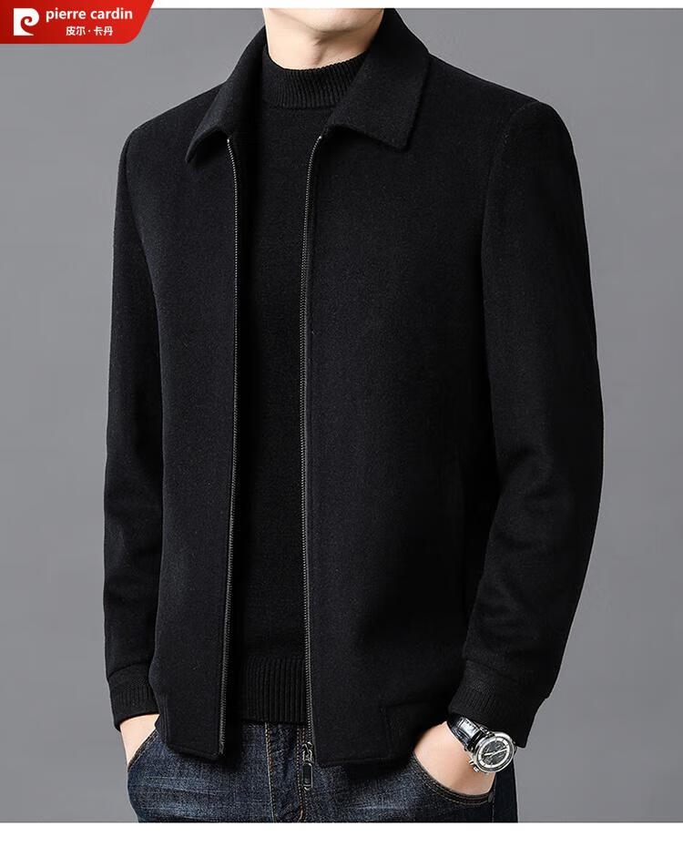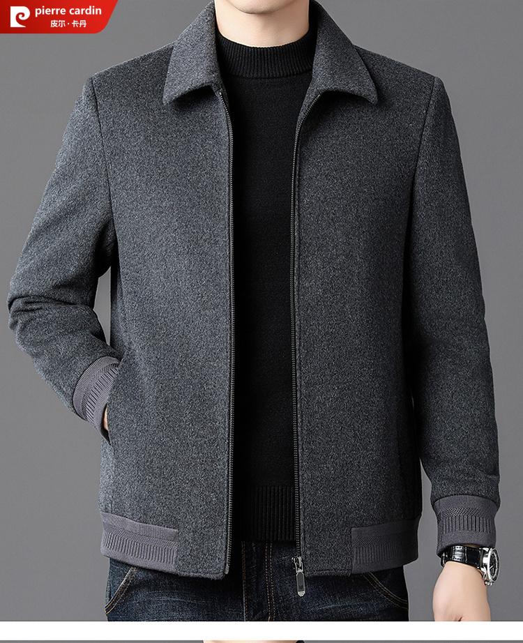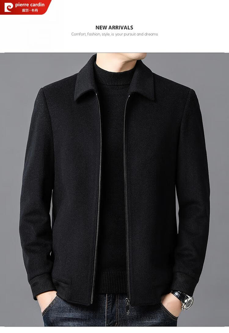 Pierre Cardin 100% pure wool jacket men's coat autumn and winter new high-end business casual daddy woolen jacket men's navy stand-up collar M 170