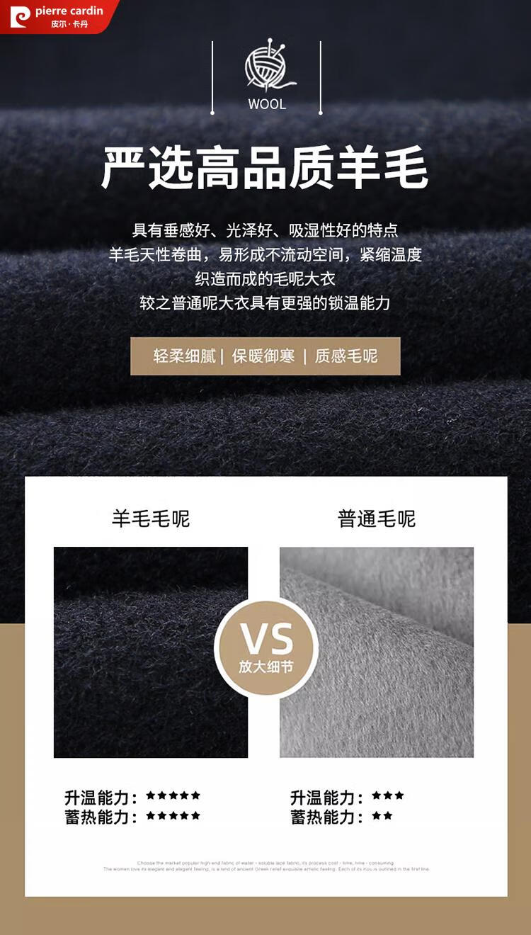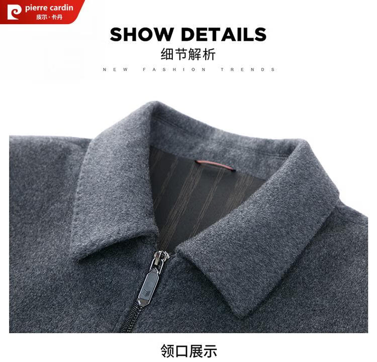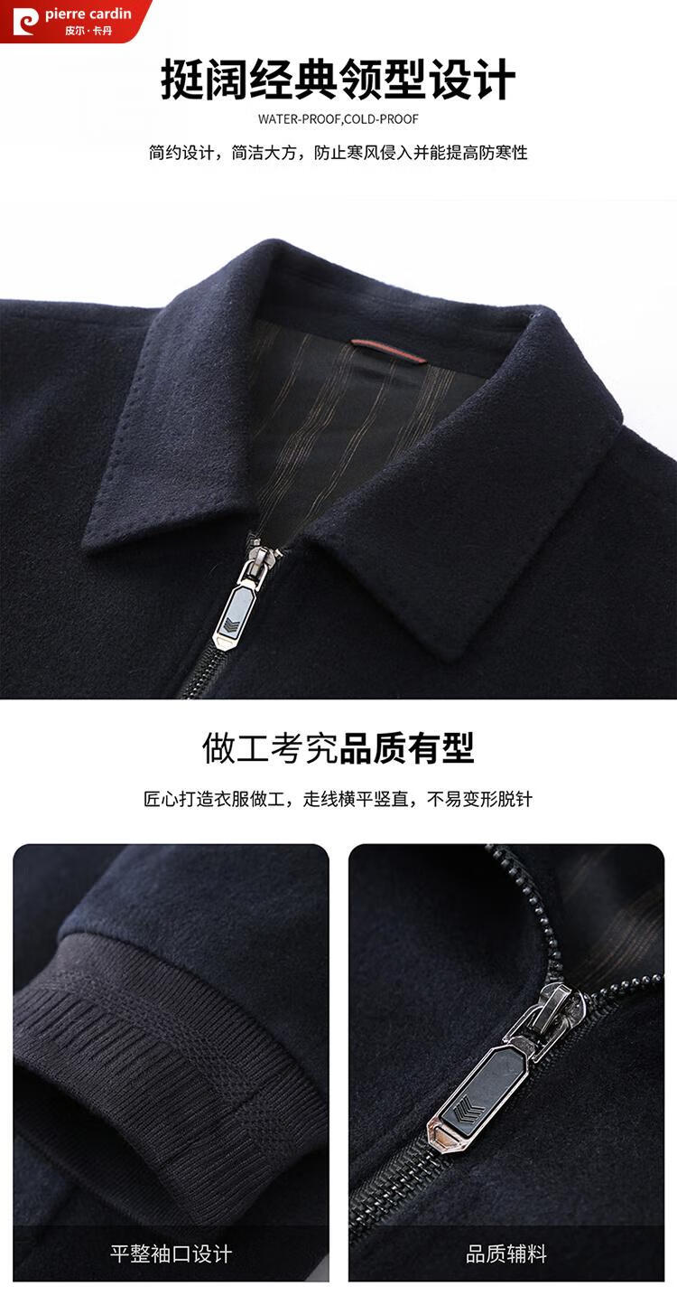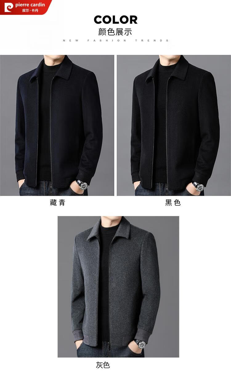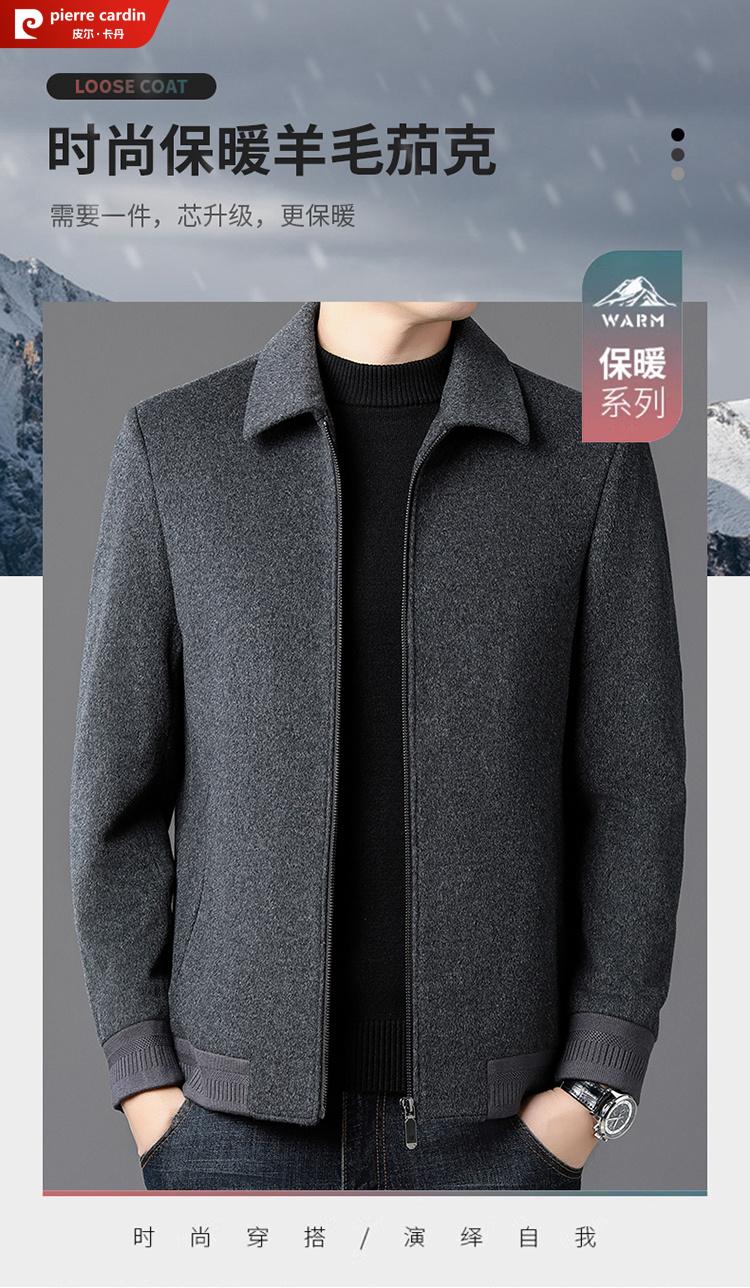 Pierre Cardin 100% pure wool jacket men's coat autumn and winter new high-end business casual daddy woolen jacket men's navy stand-up collar M 170