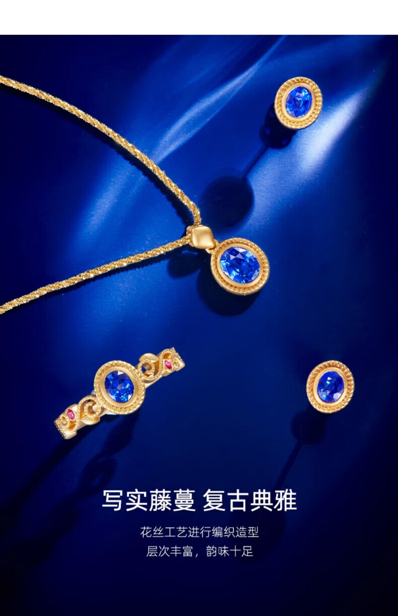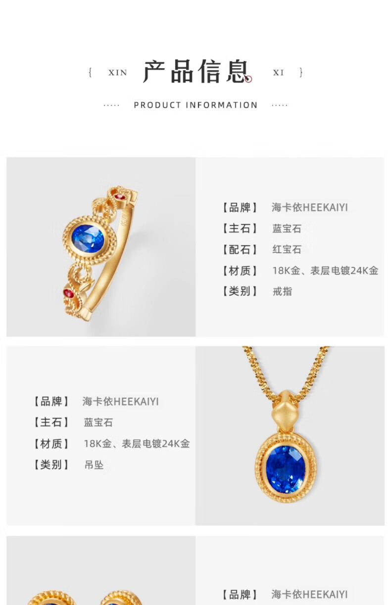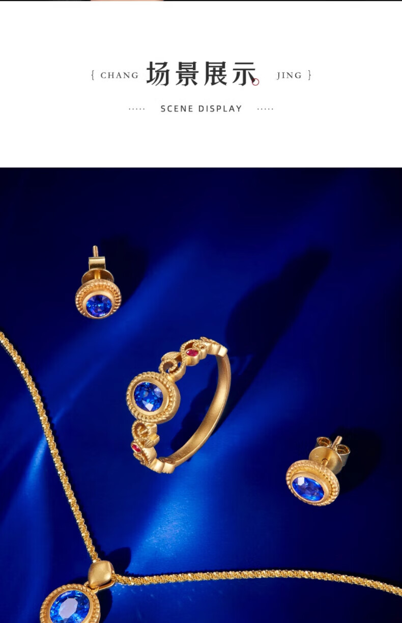 HEEKAIYI sapphire pendant ring and earrings set 18k gold jewelry Chinese Valentine's Day birthday gift for wife and girlfriend Sapphire jewelry set palace style-ring 0.7 carat/VVS clarity