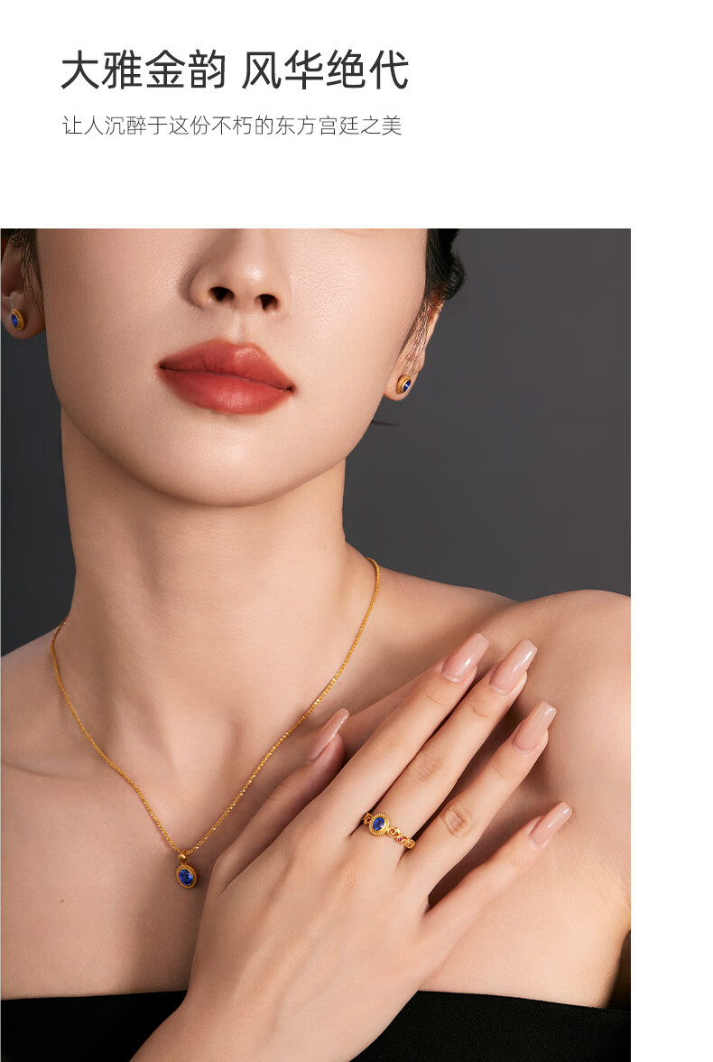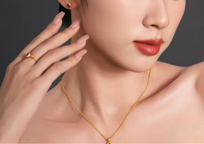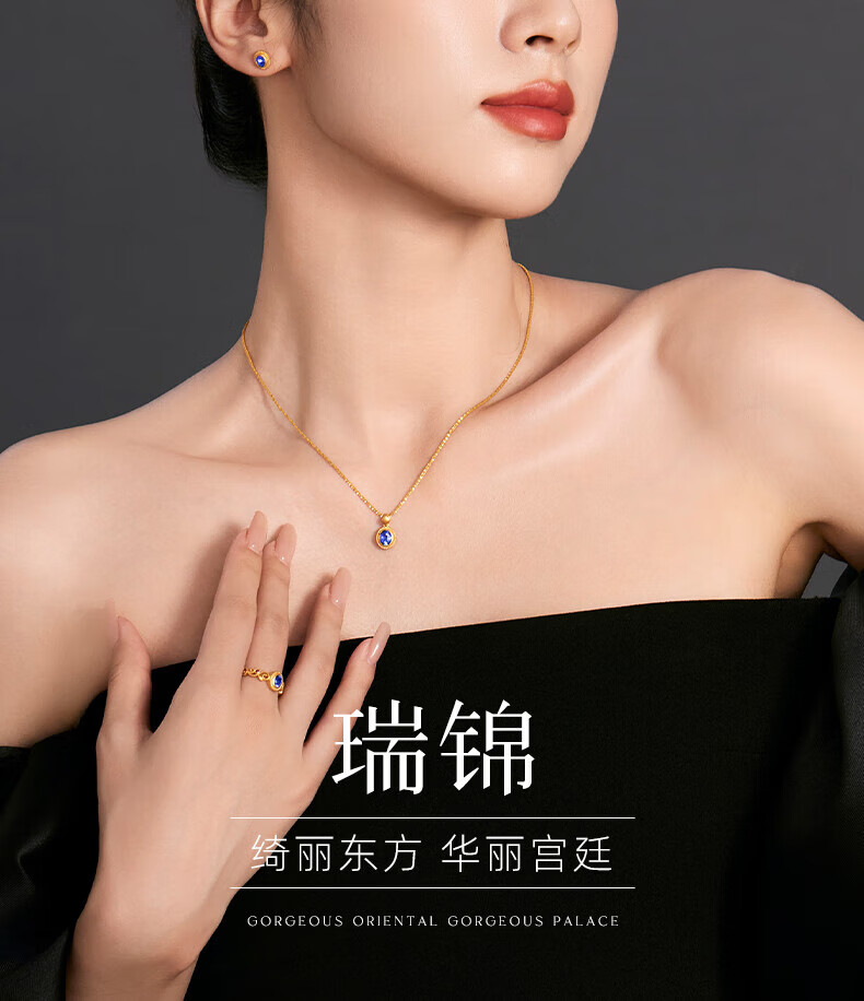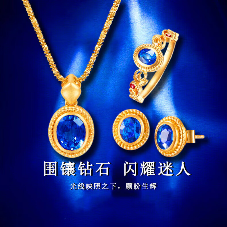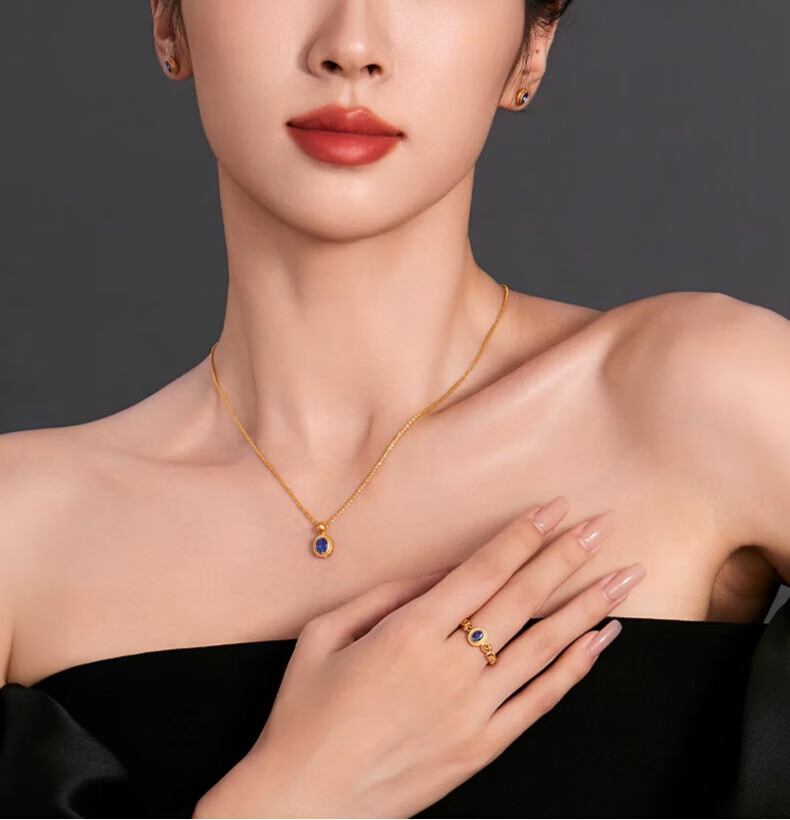 HEEKAIYI sapphire pendant ring and earrings set 18k gold jewelry Chinese Valentine's Day birthday gift for wife and girlfriend Sapphire jewelry set palace style-ring 0.7 carat/VVS clarity