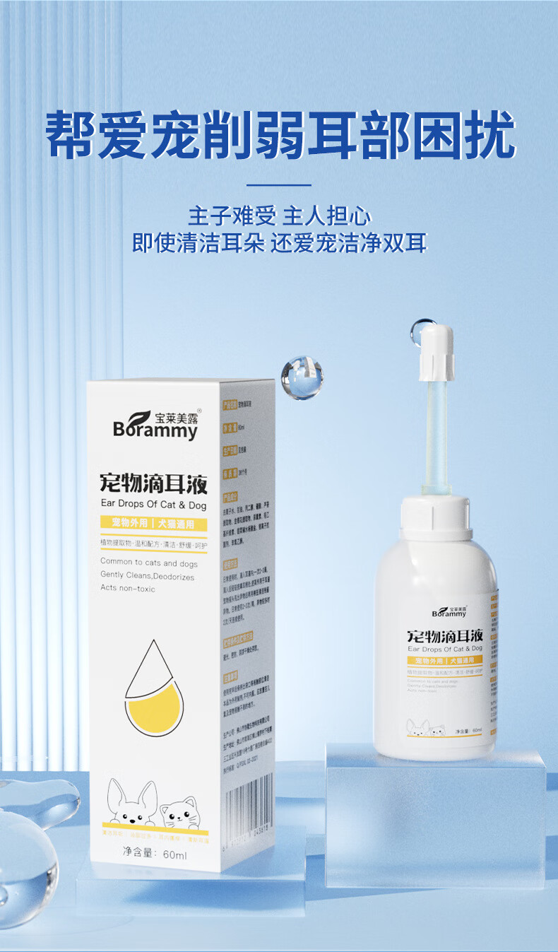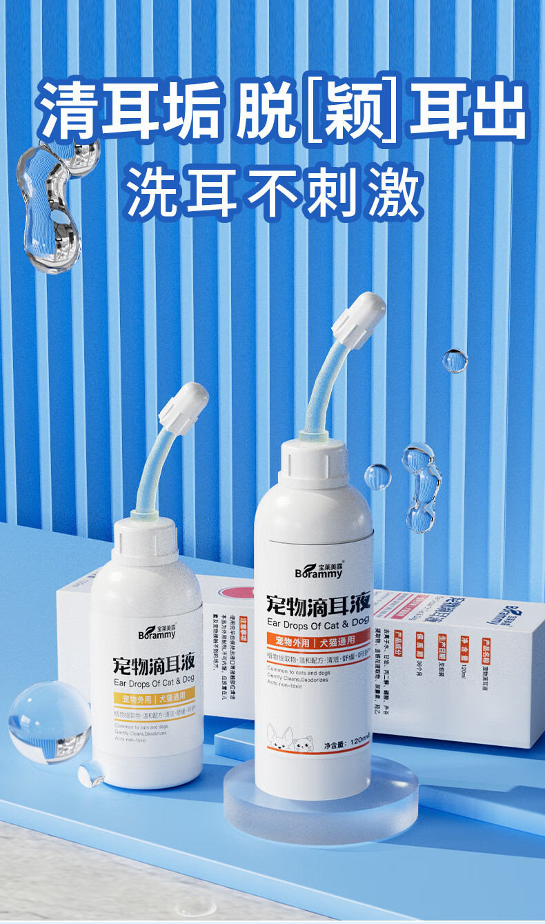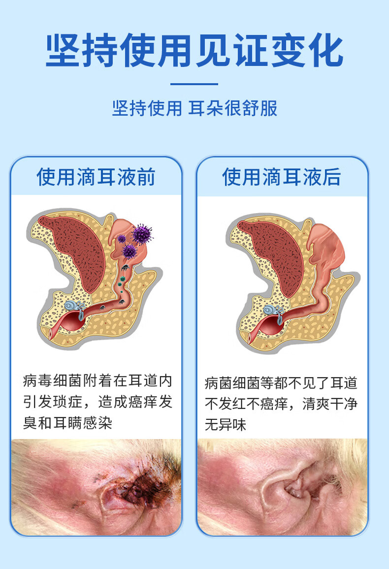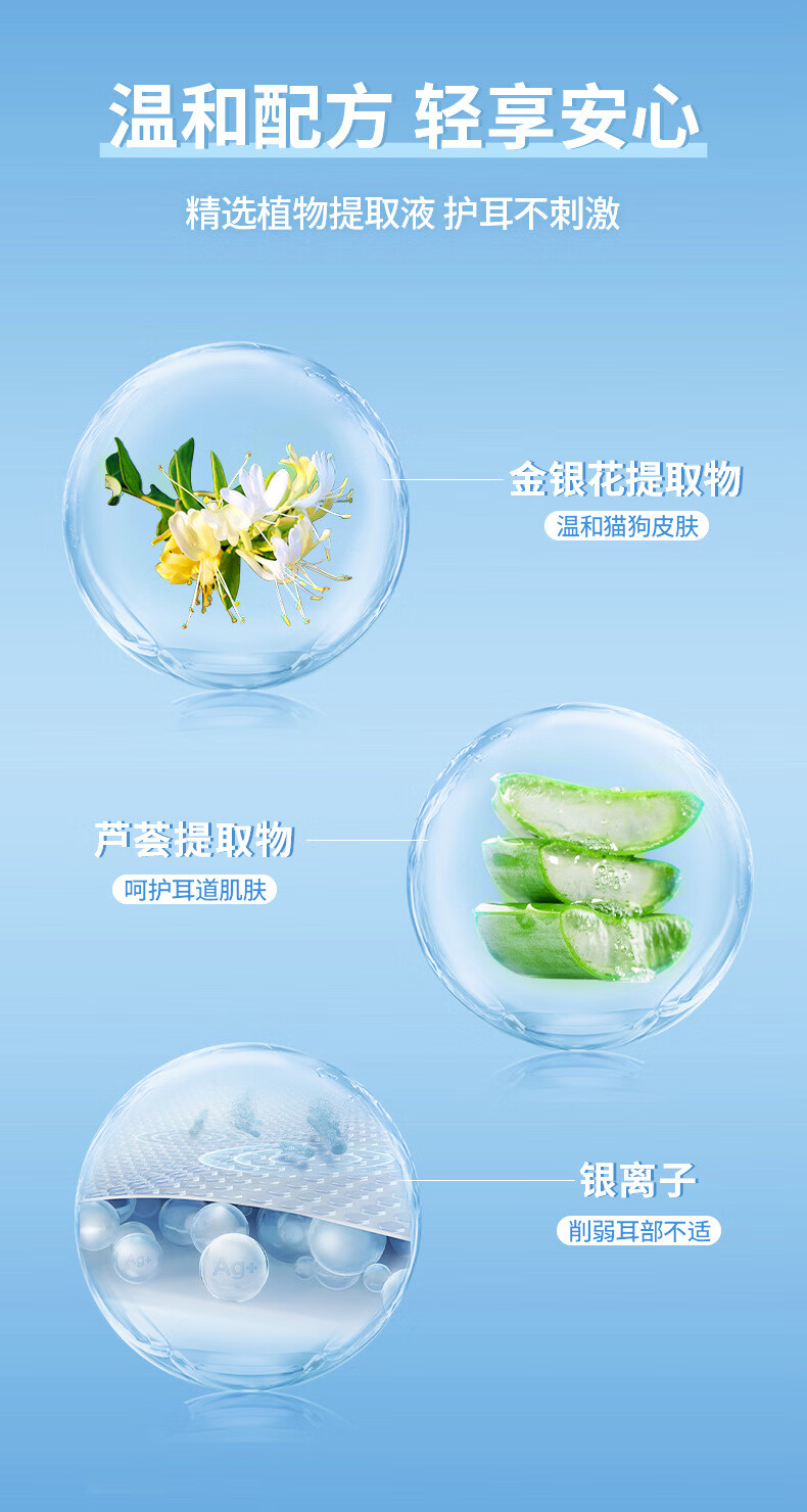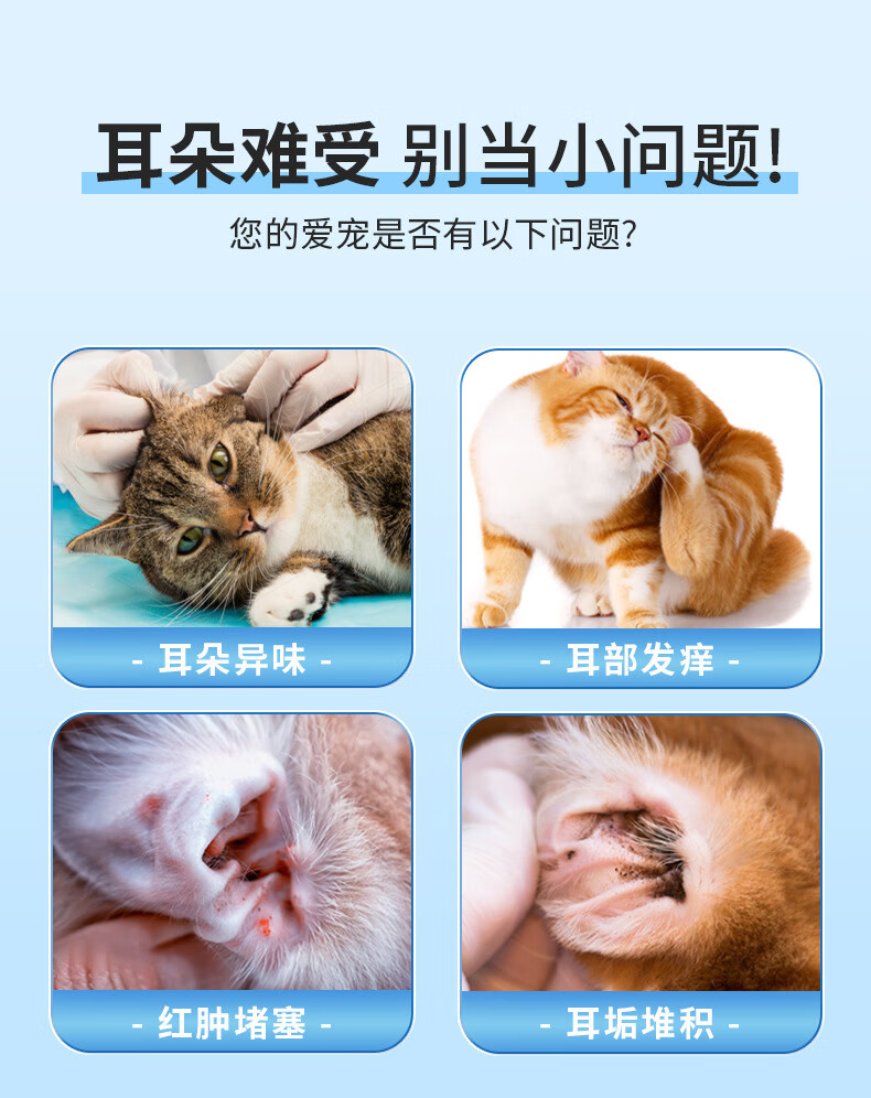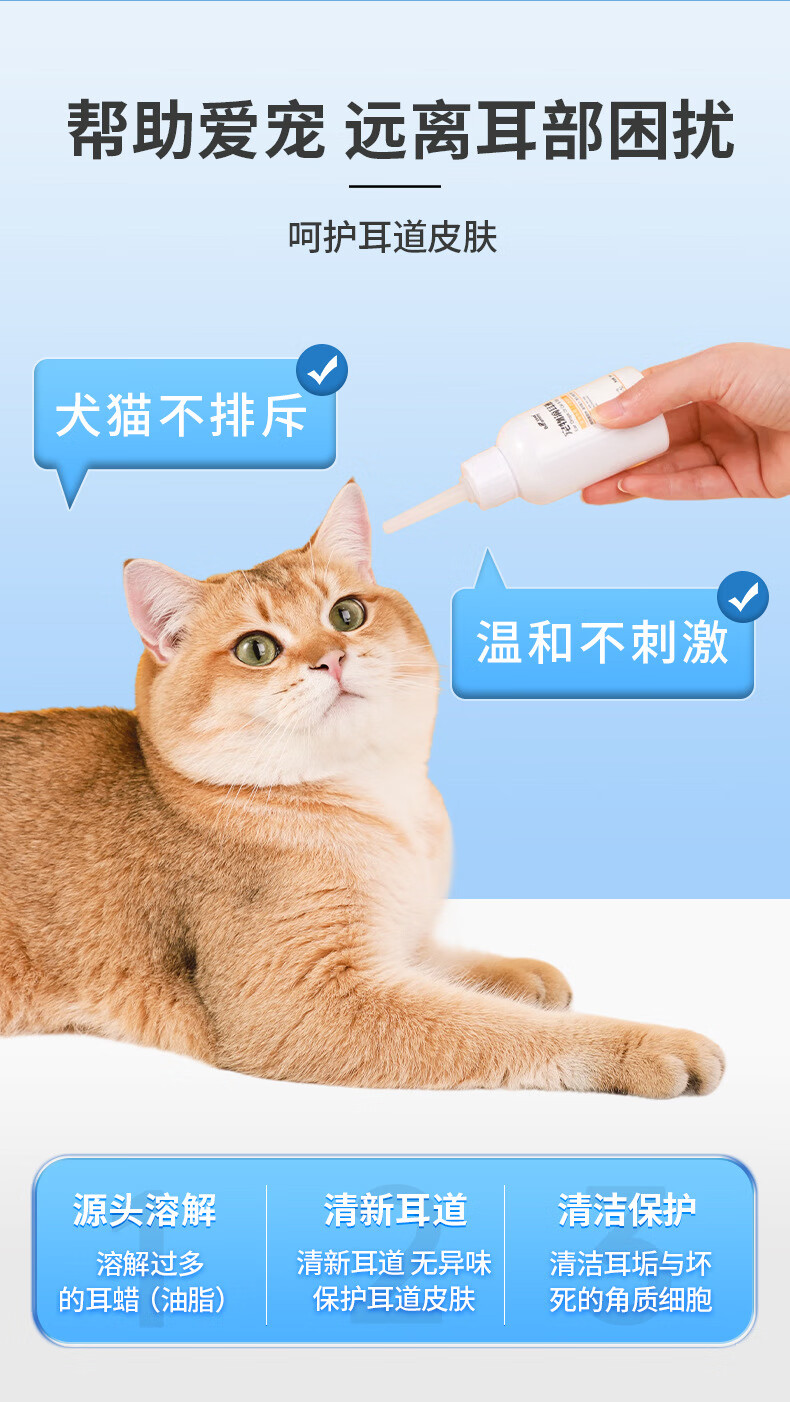 Special medicine for cat ear mites, pet ear skin ear anti-inflammatory ear drops, cleaning, removing mites, relieving itching, antibacterial cleaning solution, 1 bottle of 60ml, free cotton swab
